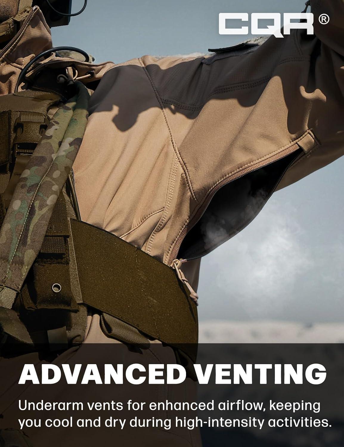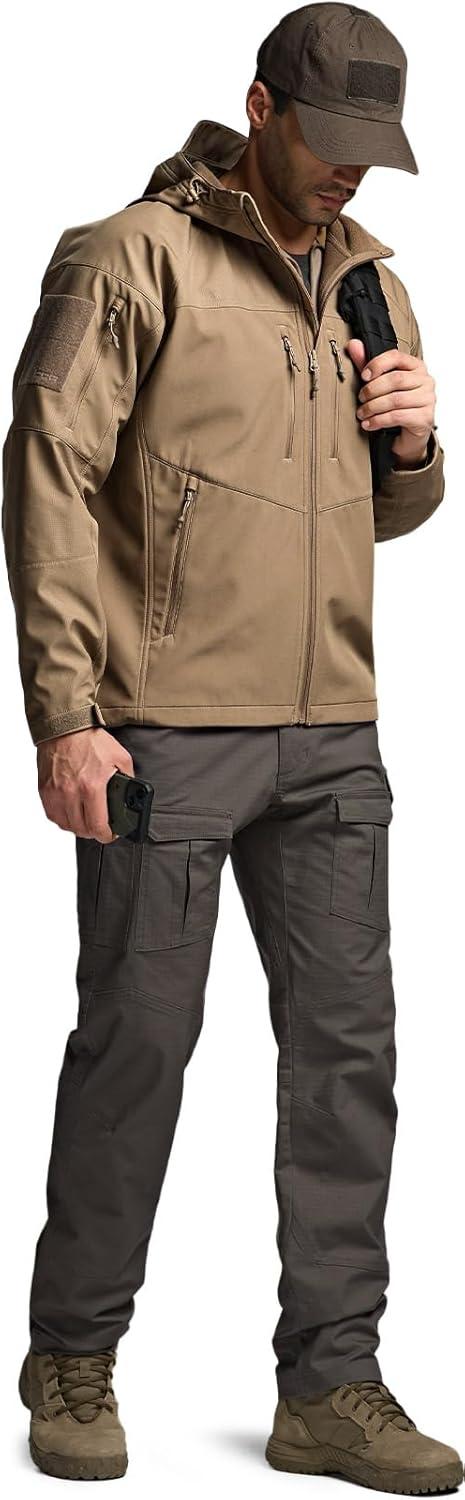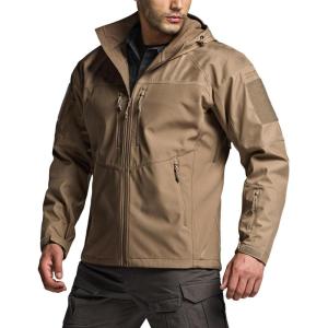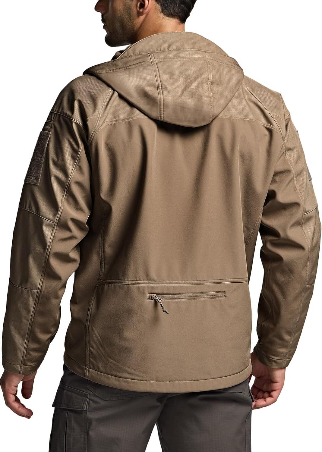 CQR Men’s Hooded Tactical Softshell Jacket, Water Resistant Fleece Lined Hoodie, Winter Outdoor Hunting Hiking Rain Wind(Modern Coyote)