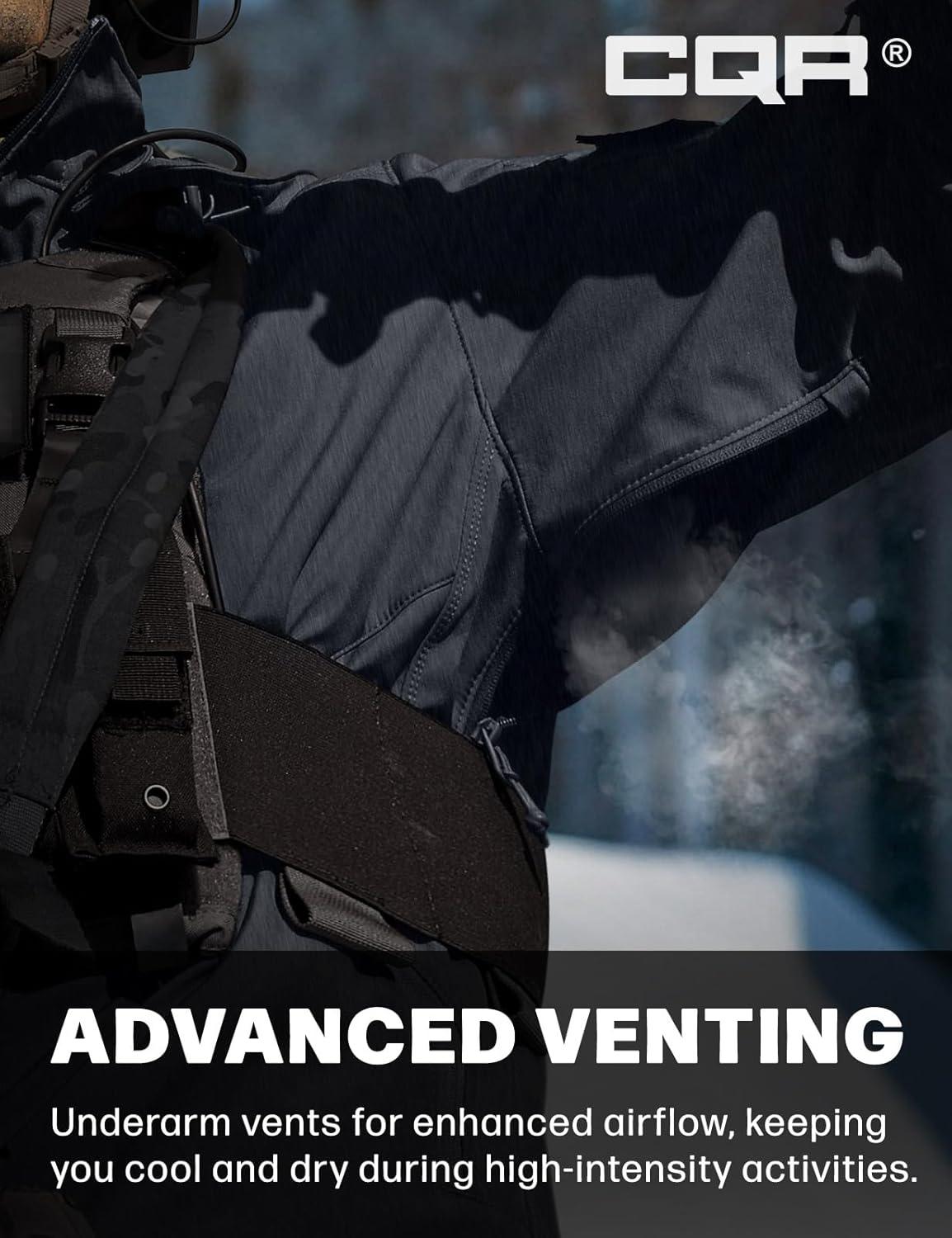CQR Men’s Hooded Tactical Softshell Jacket, Water Resistant Fleece Lined Hoodie, Winter Outdoor Hunting Hiking Rain Wind(Stealth Black)