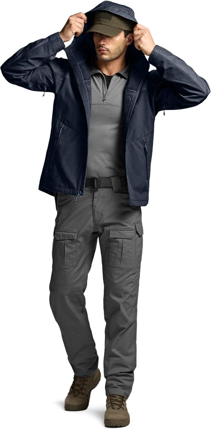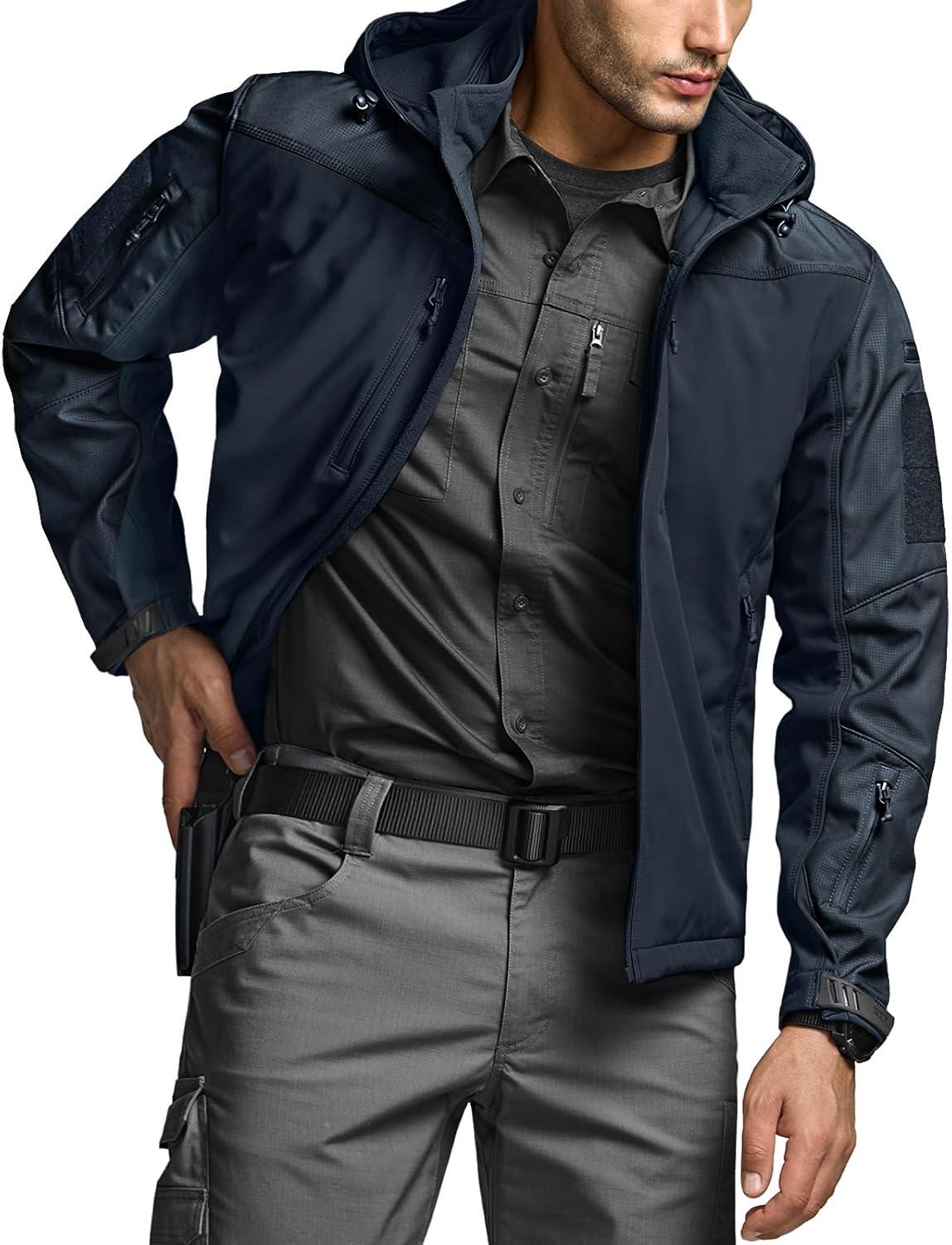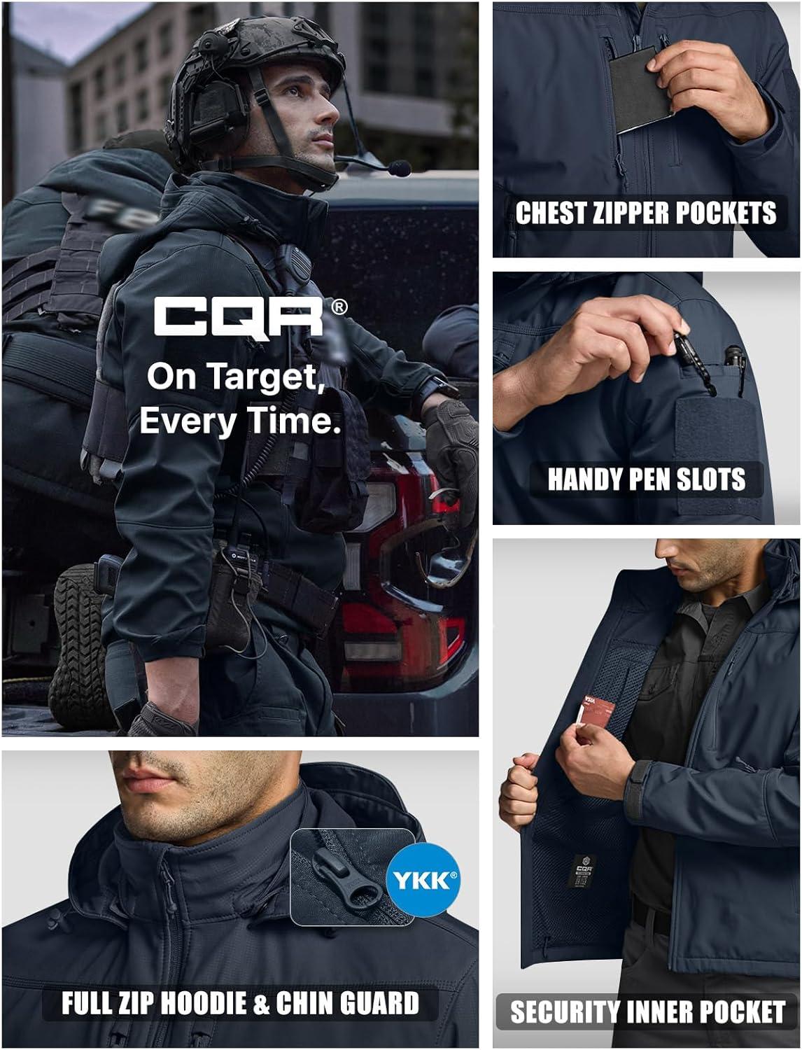 CQR Men’s Hooded Tactical Softshell Jacket, Water Resistant Fleece Lined Hoodie, Winter Outdoor Hunting Hiking Rain Wind(Operator X Pro Operator Navy)
