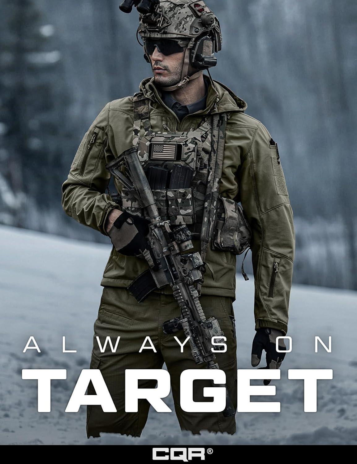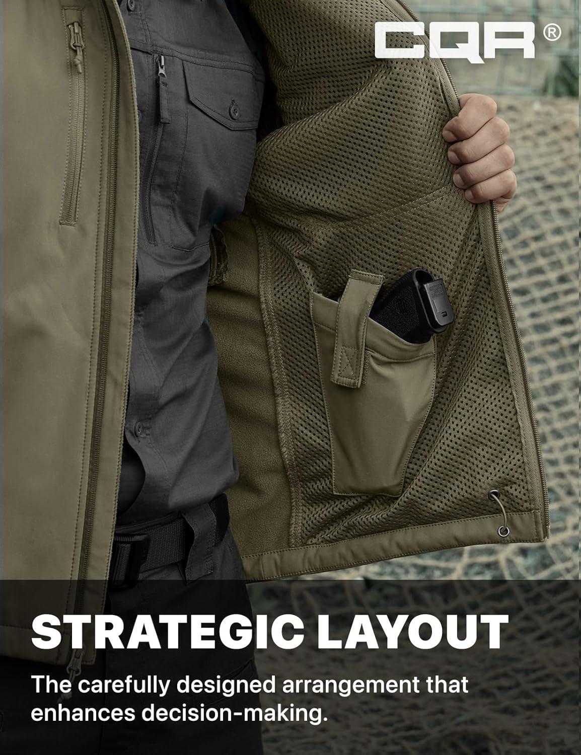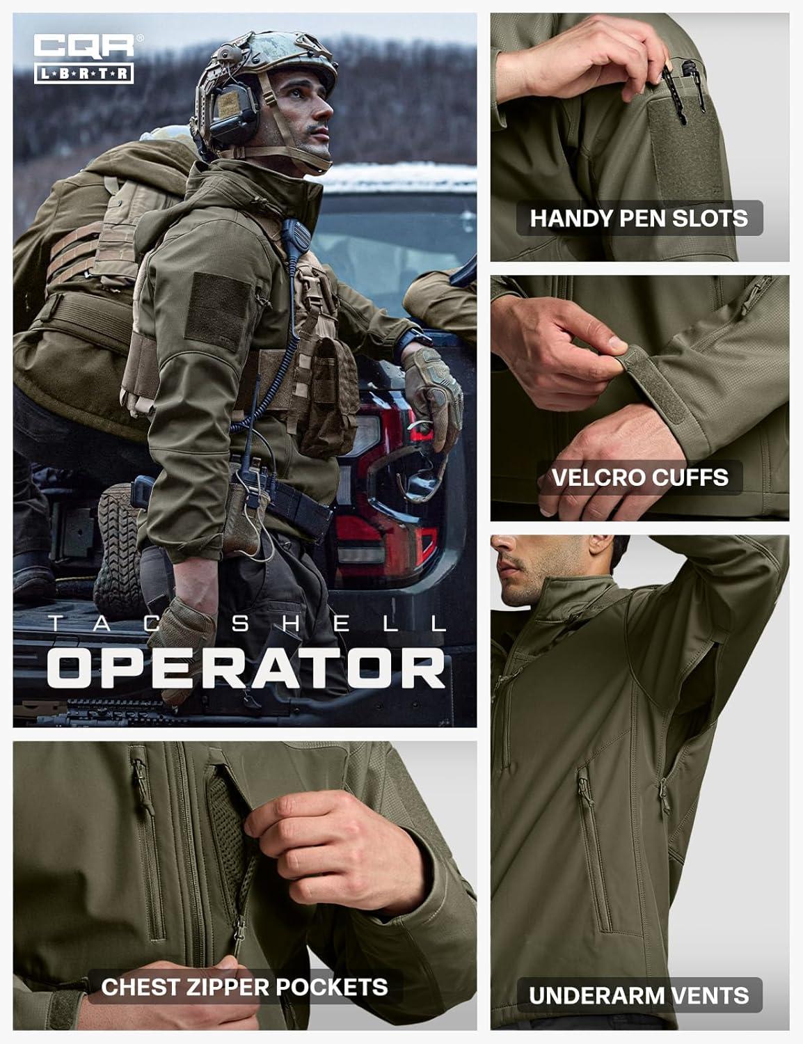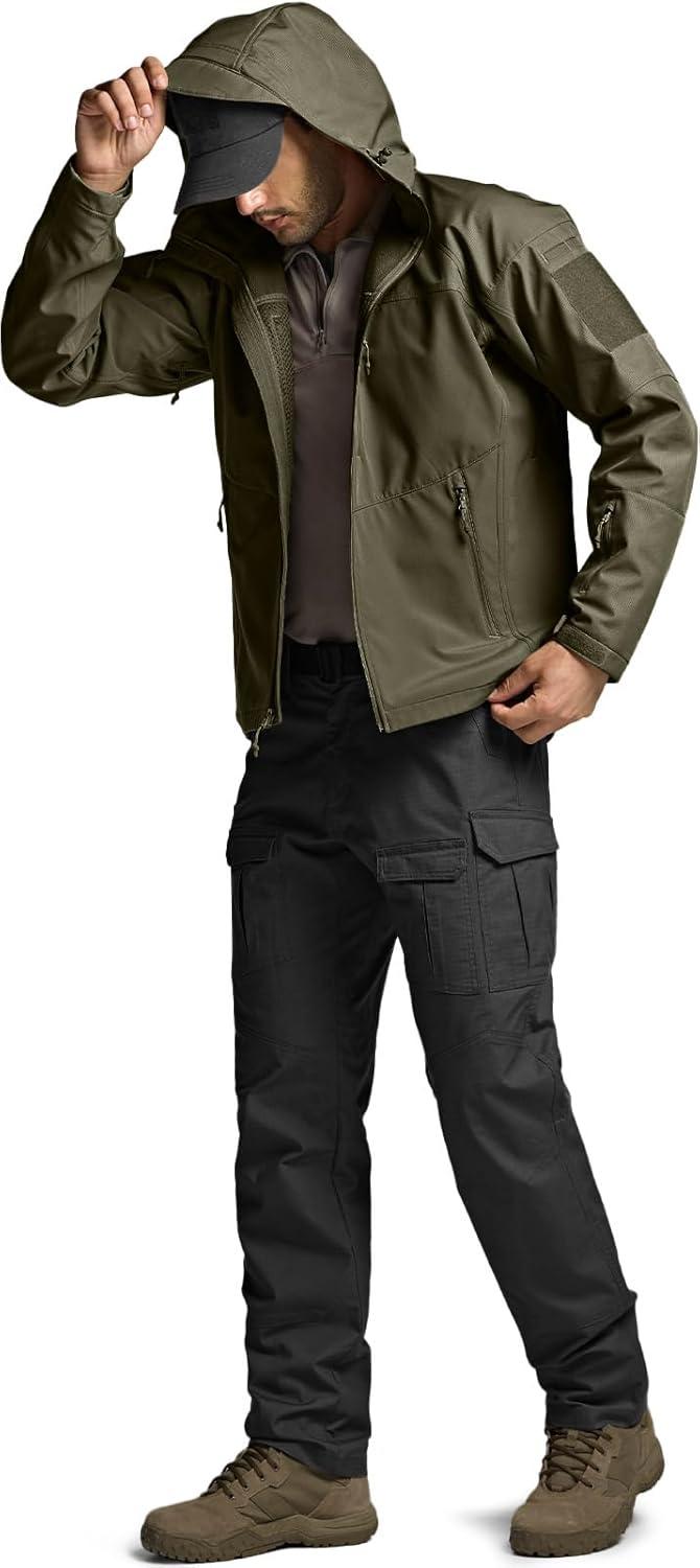 CQR Men’s Hooded Tactical Softshell Jacket, Water Resistant Fleece Lined Hoodie, Winter Outdoor Hunting Hiking Rain Wind(Operator X Pro Soil Green)