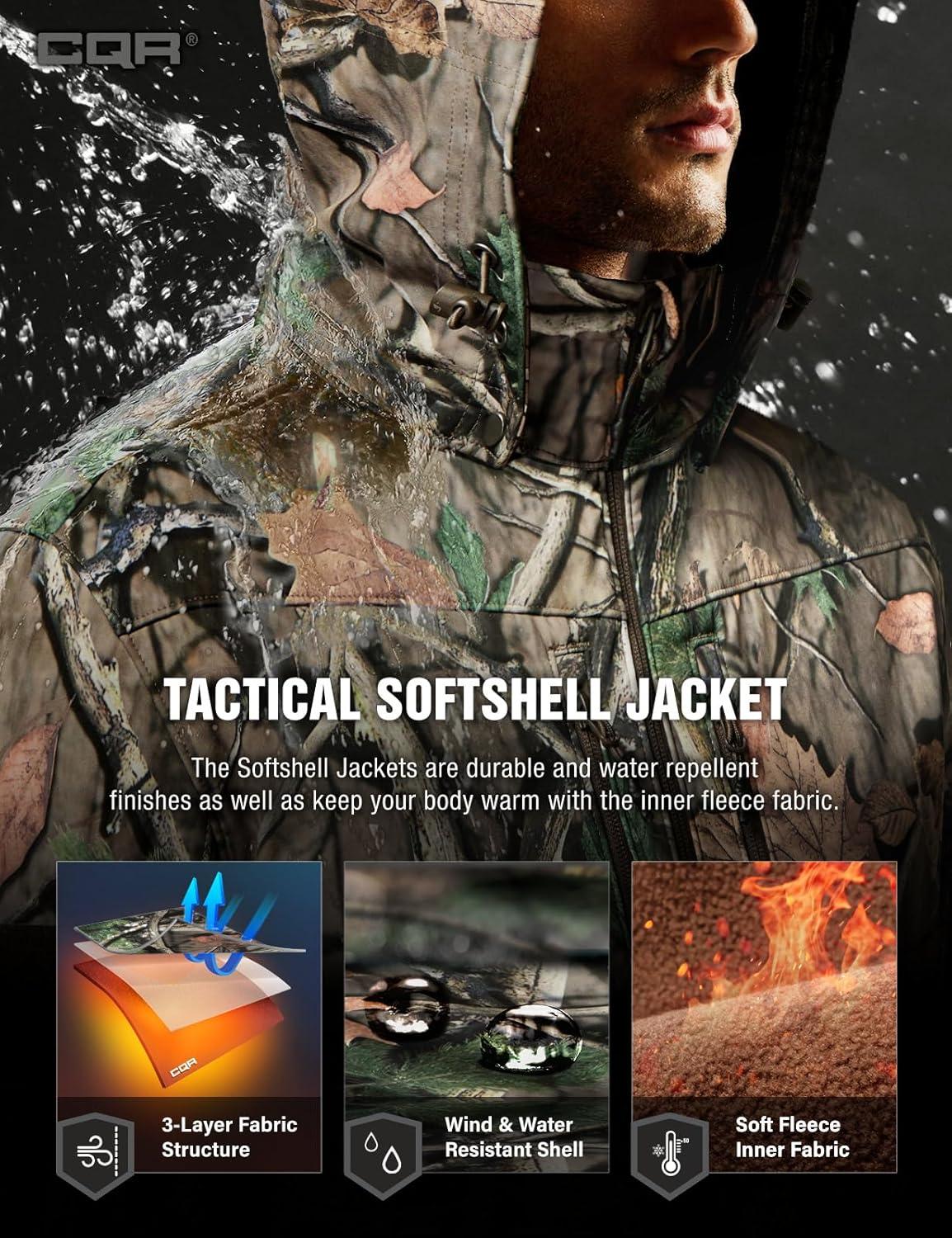 CQR Men’s Hooded Tactical Softshell Jacket, Water Resistant Fleece Lined Hoodie, Winter Outdoor Hunting Hiking Rain Wind(Operator Print Jacket Hunting Camo)