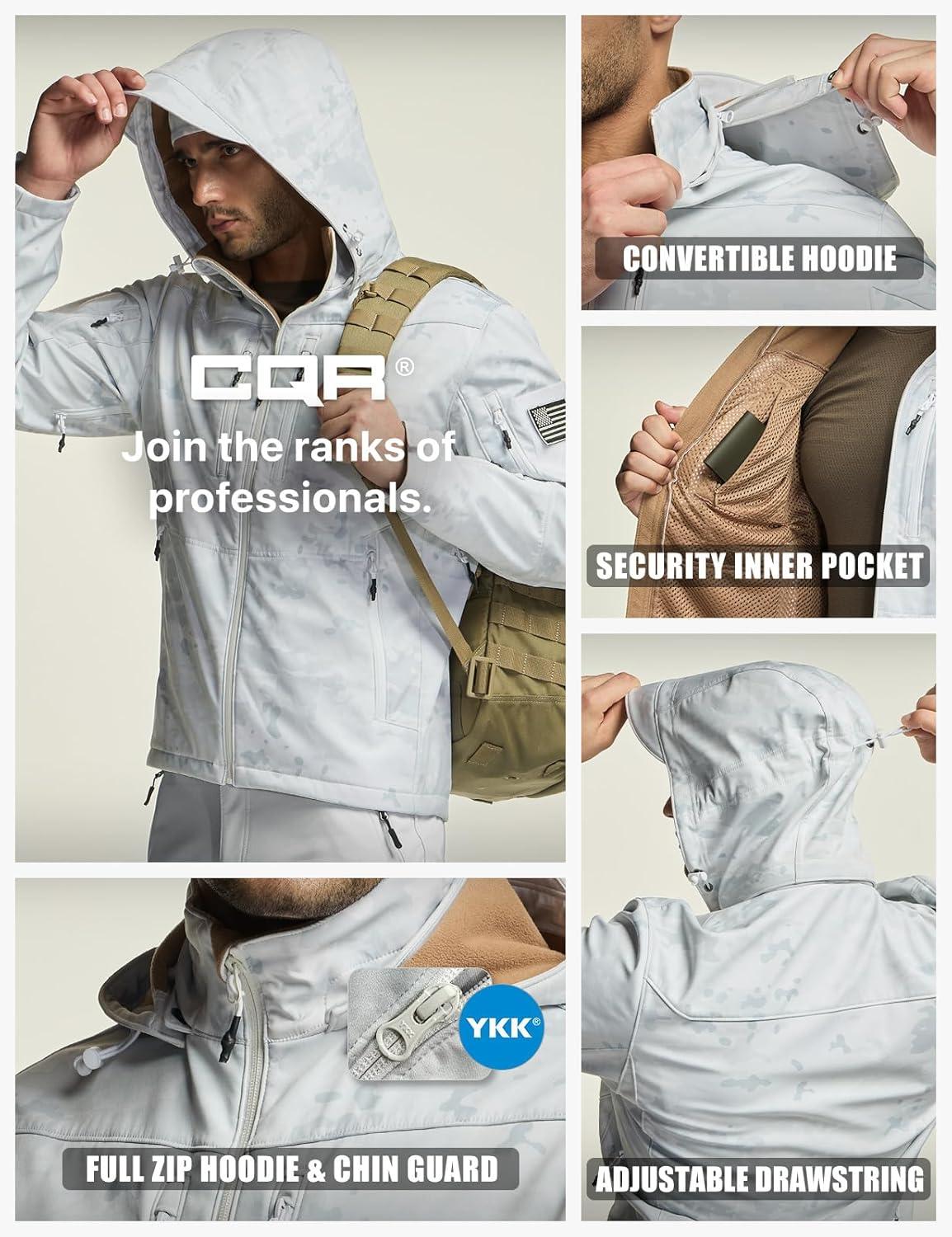CQR Men’s Hooded Tactical Softshell Jacket, Water Resistant Fleece Lined Hoodie, Winter Outdoor Hunting Hiking Rain Wind(Operator Print Jacket Winter Hunting Camo)