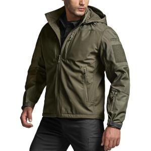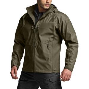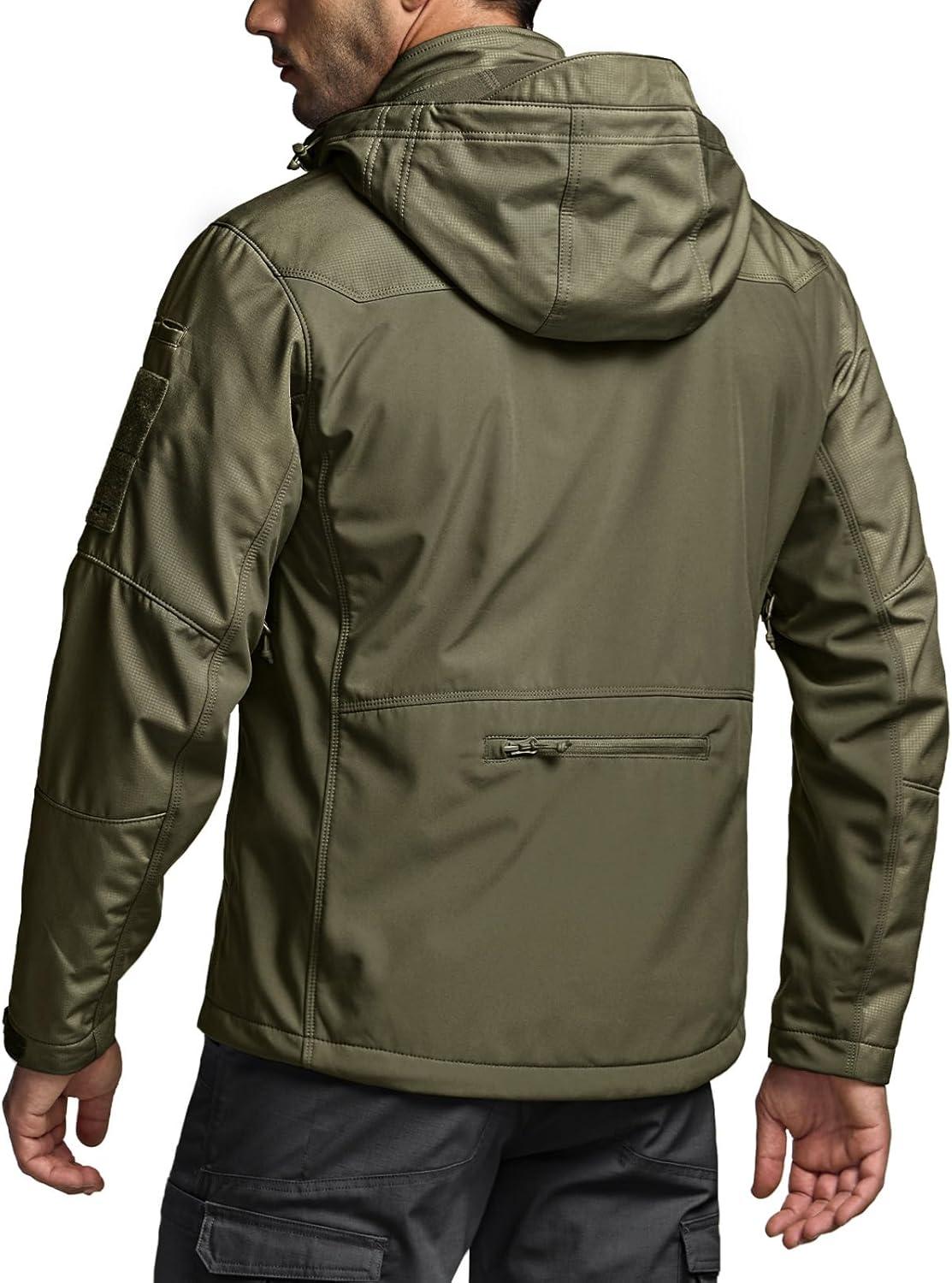 CQR Men’s Hooded Tactical Softshell Jacket, Water Resistant Fleece Lined Hoodie, Winter Outdoor Hunting Hiking Rain Wind(Modern Soil Green)