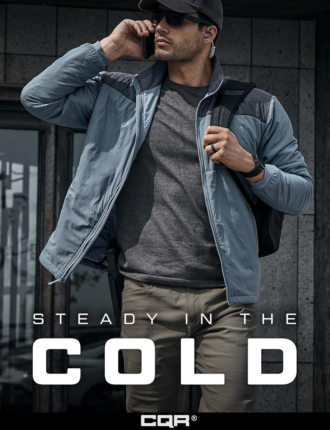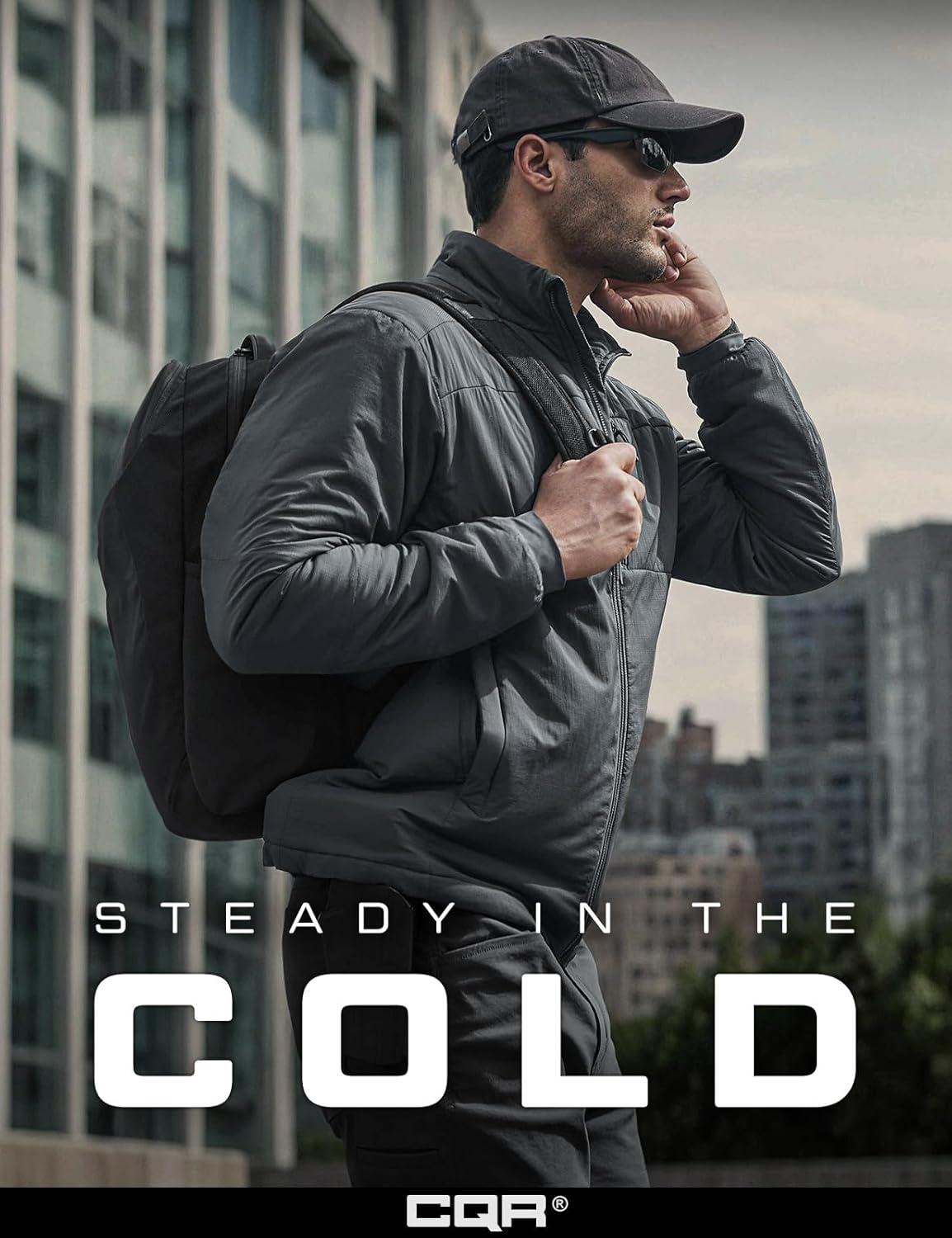 CQR Men’s Lightweight Insulated Jacket, Windproof Packable Water Resistant Warm Active Coat for Hiking Work Outdoor Tactical(Frame Black)