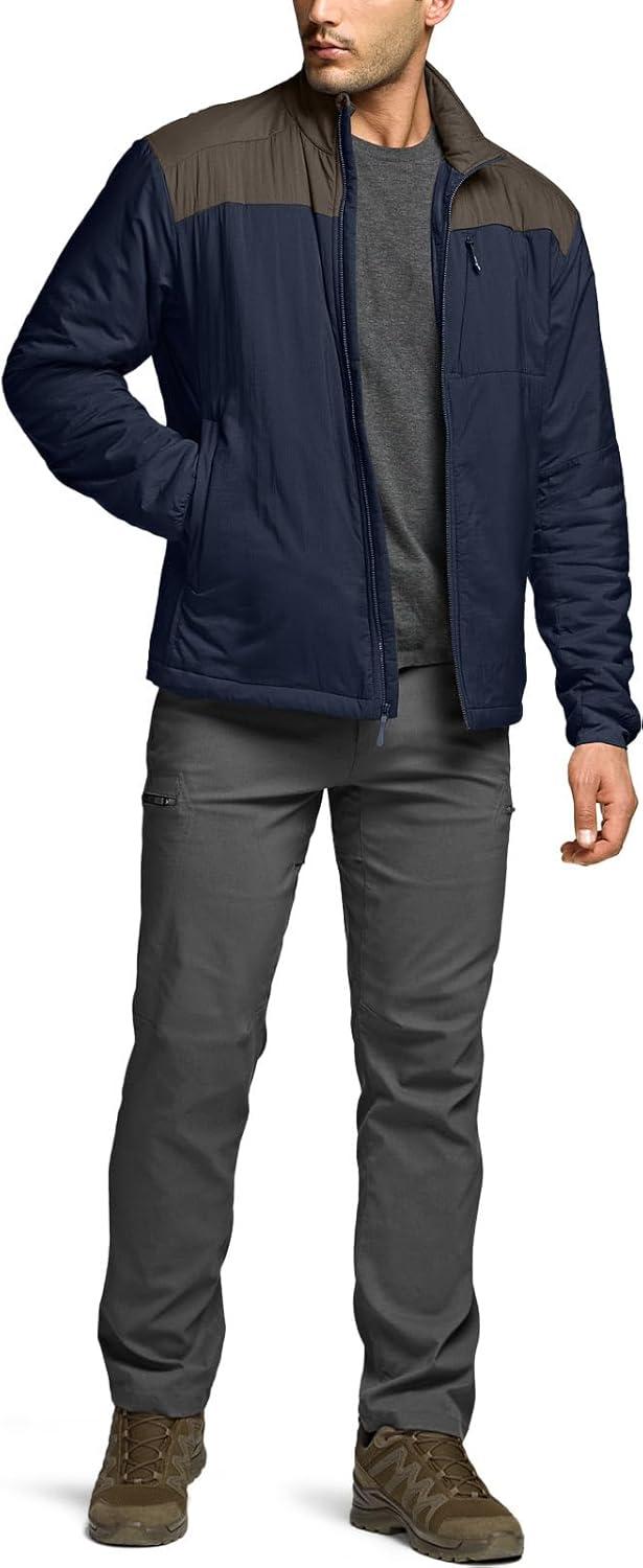 CQR Men’s Lightweight Insulated Jacket, Windproof Packable Water Resistant Warm Active Coat for Hiking Work Outdoor Tactical(Frame Tundra & Navy)