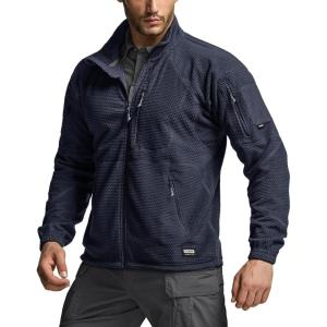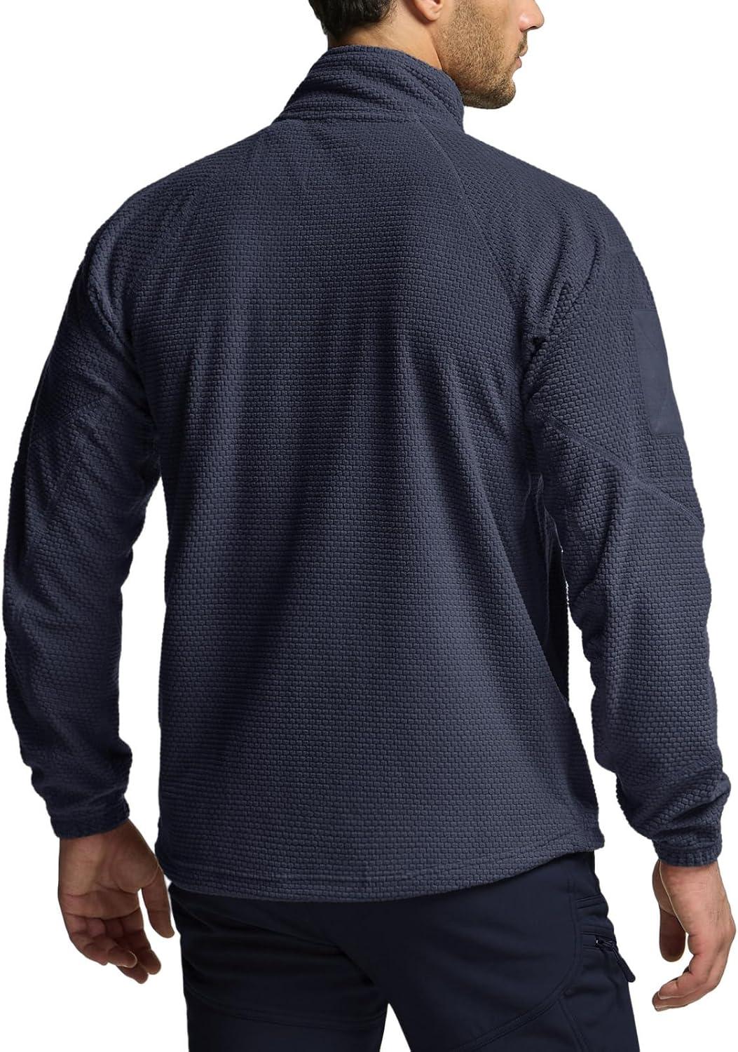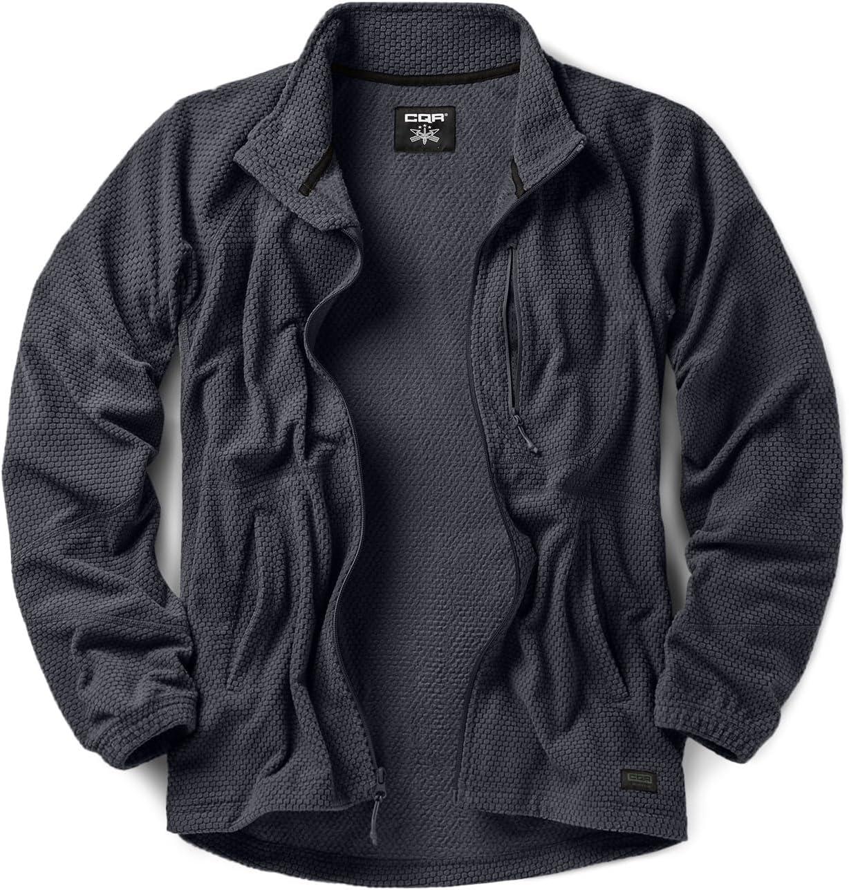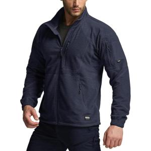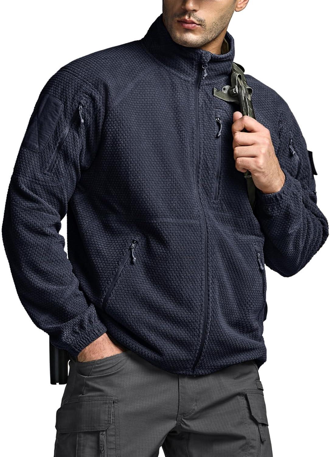 CQR Men’s Full-Zip Tactical Jacket, Soft Warm Military Winter Fleece Jackets, Outdoor Coats with Zipper Pockets(Grid Fleece Operator Navy)