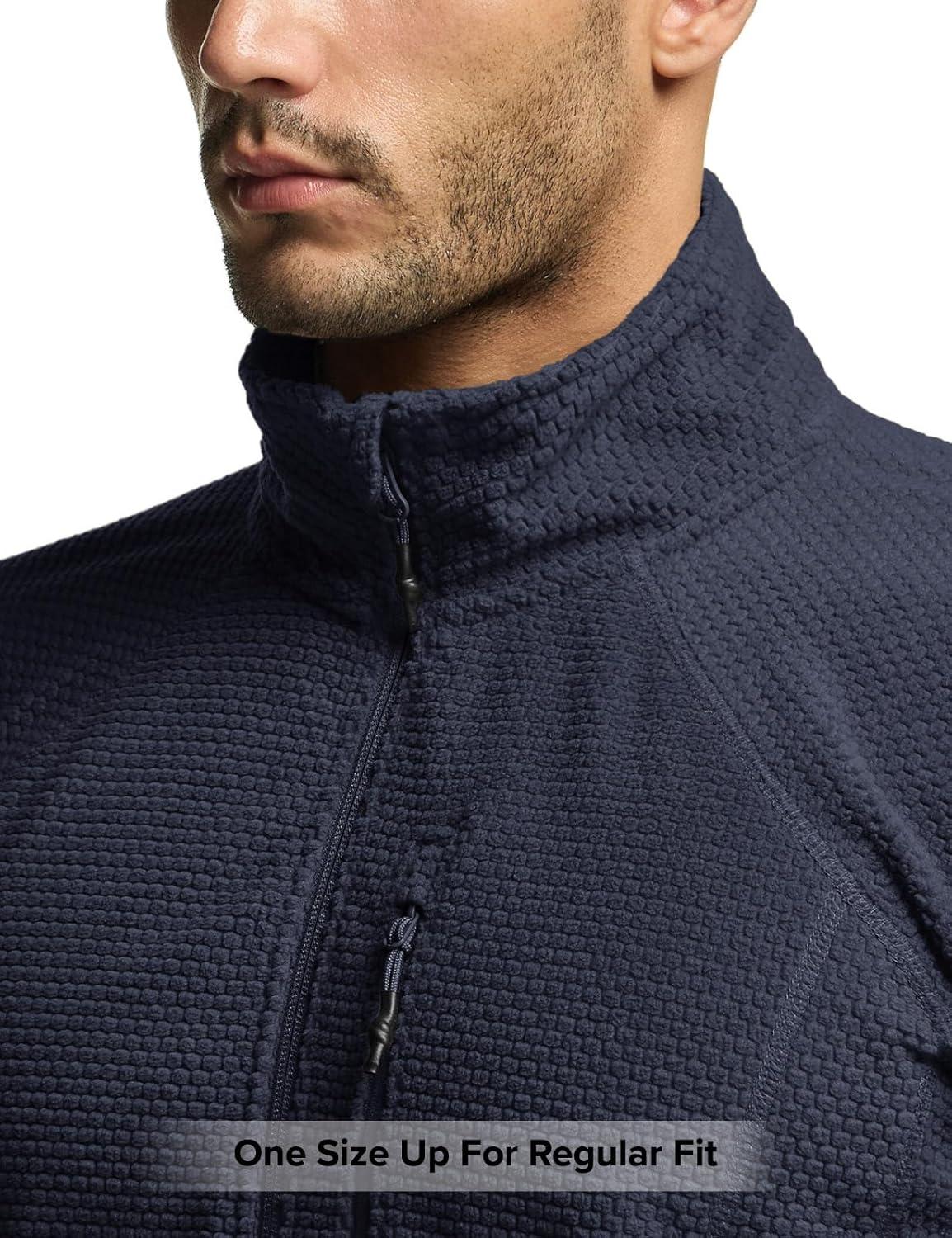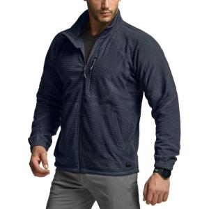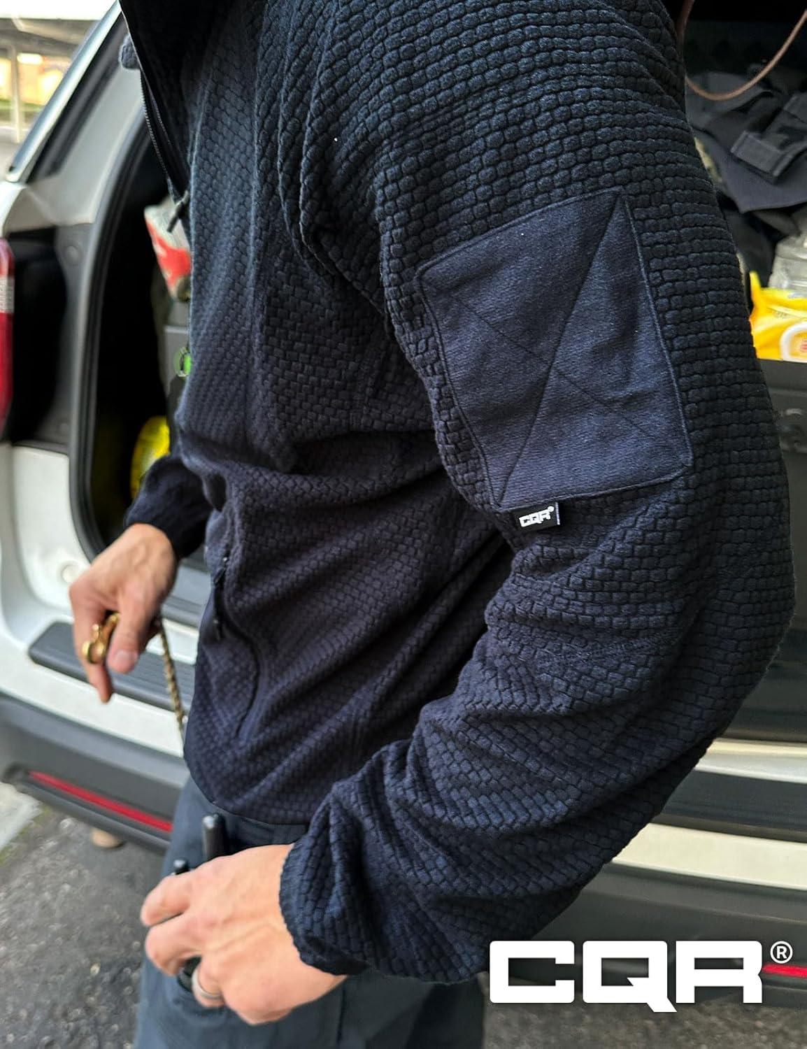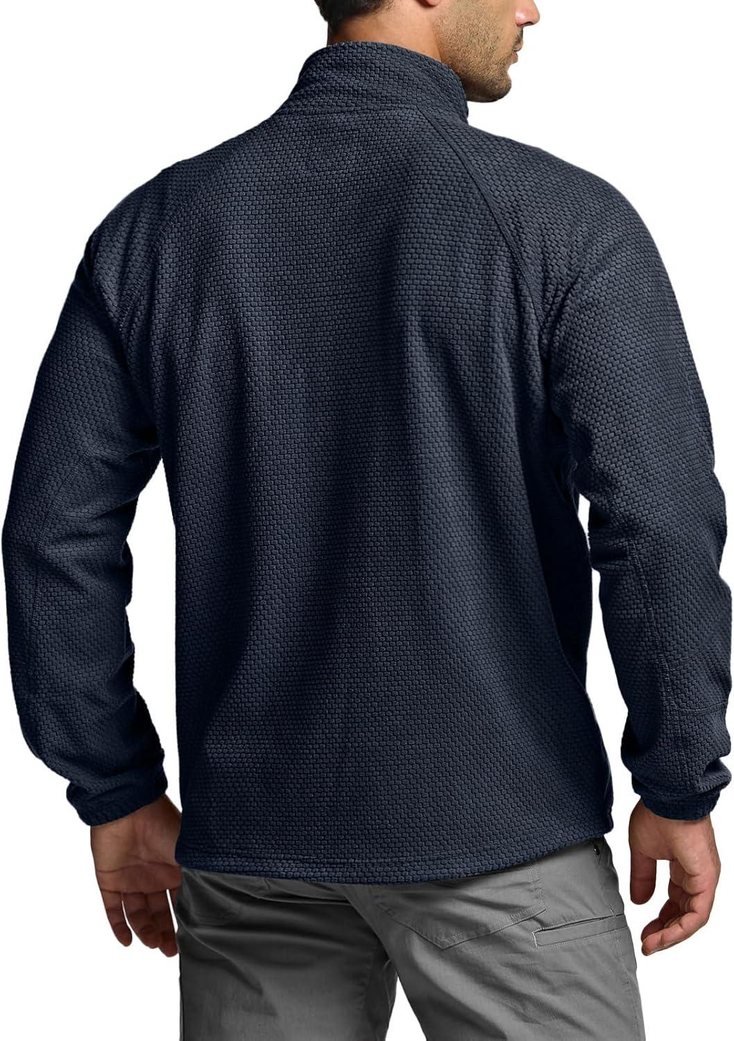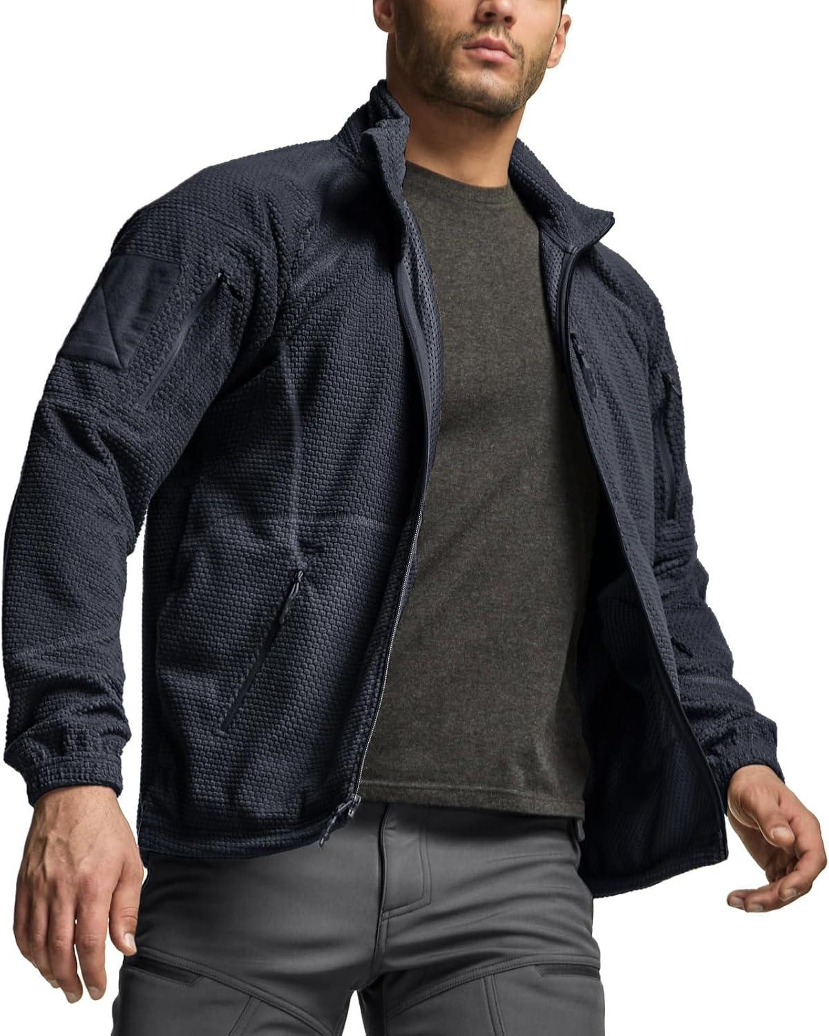 CQR Men’s Full-Zip Tactical Jacket, Soft Warm Military Winter Fleece Jackets, Outdoor Coats with Zipper Pockets(Grid Fleece Operator Navy)