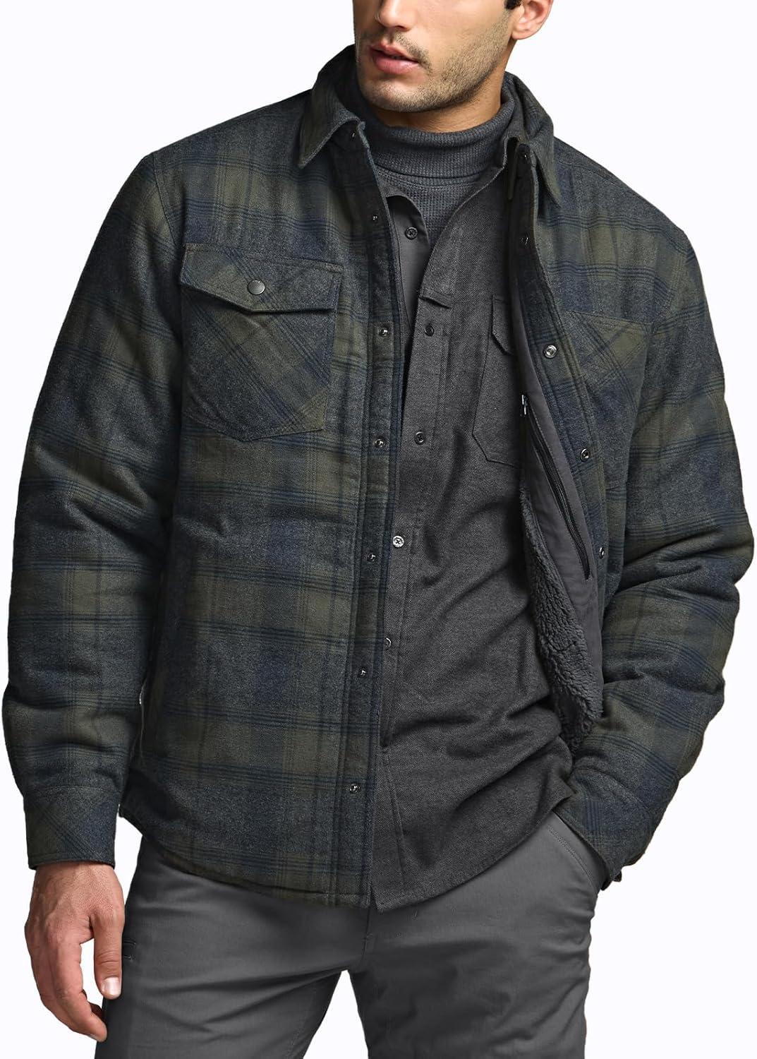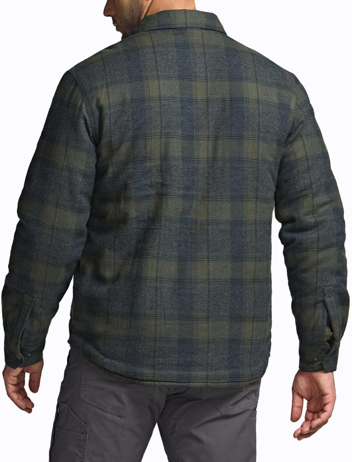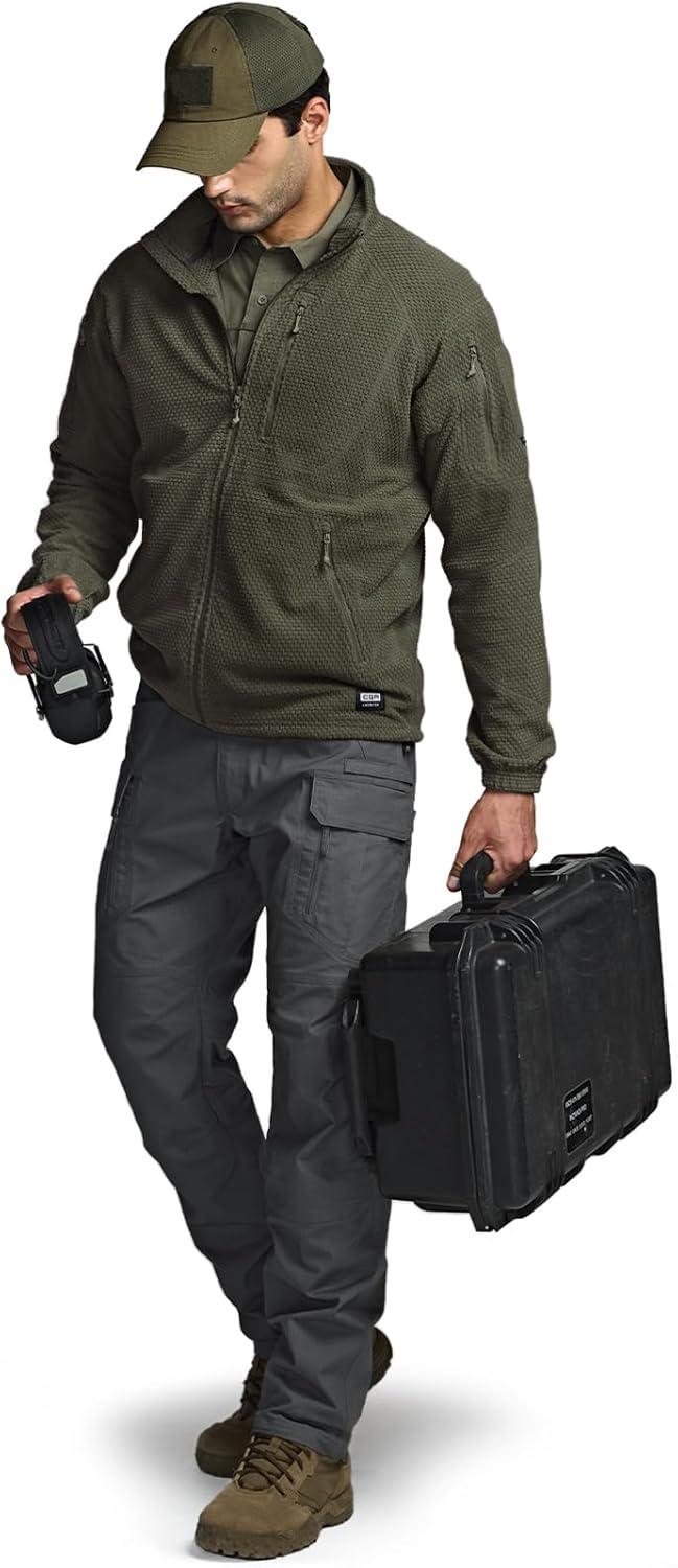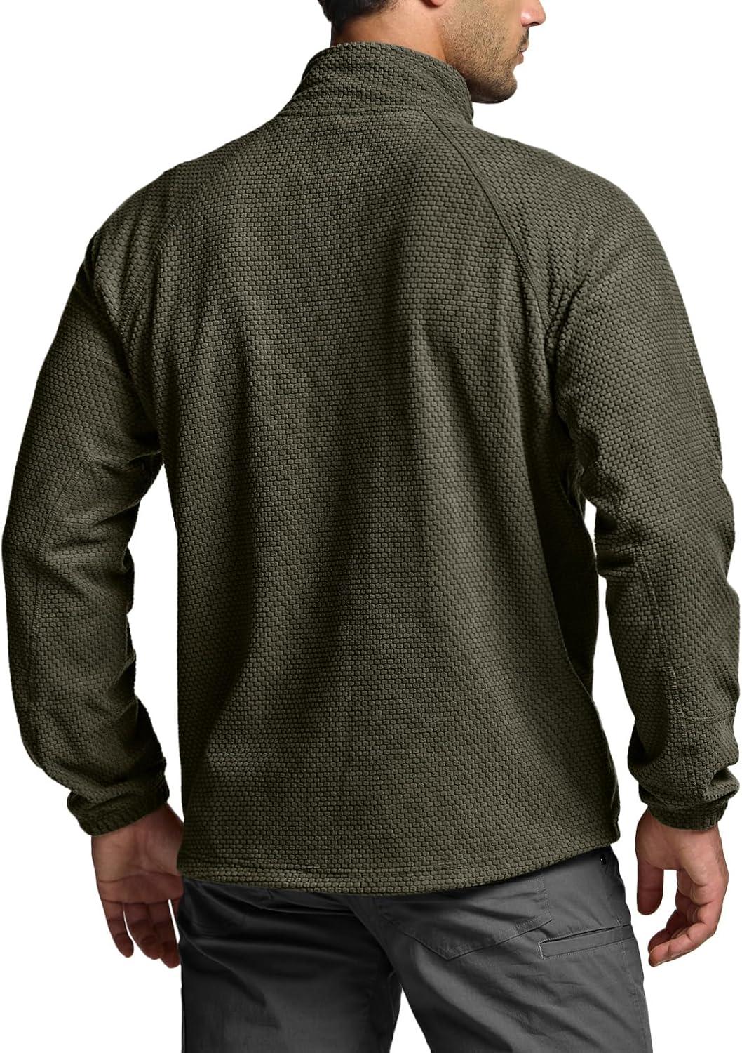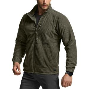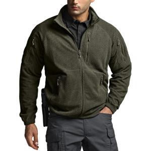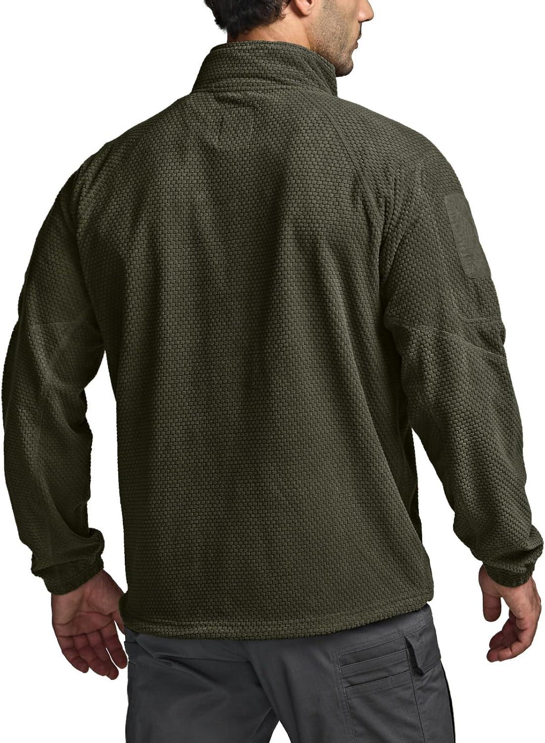 CQR Men’s Full-Zip Tactical Jacket, Soft Warm Military Winter Fleece Jackets, Outdoor Coats with Zipper Pockets(Grid Flex Army Green)