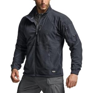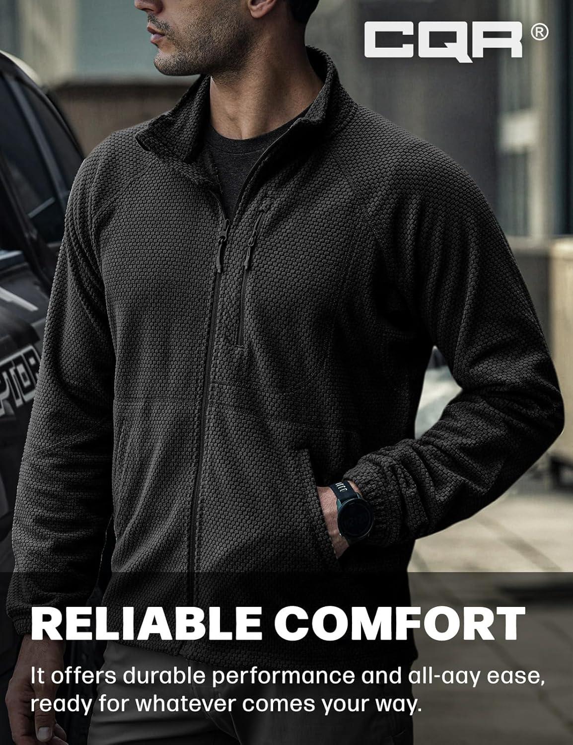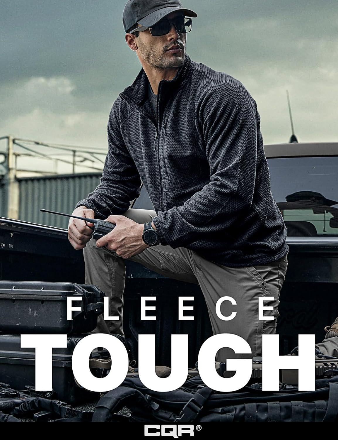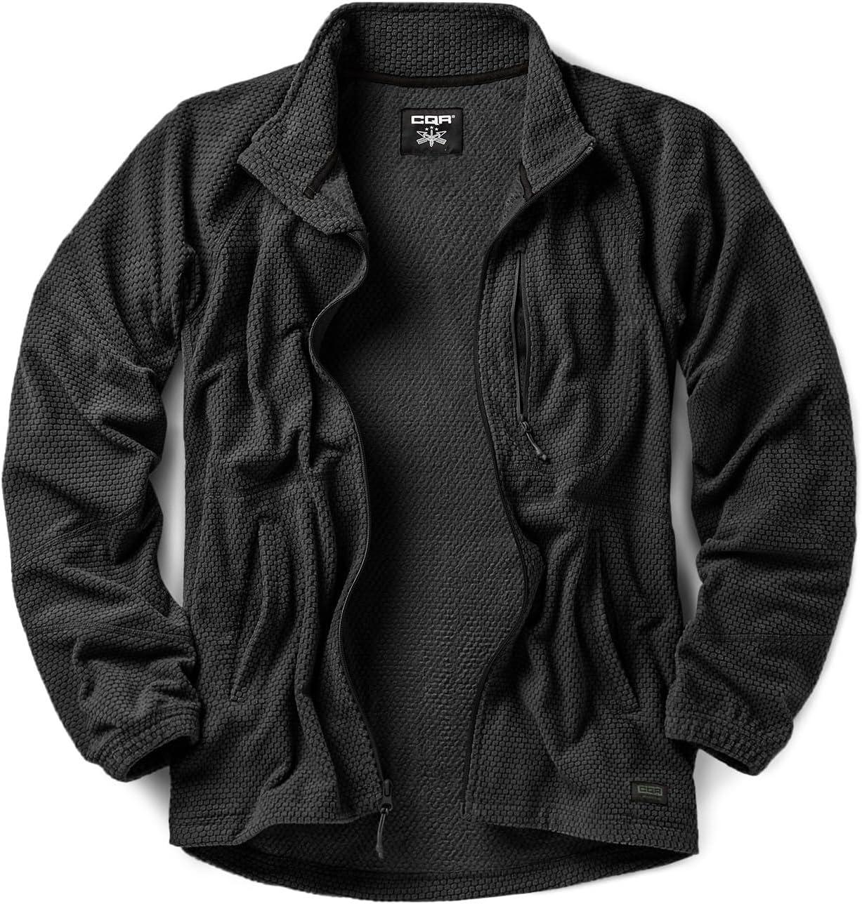 CQR Men’s Full-Zip Tactical Jacket, Soft Warm Military Winter Fleece Jackets, Outdoor Coats with Zipper Pockets(Grid Flex Black)