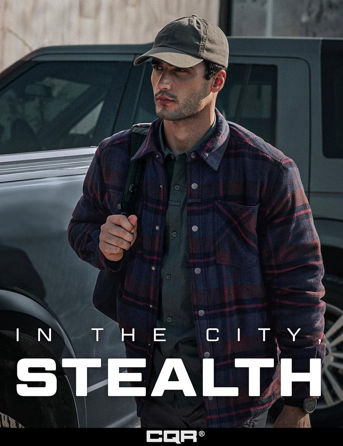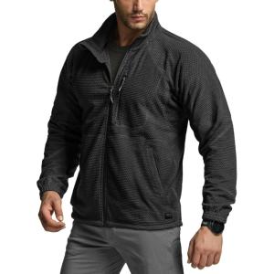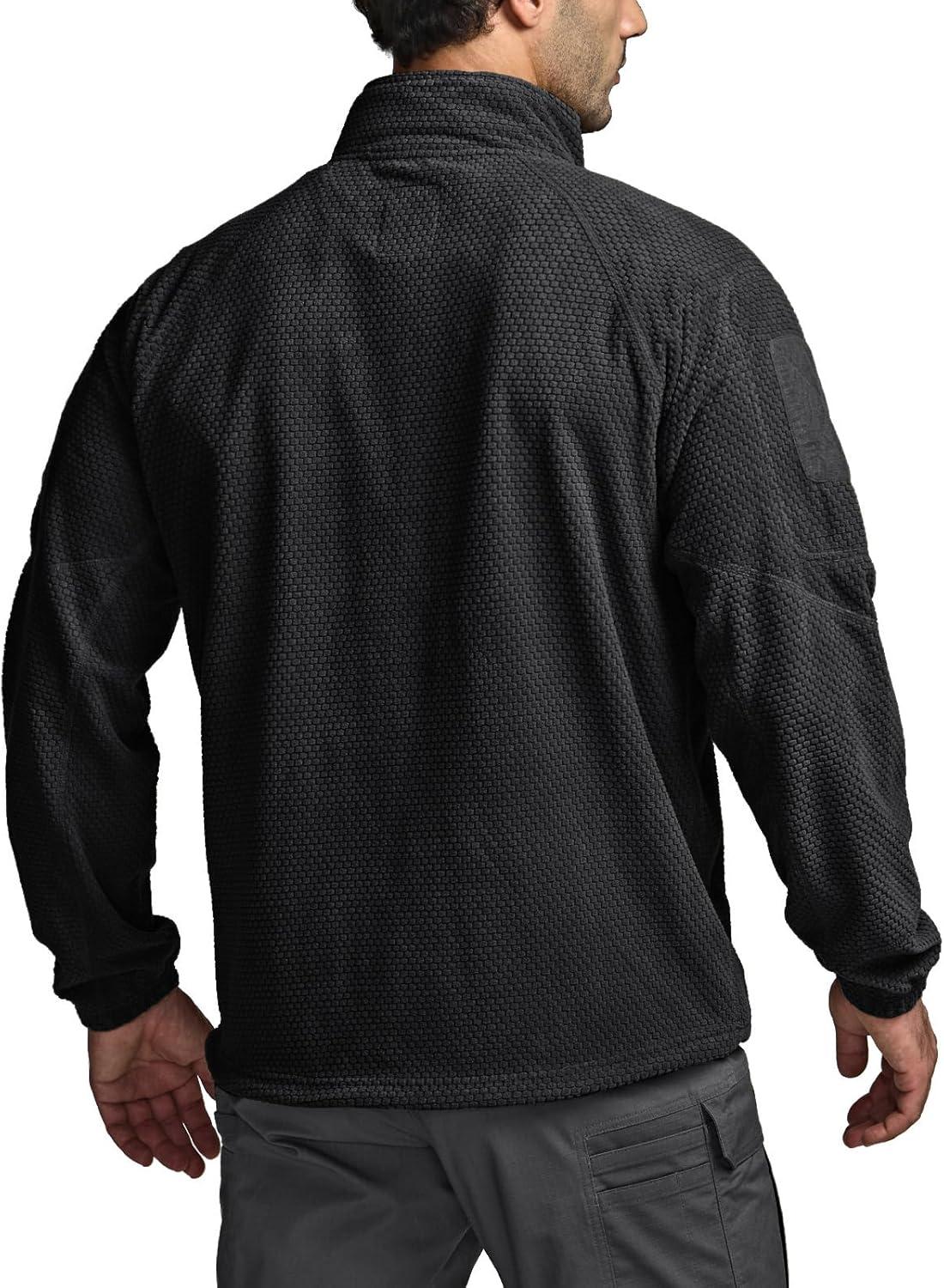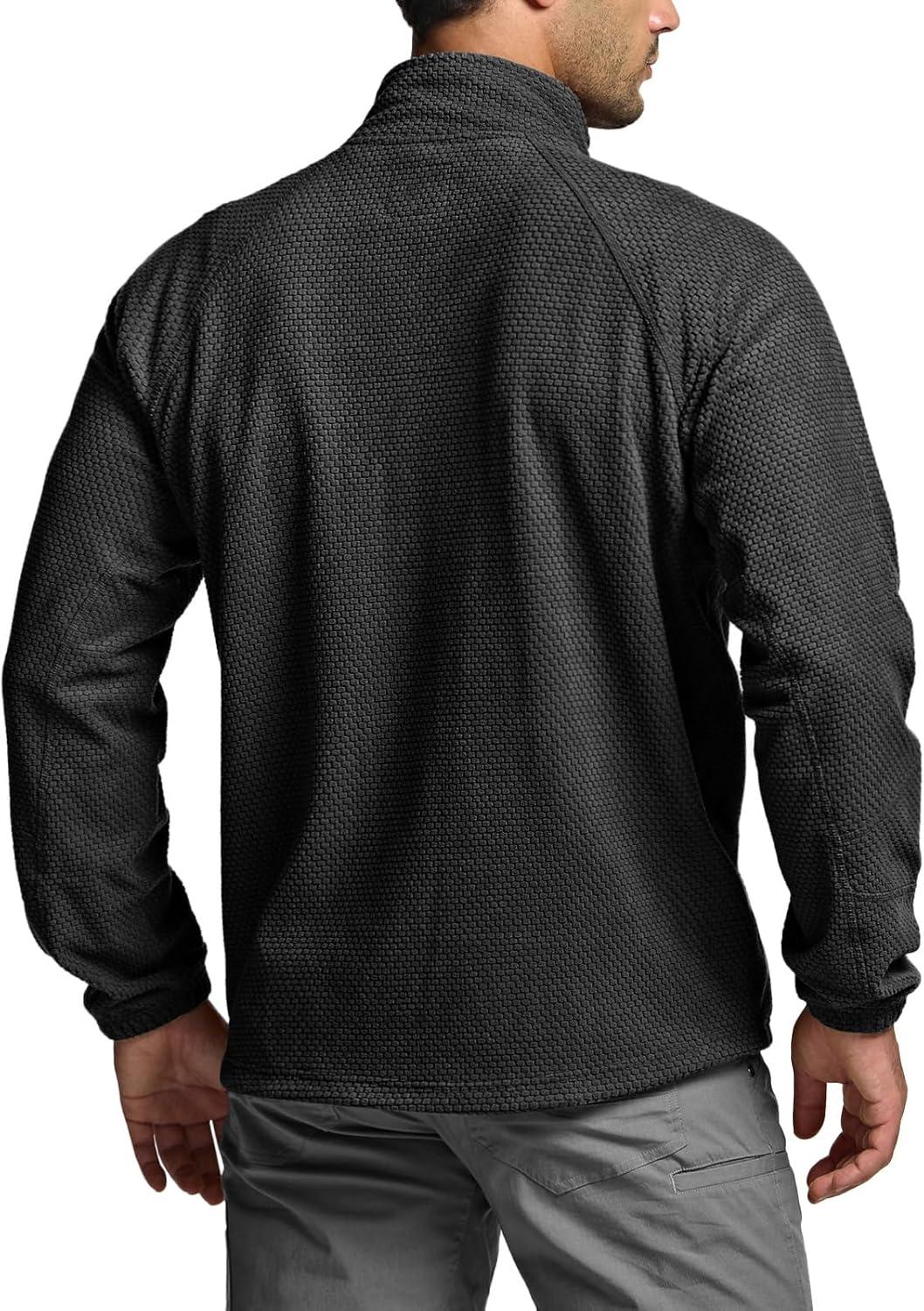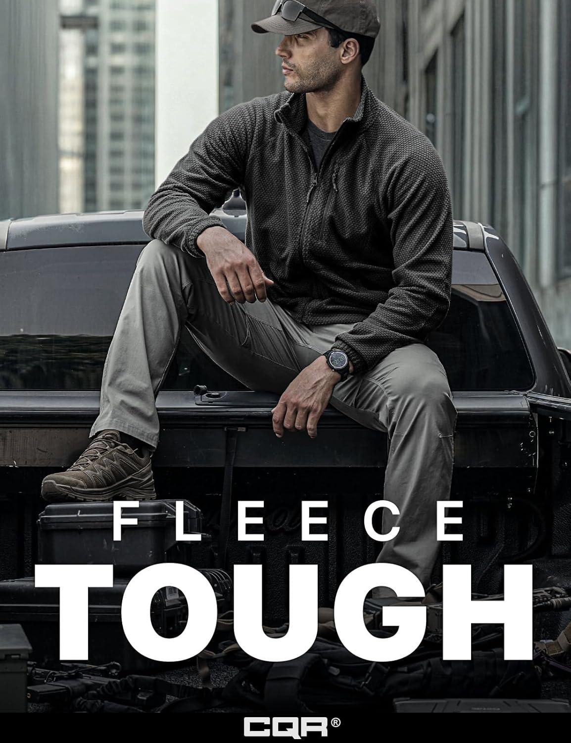 CQR Men’s Full-Zip Tactical Jacket, Soft Warm Military Winter Fleece Jackets, Outdoor Coats with Zipper Pockets(Grid Flex Black)