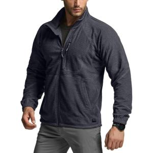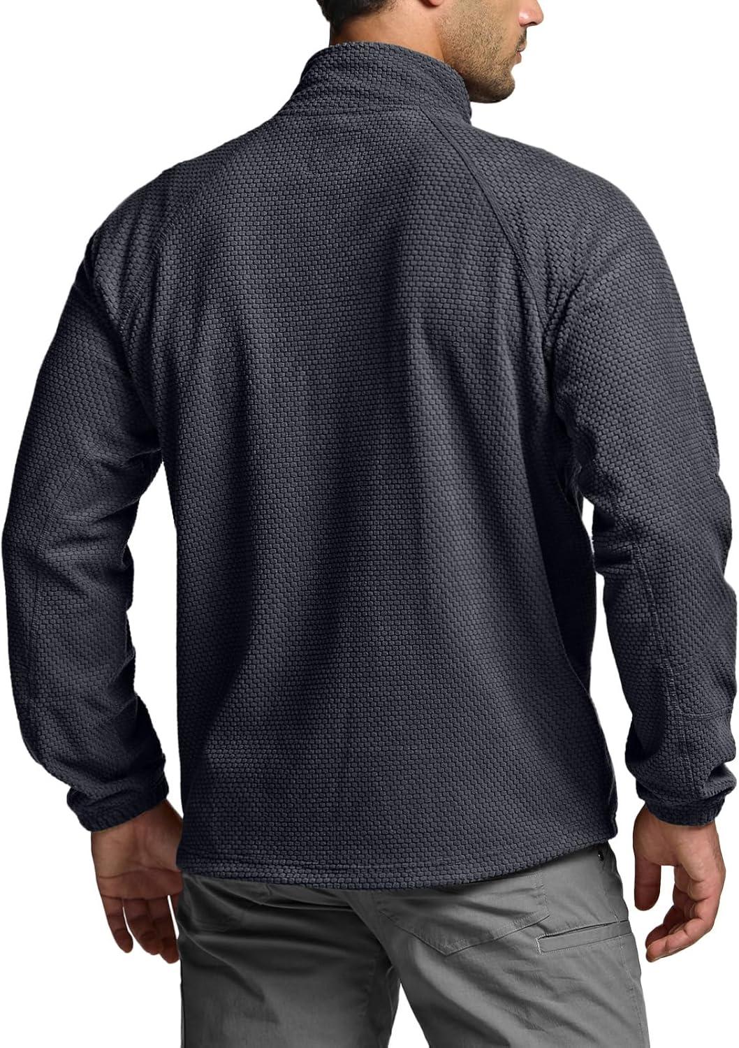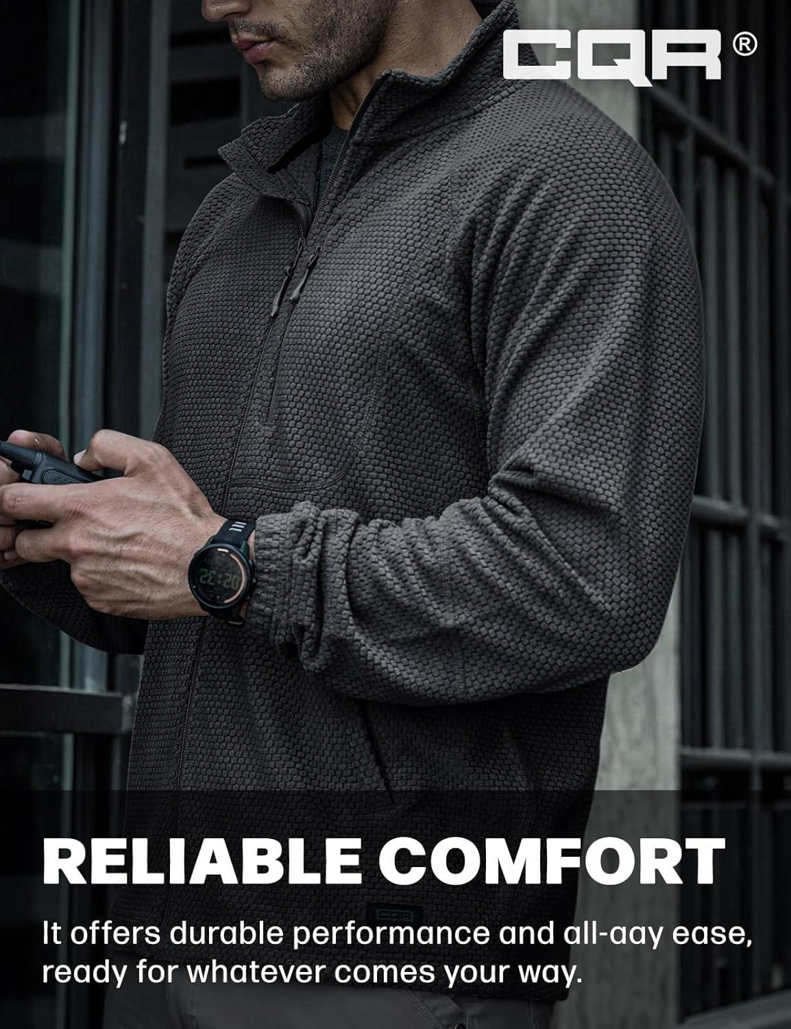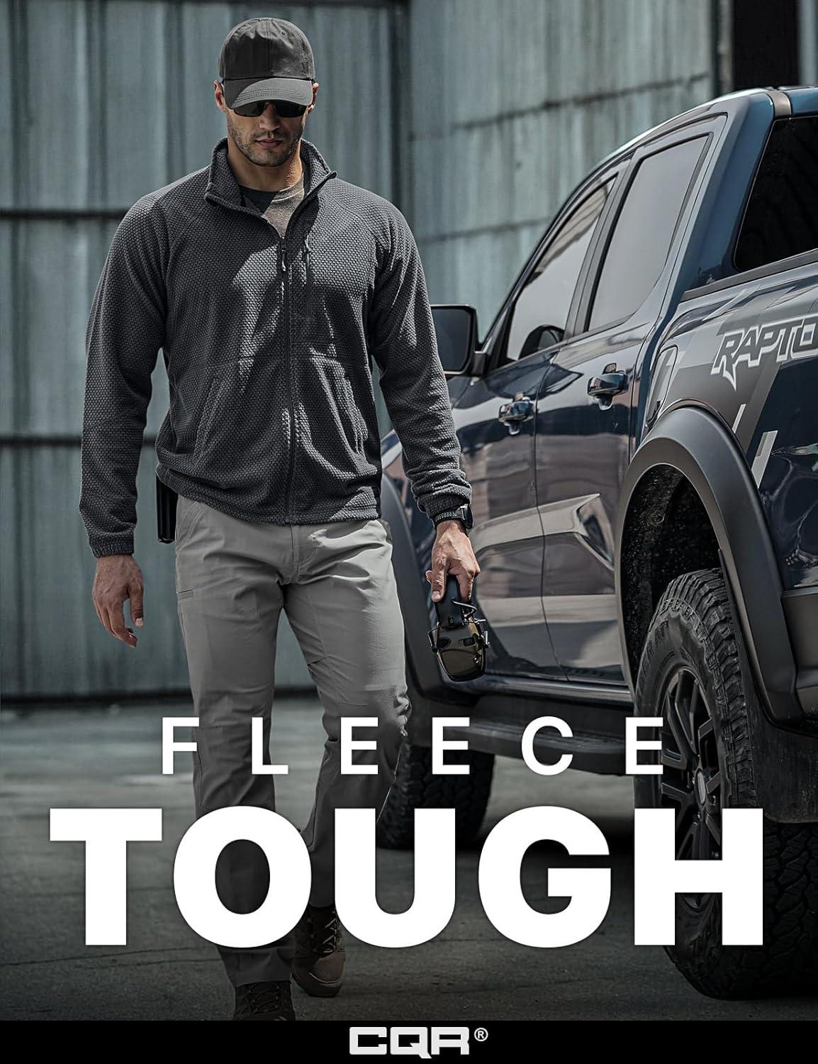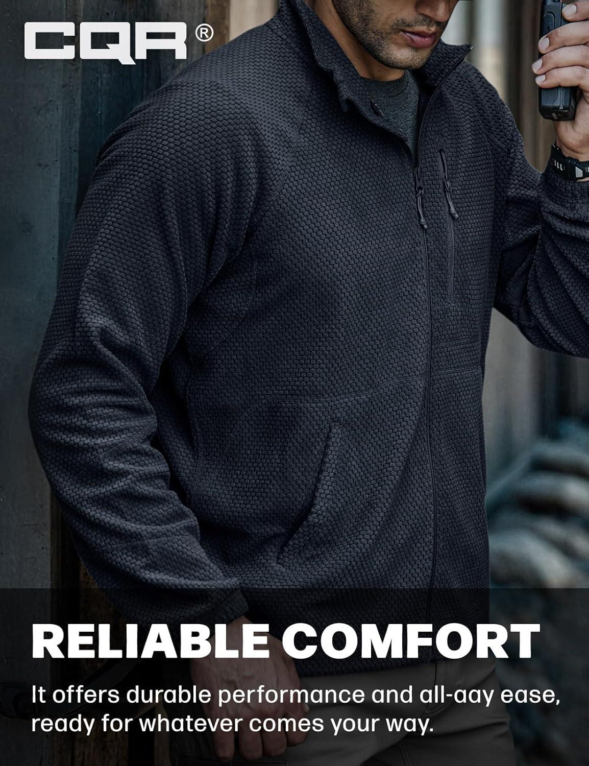CQR Men’s Full-Zip Tactical Jacket, Soft Warm Military Winter Fleece Jackets, Outdoor Coats with Zipper Pockets(Grid Flex Charcoal)