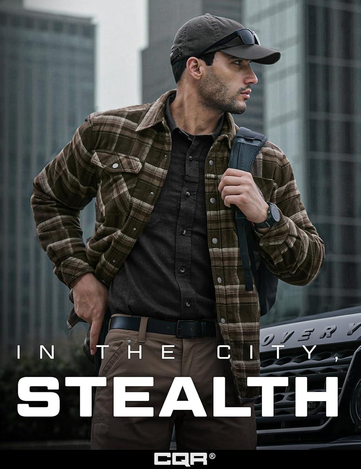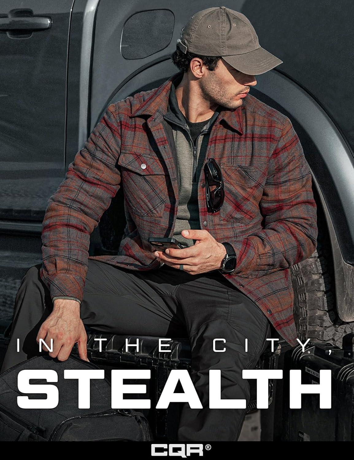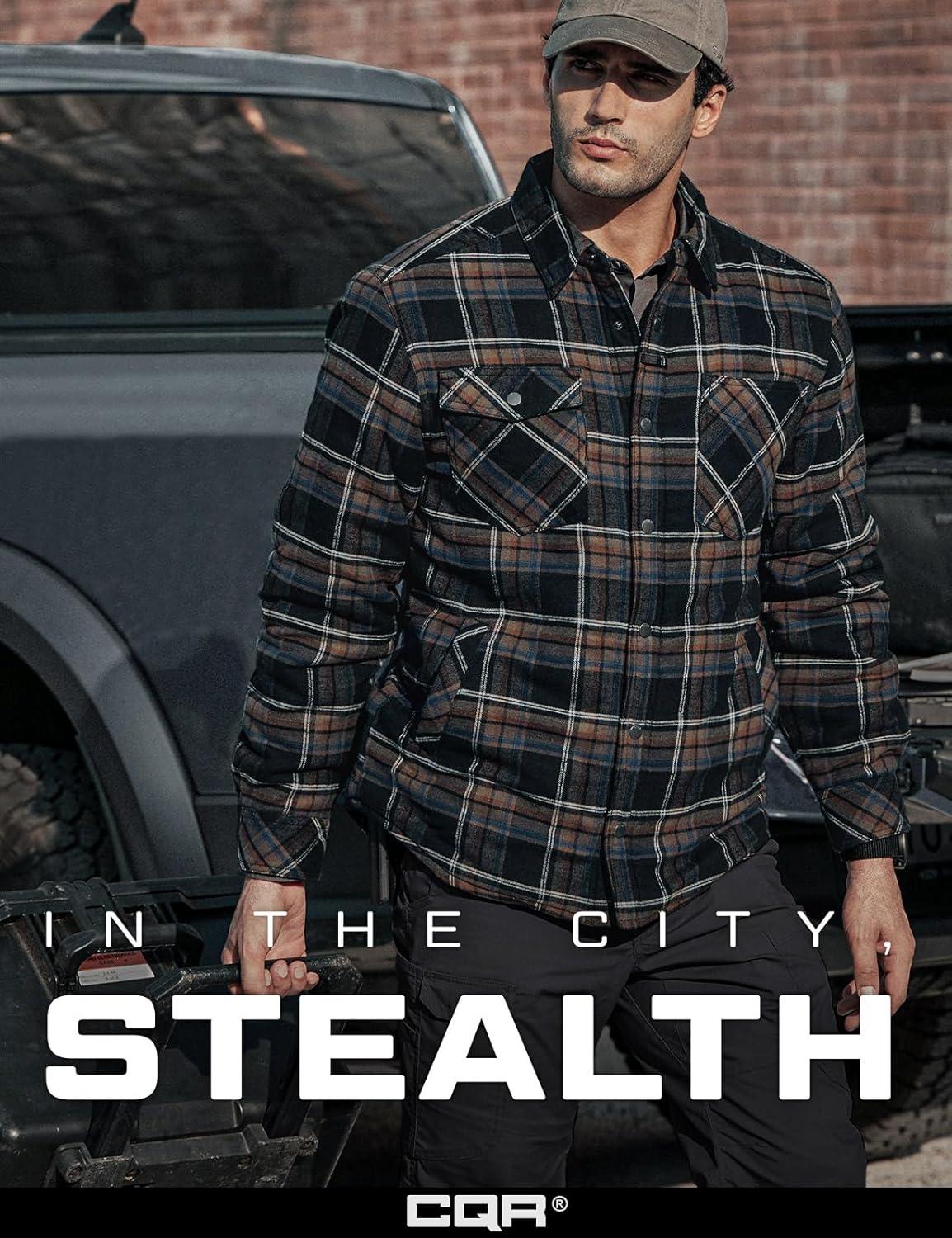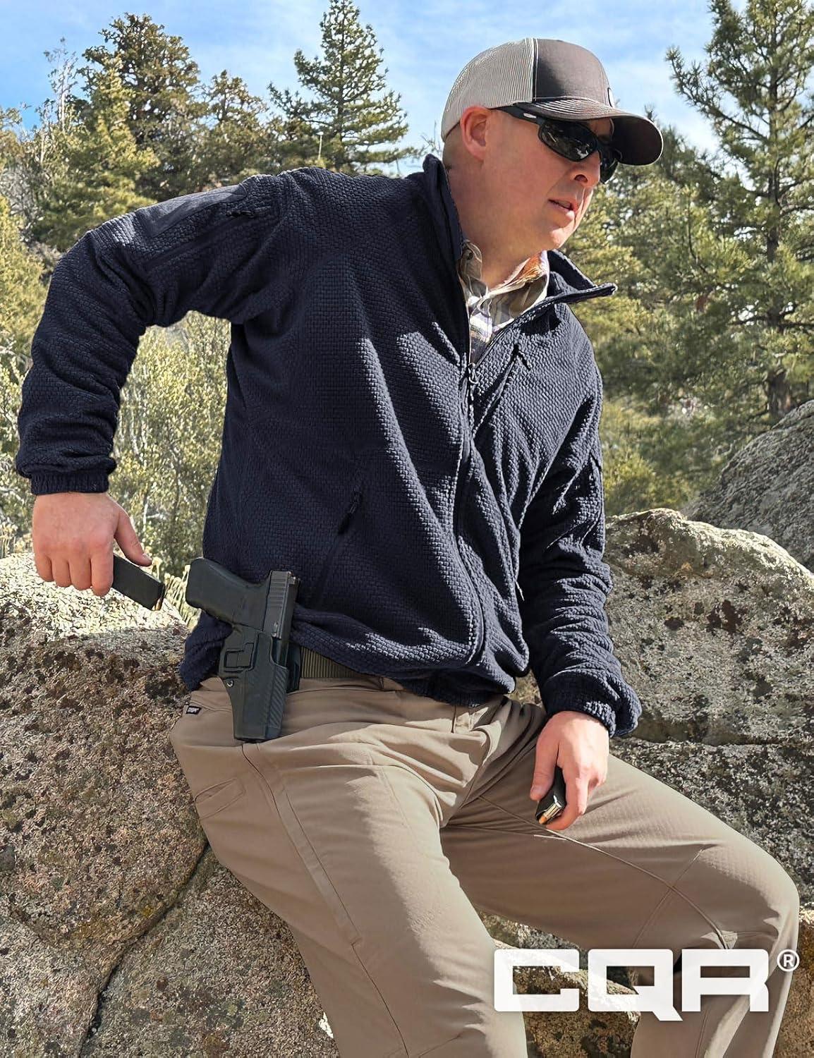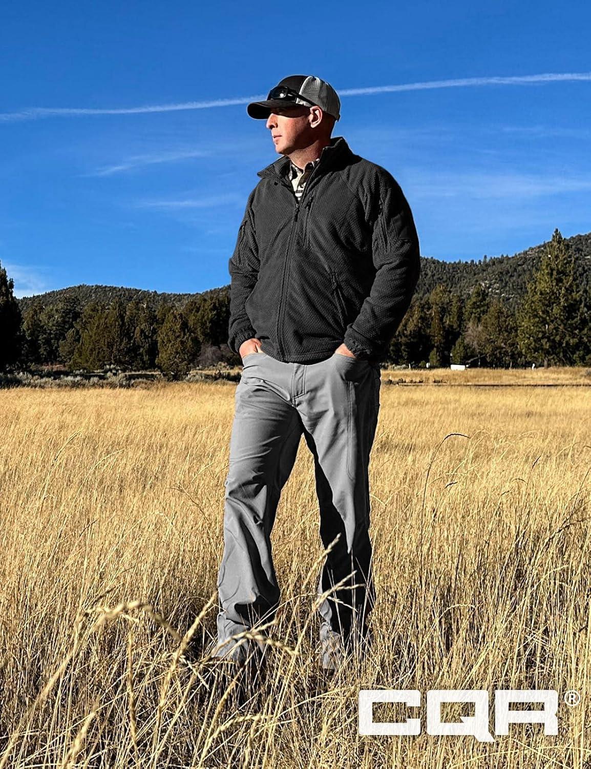 CQR Men’s Full-Zip Tactical Jacket, Soft Warm Military Winter Fleece Jackets, Outdoor Coats with Zipper Pockets(Grid Flex Charcoal)
