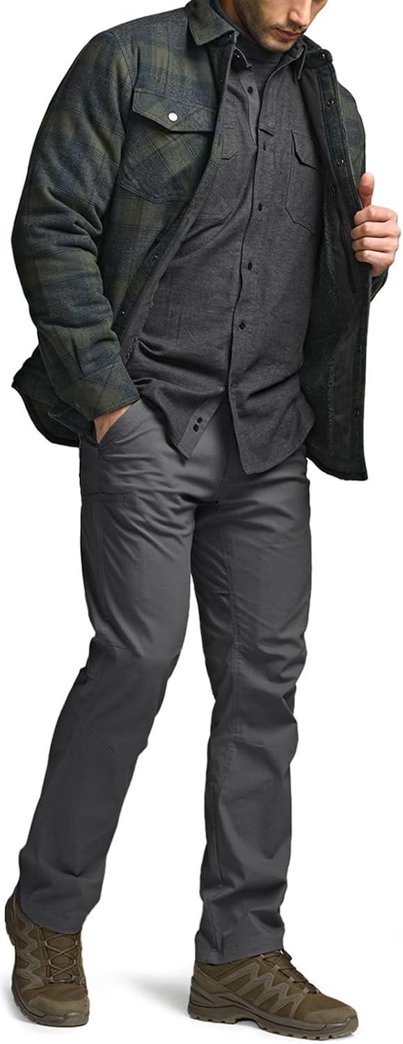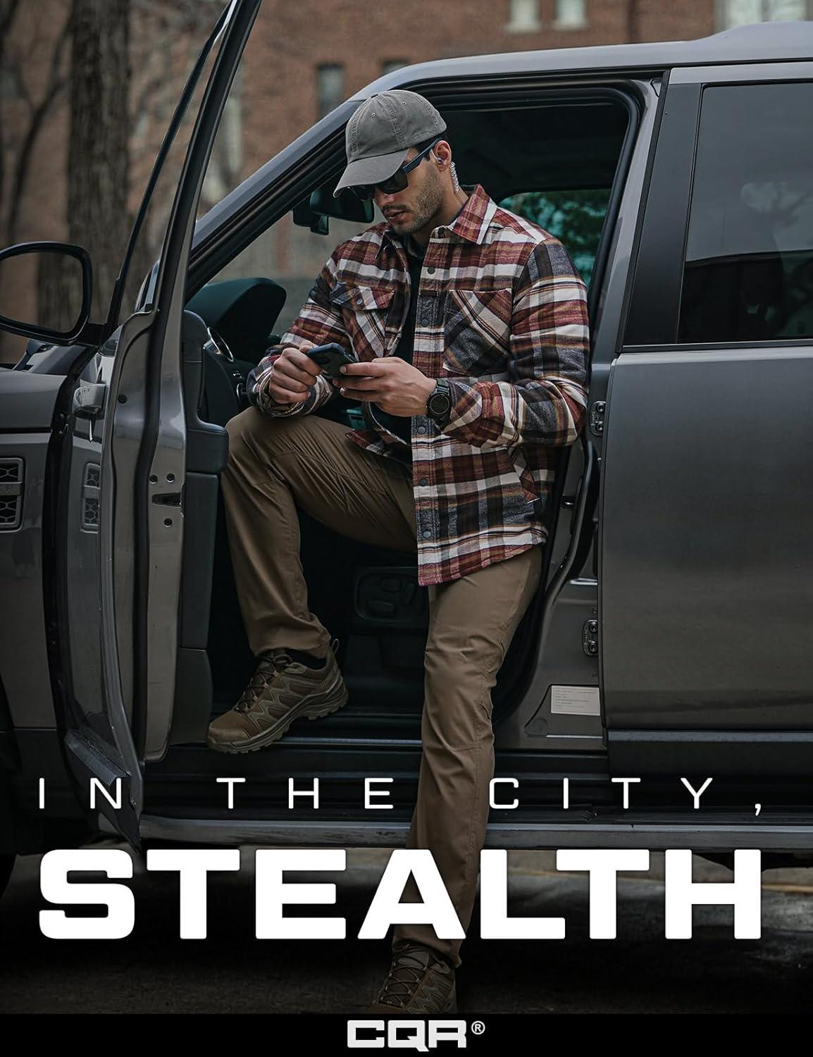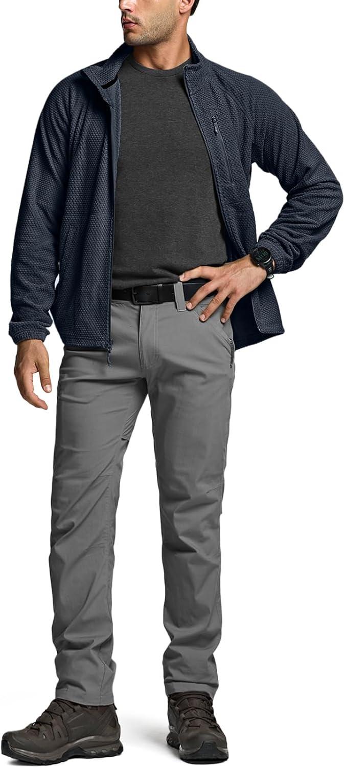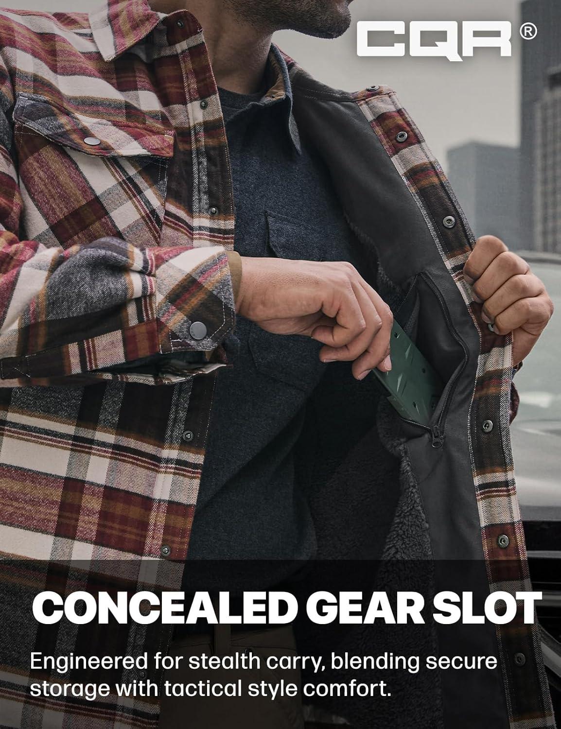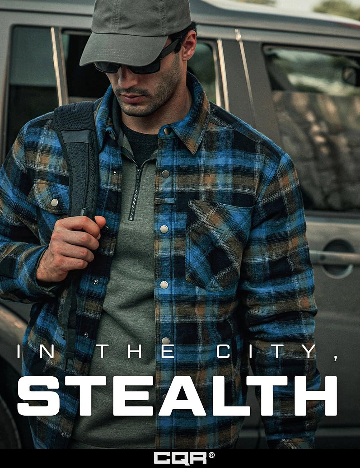 CQR Men’s Full-Zip Tactical Jacket, Soft Warm Military Winter Fleece Jackets, Outdoor Coats with Zipper Pockets(Grid Flex Charcoal)