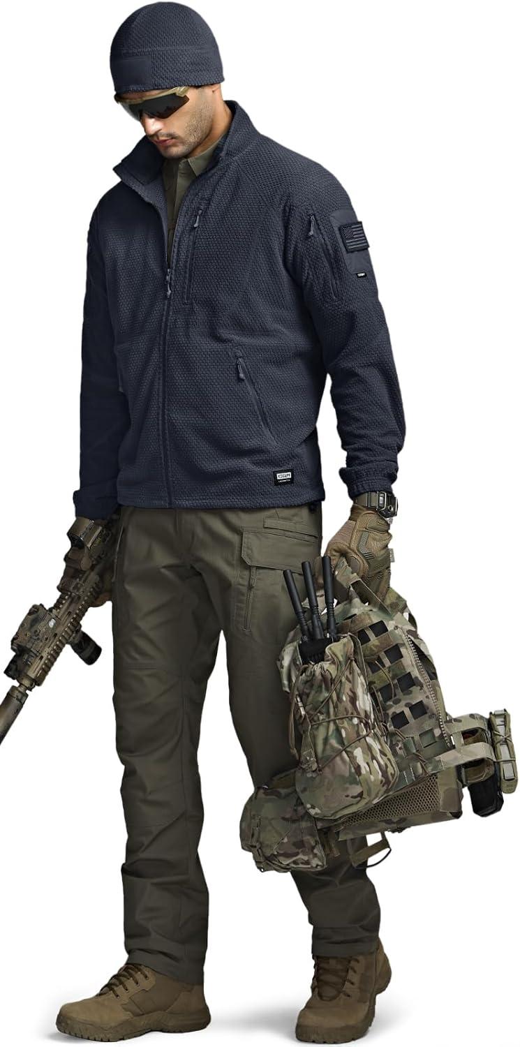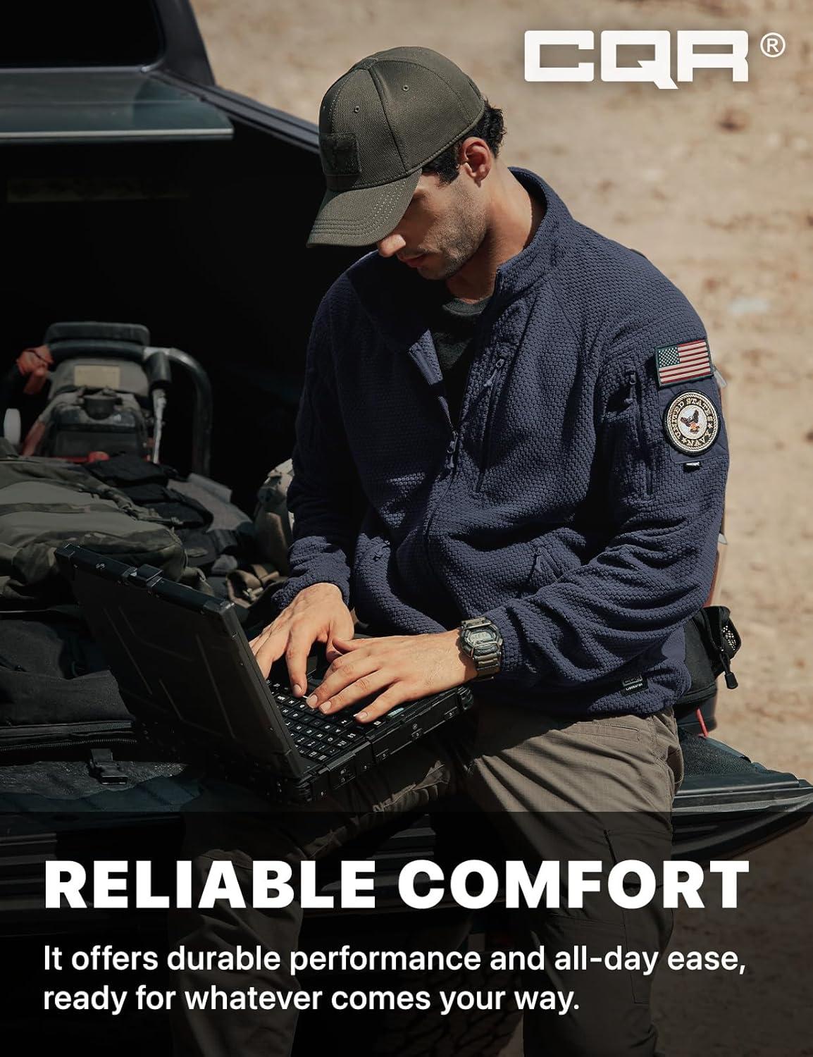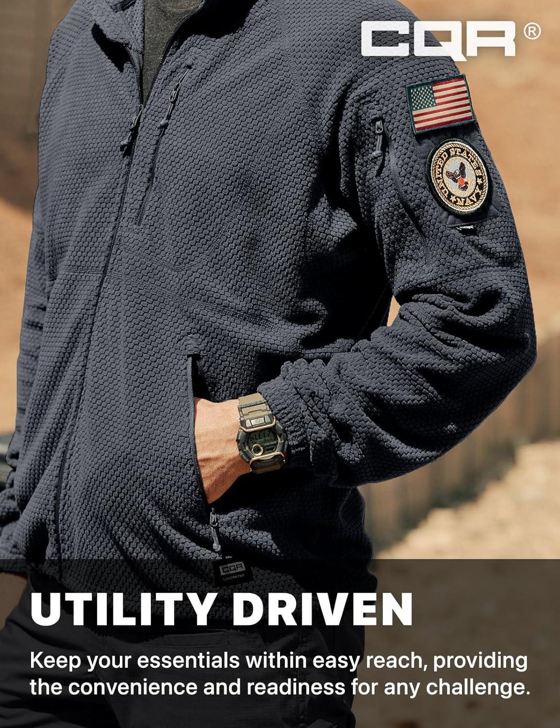 CQR Men’s Full-Zip Tactical Jacket, Soft Warm Military Winter Fleece Jackets, Outdoor Coats with Zipper Pockets(Grid Flex Operator Navy)