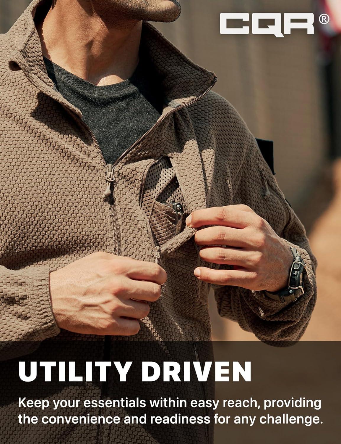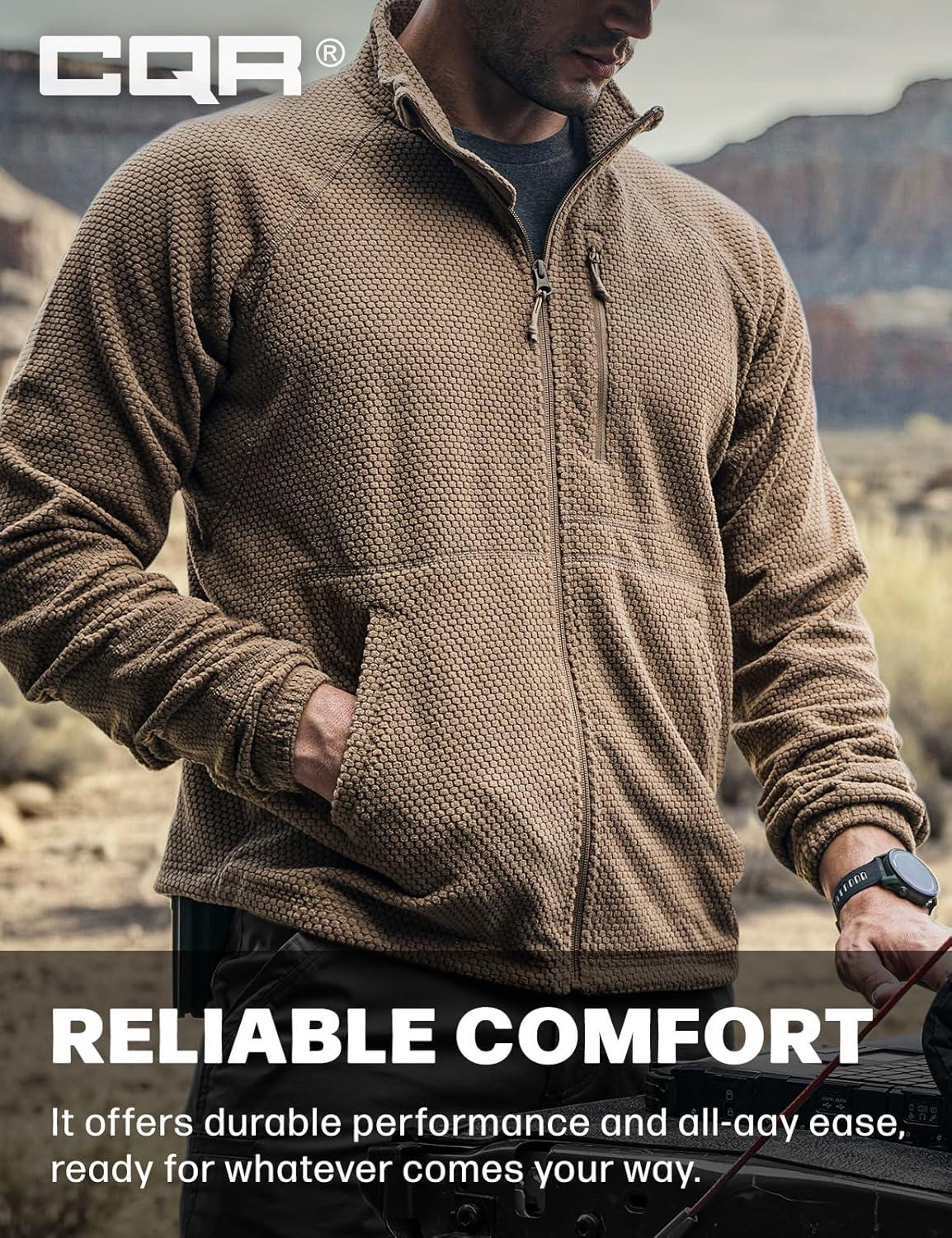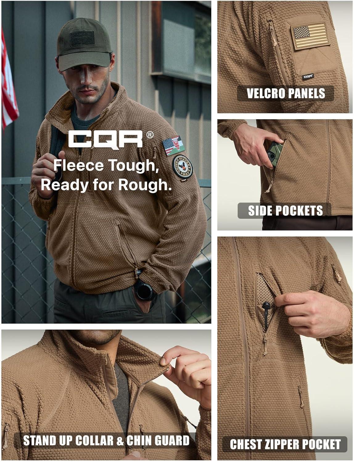 CQR Men’s Full-Zip Tactical Jacket, Soft Warm Military Winter Fleece Jackets, Outdoor Coats with Zipper Pockets(Grid Flex Coyote)