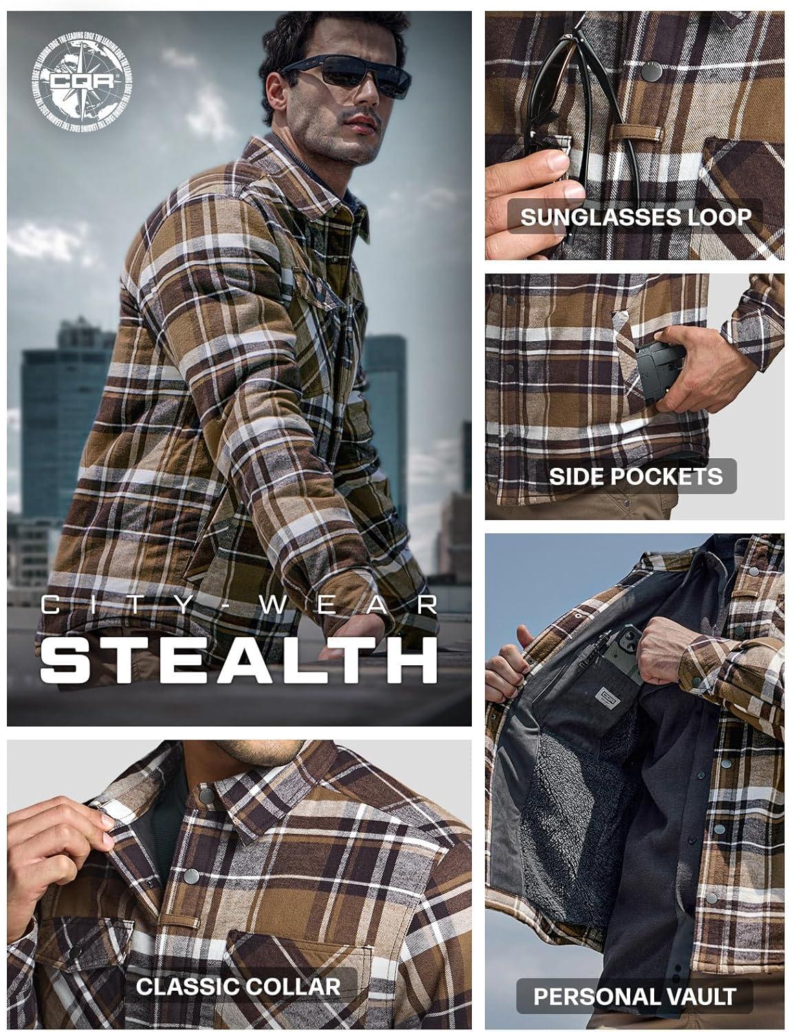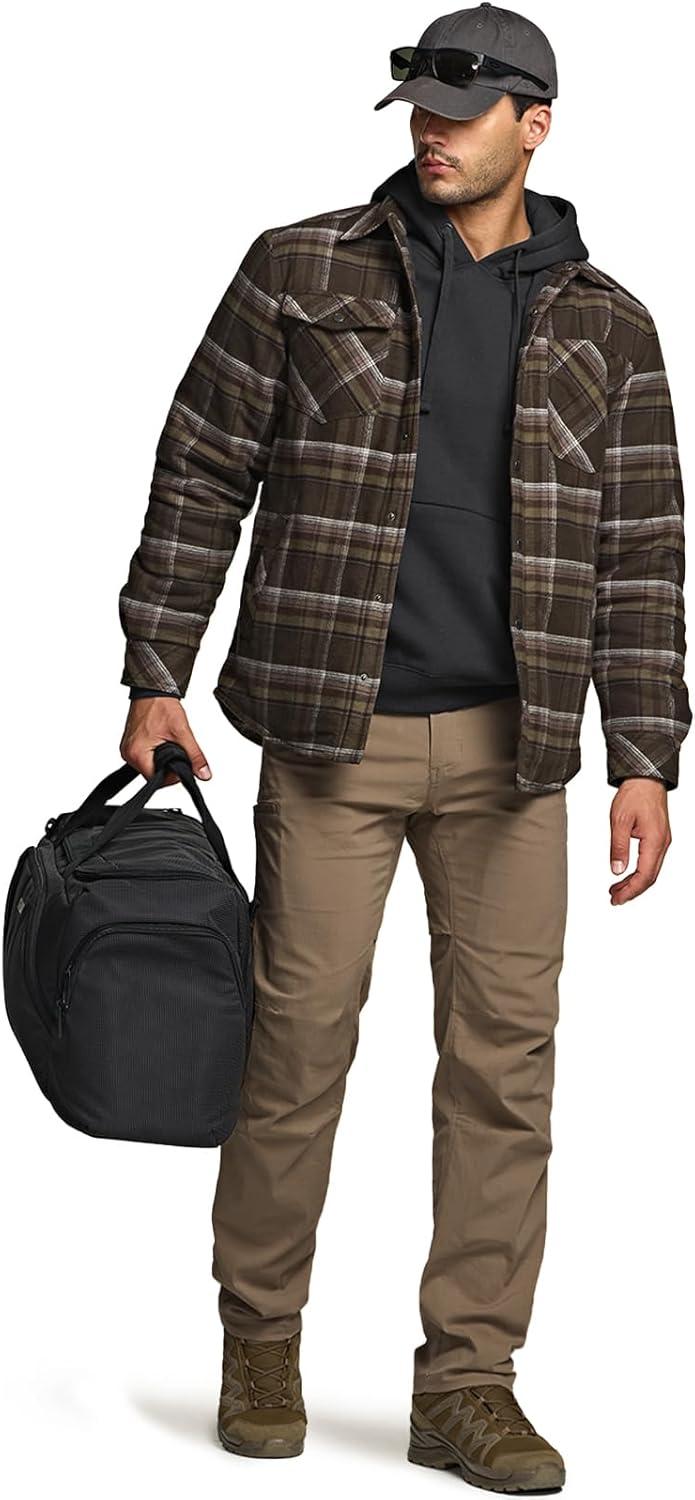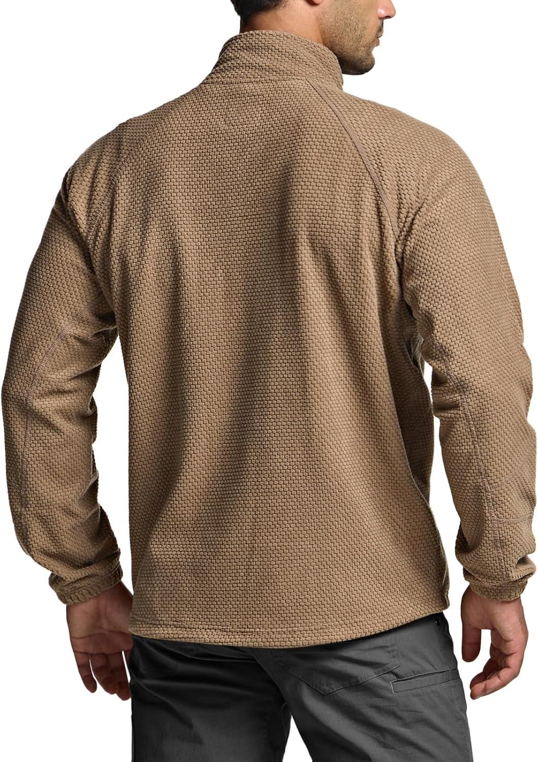 CQR Men’s Full-Zip Tactical Jacket, Soft Warm Military Winter Fleece Jackets, Outdoor Coats with Zipper Pockets(Grid Flex Coyote)