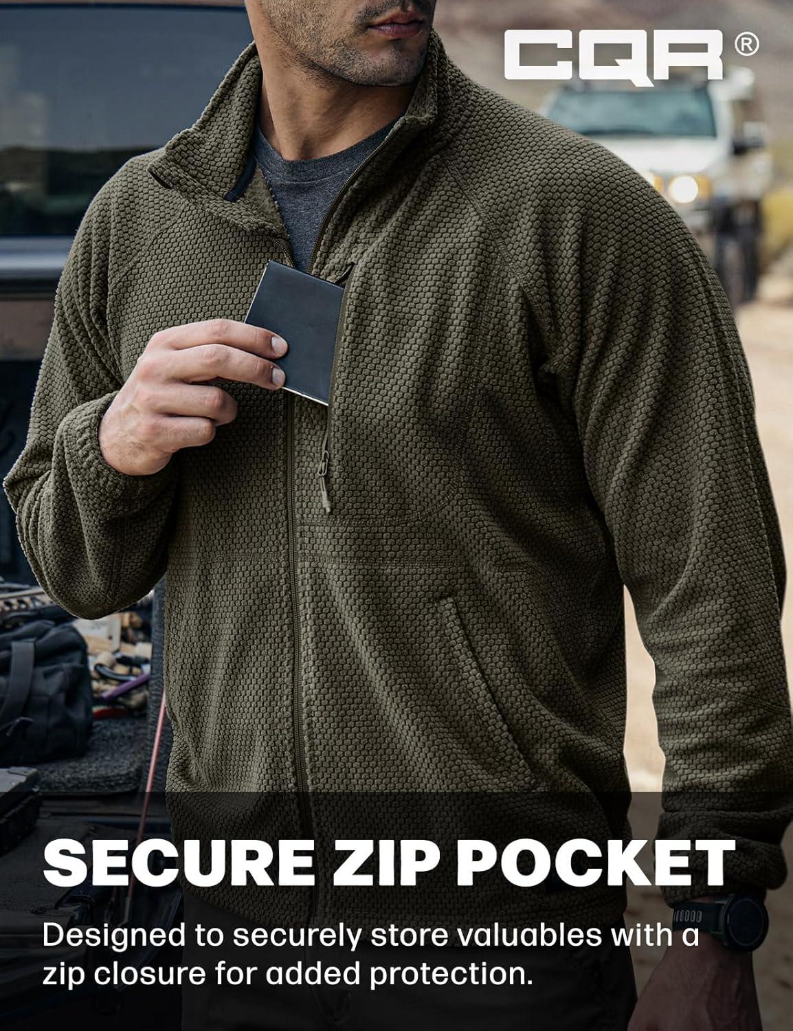 CQR Men’s Full-Zip Tactical Jacket, Soft Warm Military Winter Fleece Jackets, Outdoor Coats with Zipper Pockets(Guardian Army Green)