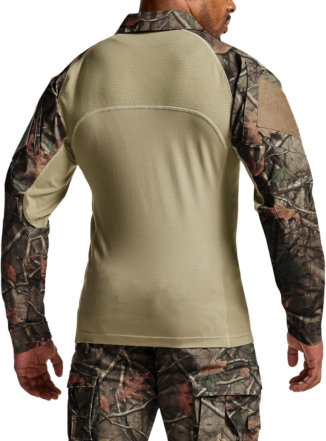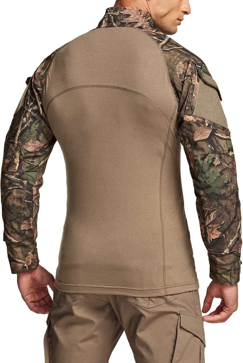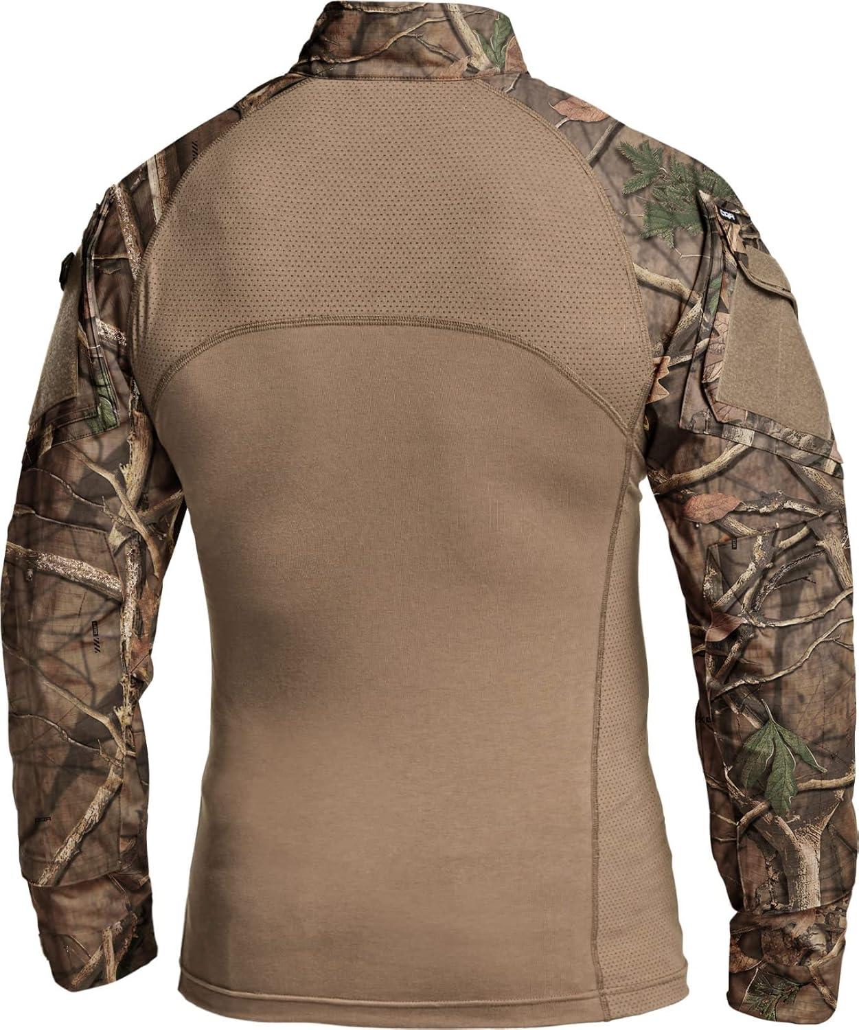 CQR Men’s Combat Shirt Tactical 1/4 Zip Long Sleeve Military BDU Shirts Camo EDC Top with Pockets(Raider Hunting Camo)