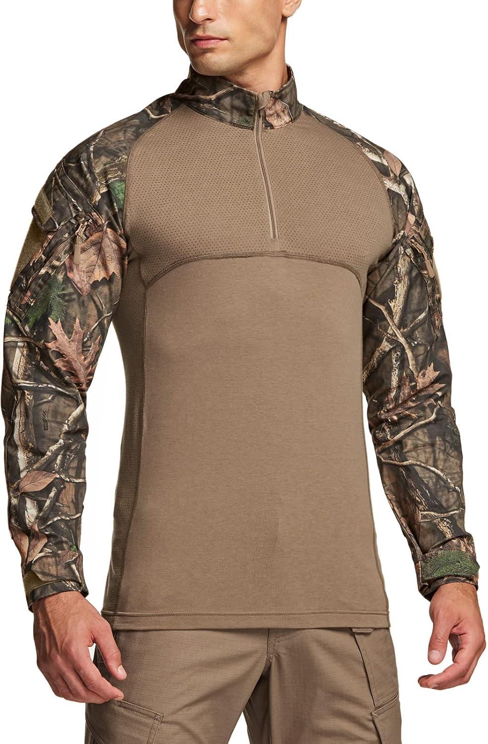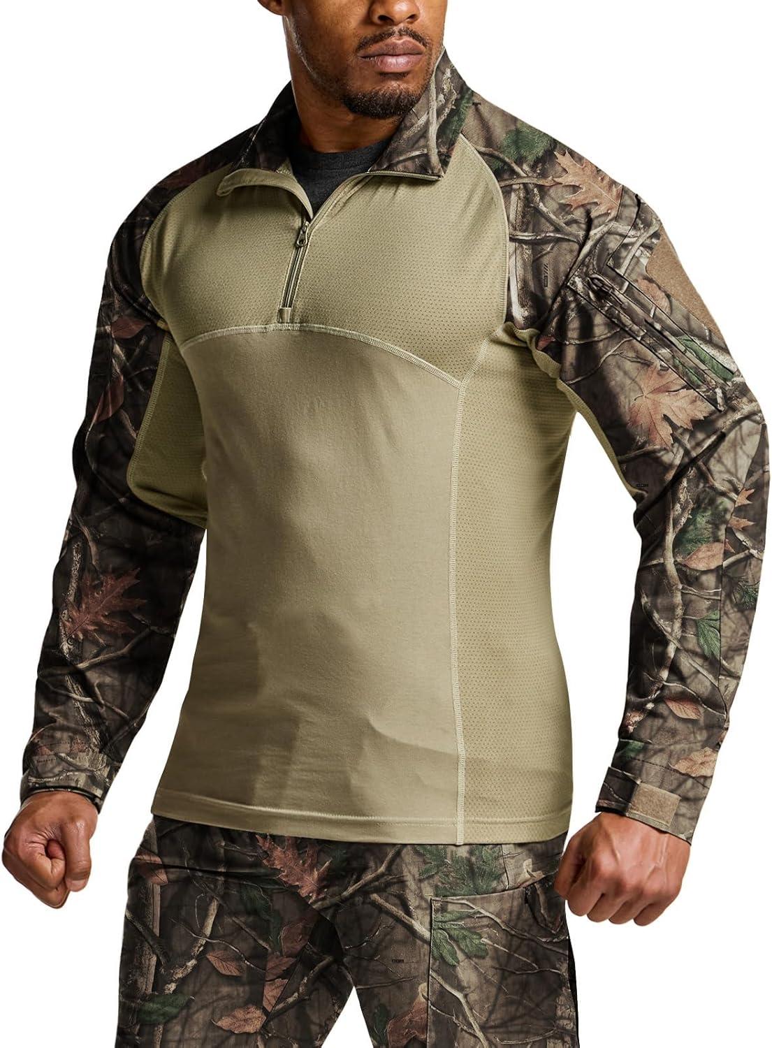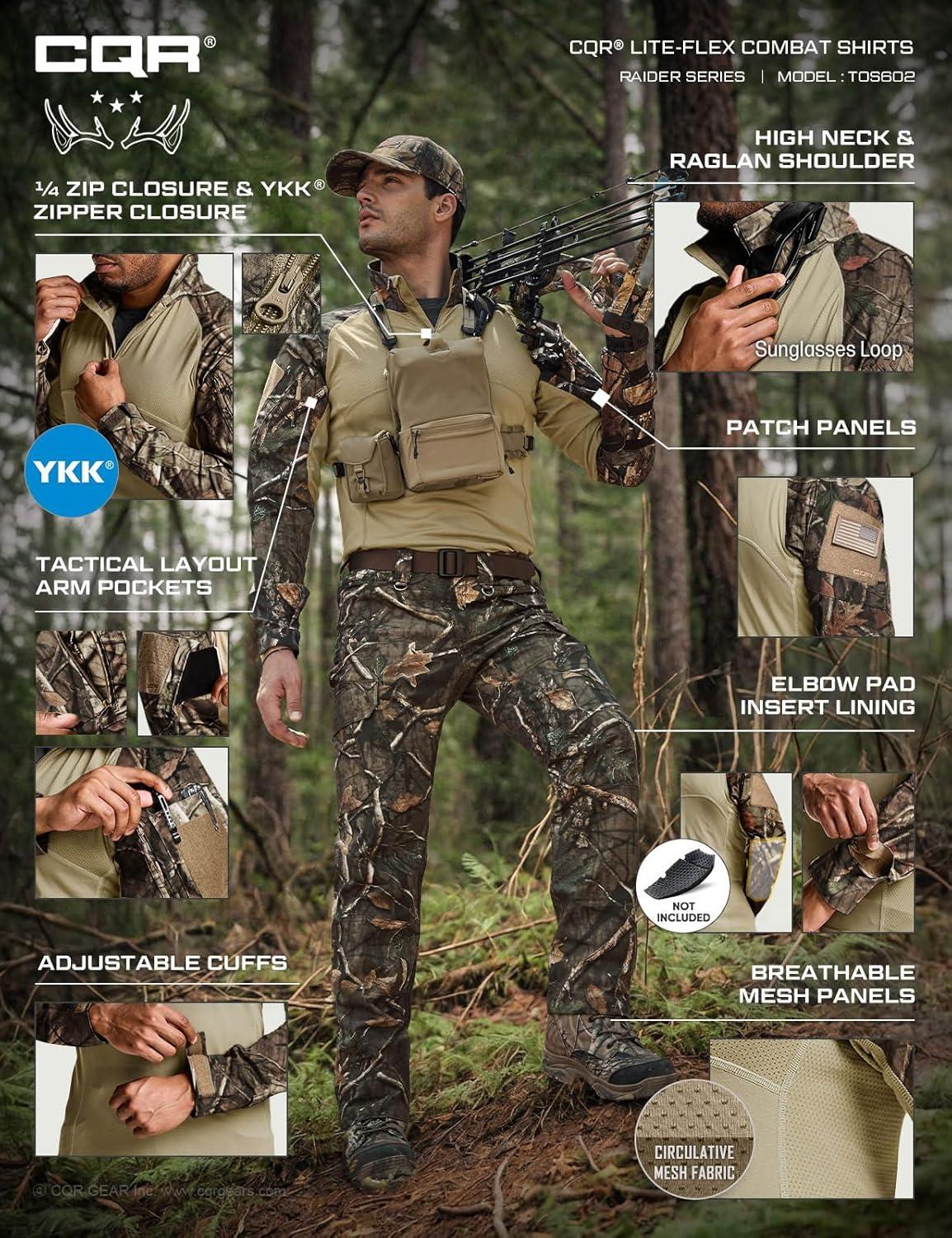 CQR Men’s Combat Shirt Tactical 1/4 Zip Long Sleeve Military BDU Shirts Camo EDC Top with Pockets(Raider Hunting Camo)