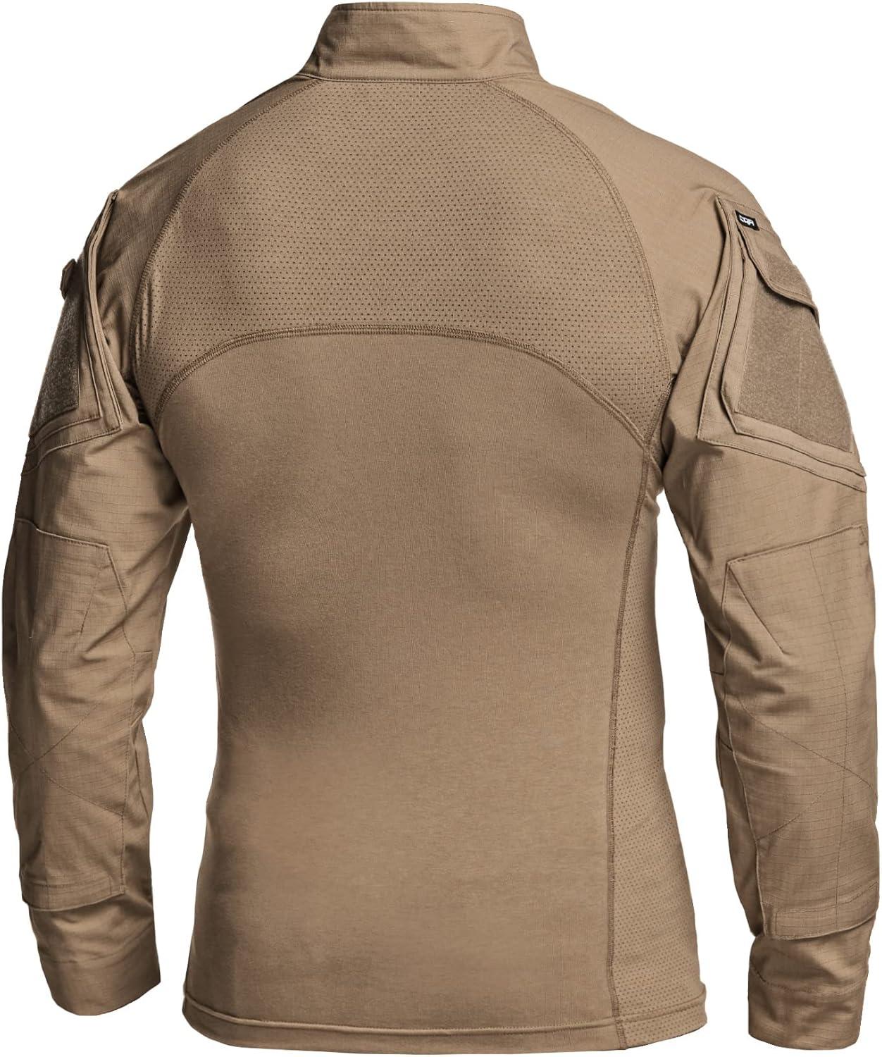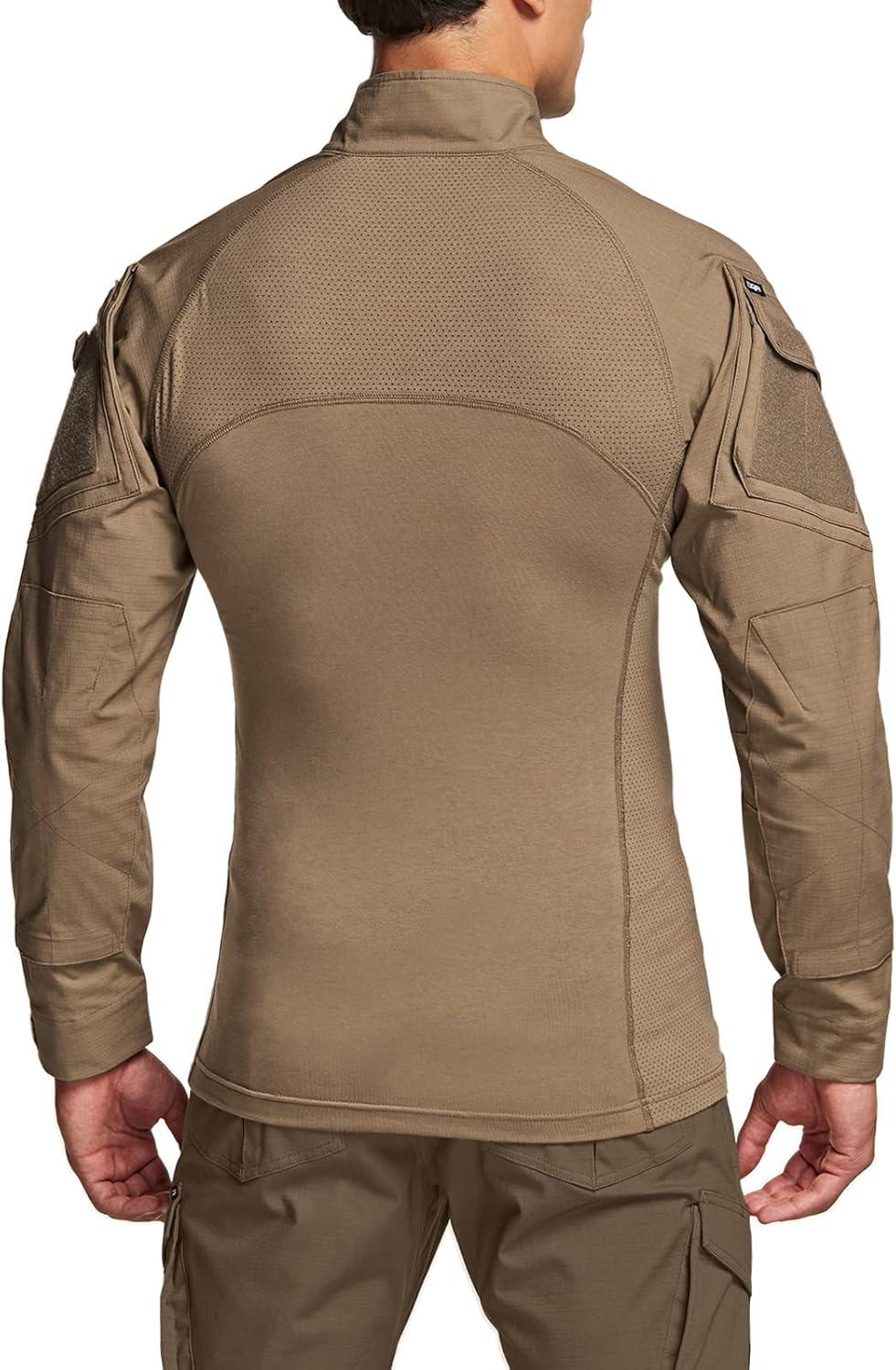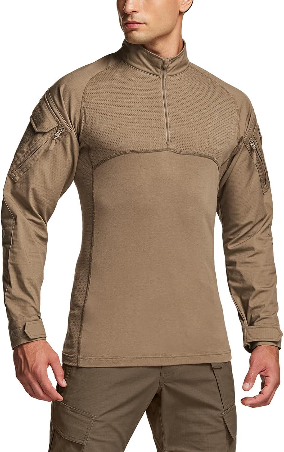 CQR Men’s Combat Shirt Tactical 1/4 Zip Long Sleeve Military BDU Shirts Camo EDC Top with Pockets(Military Shirts Coyote)