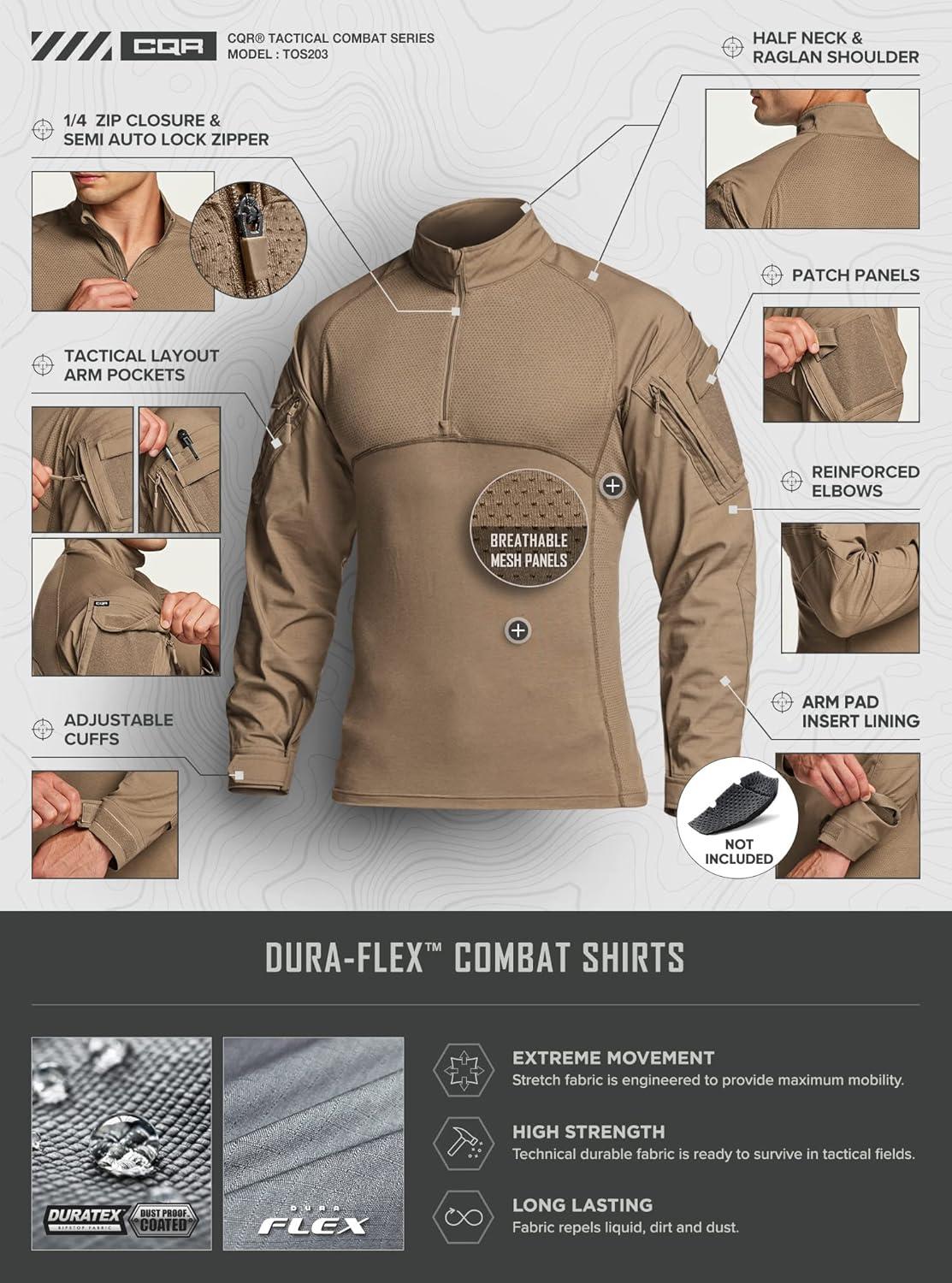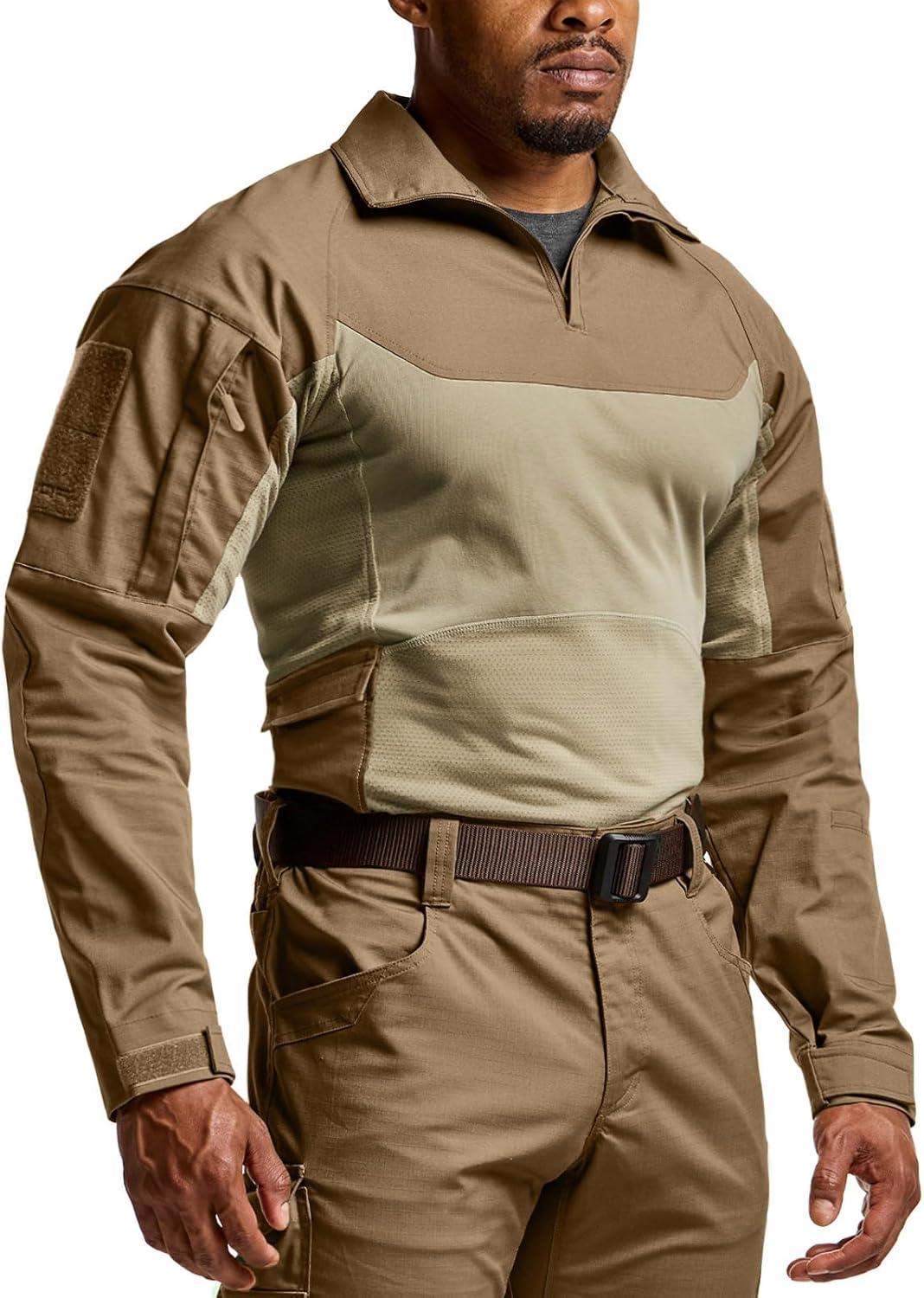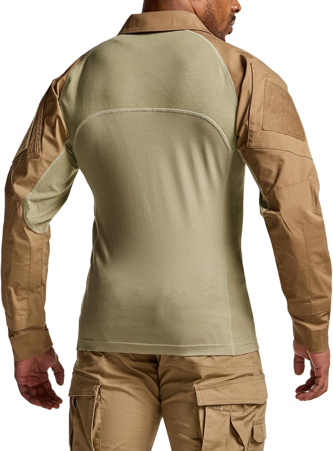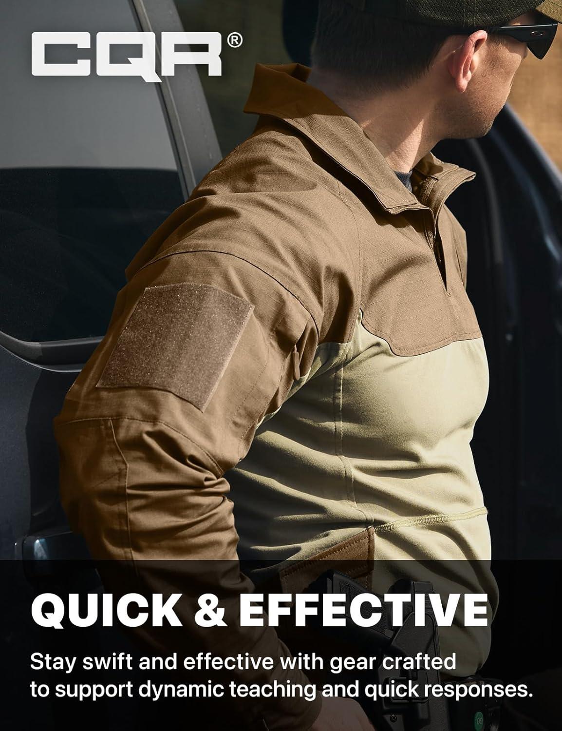 CQR Men’s Combat Shirt Tactical 1/4 Zip Long Sleeve Military BDU Shirts Camo EDC Top with Pockets(Military Shirts Coyote)