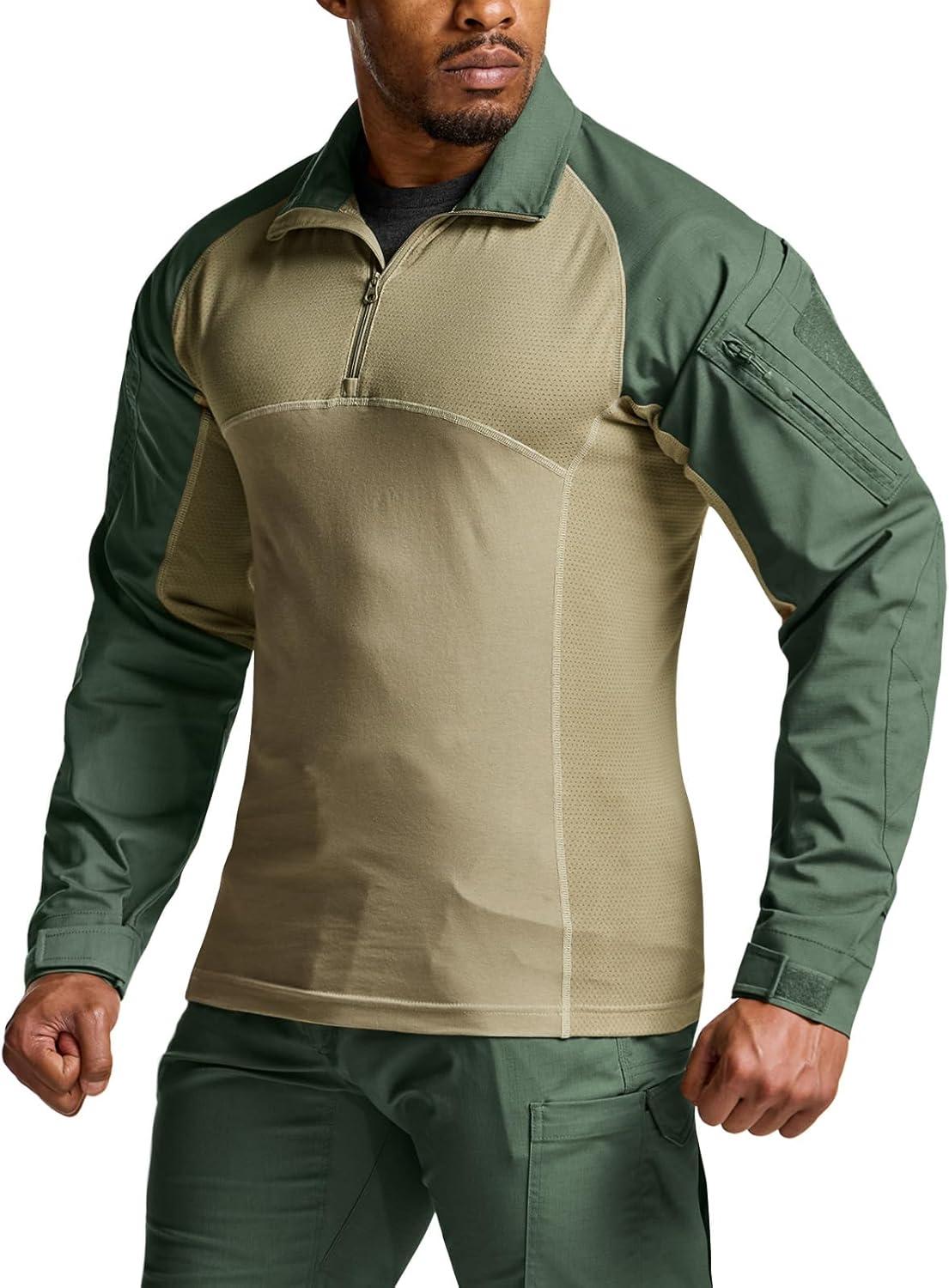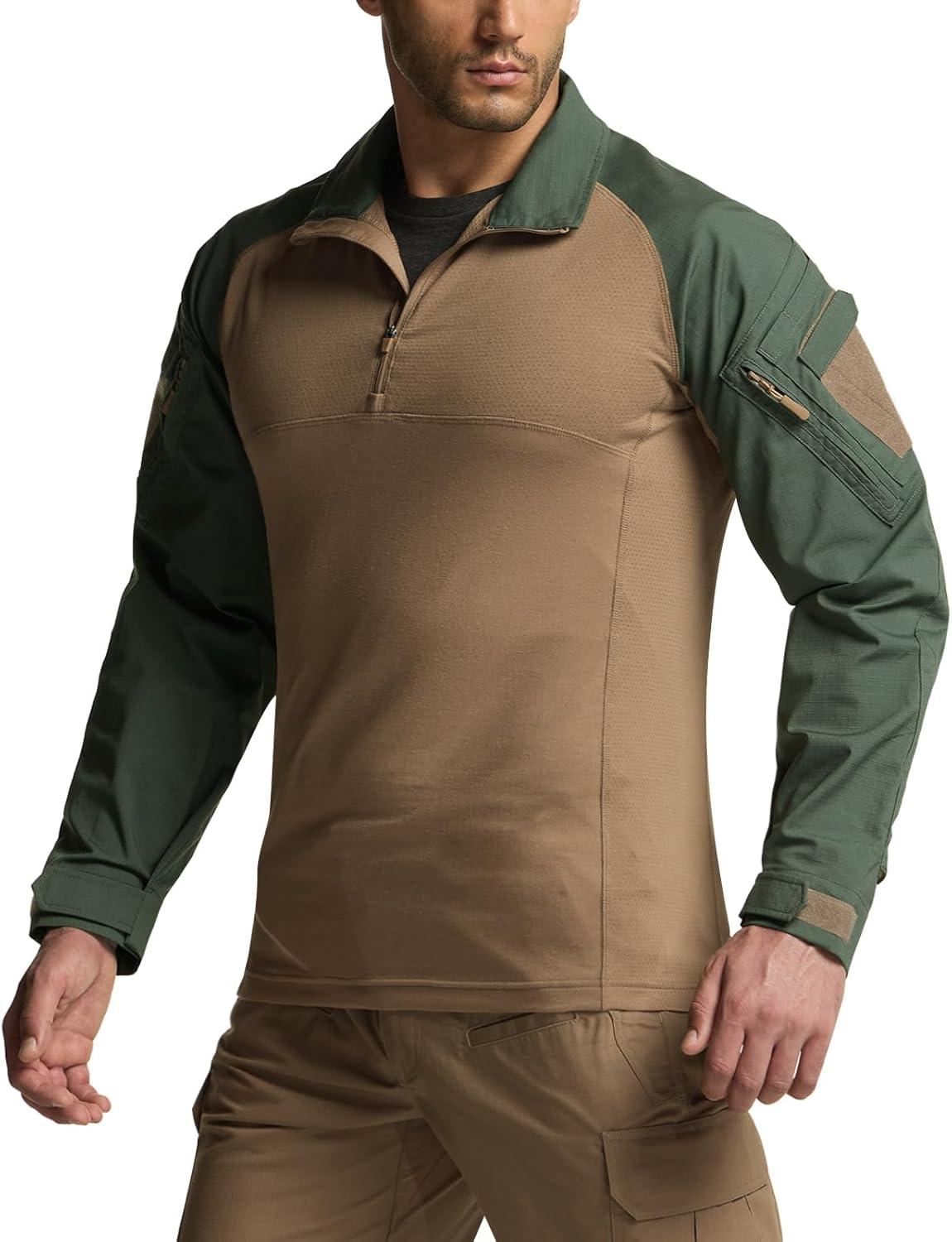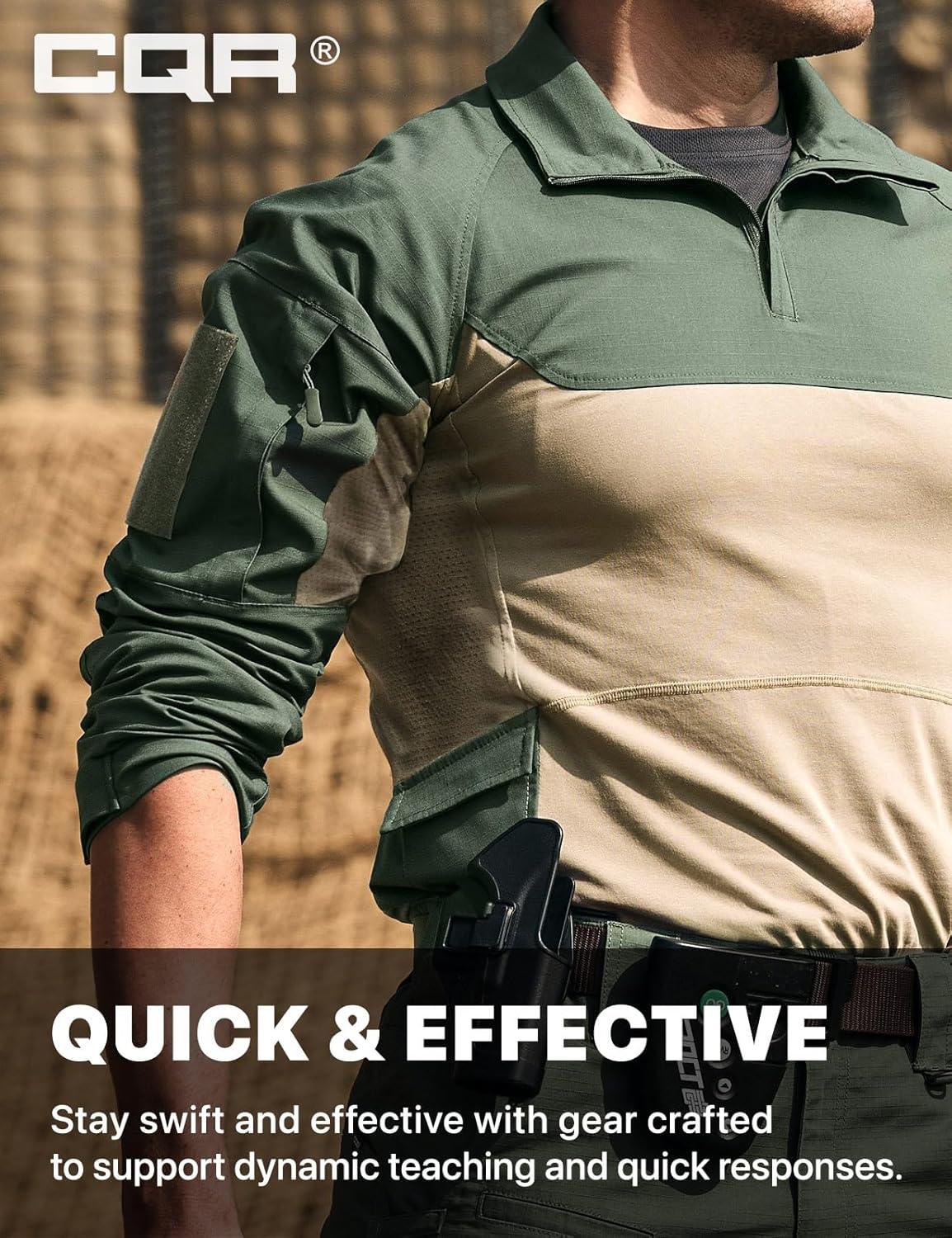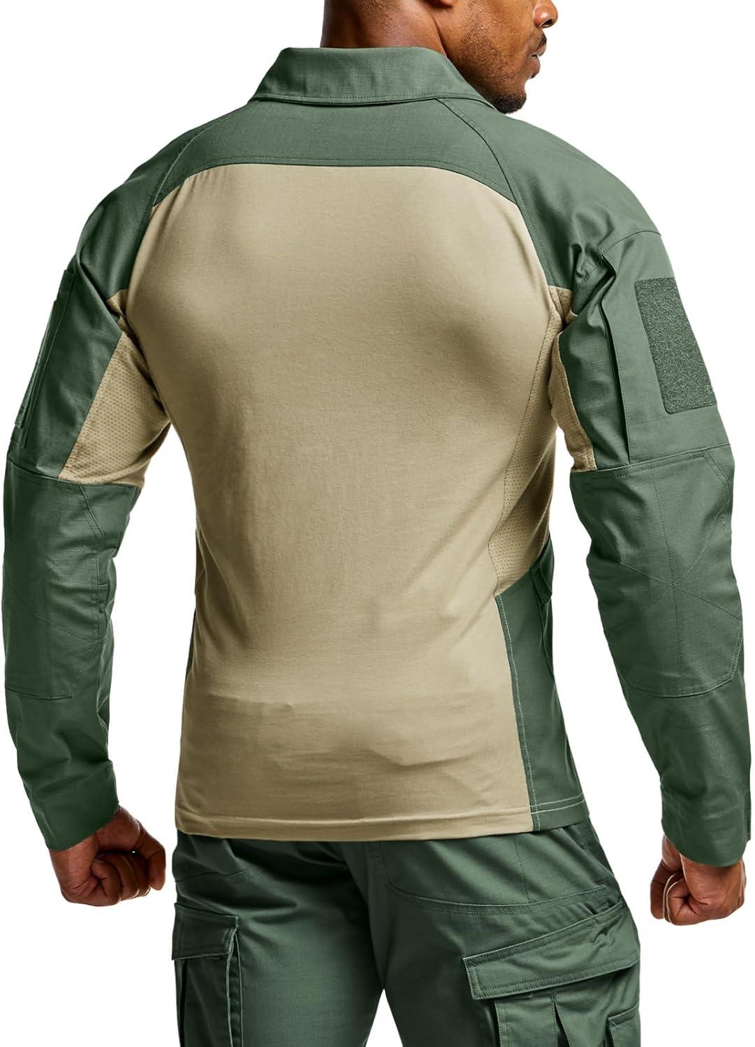CQR Men’s Combat Shirt Tactical 1/4 Zip Long Sleeve Military BDU Shirts Camo EDC Top with Pockets(Raider Pro Soil Green)