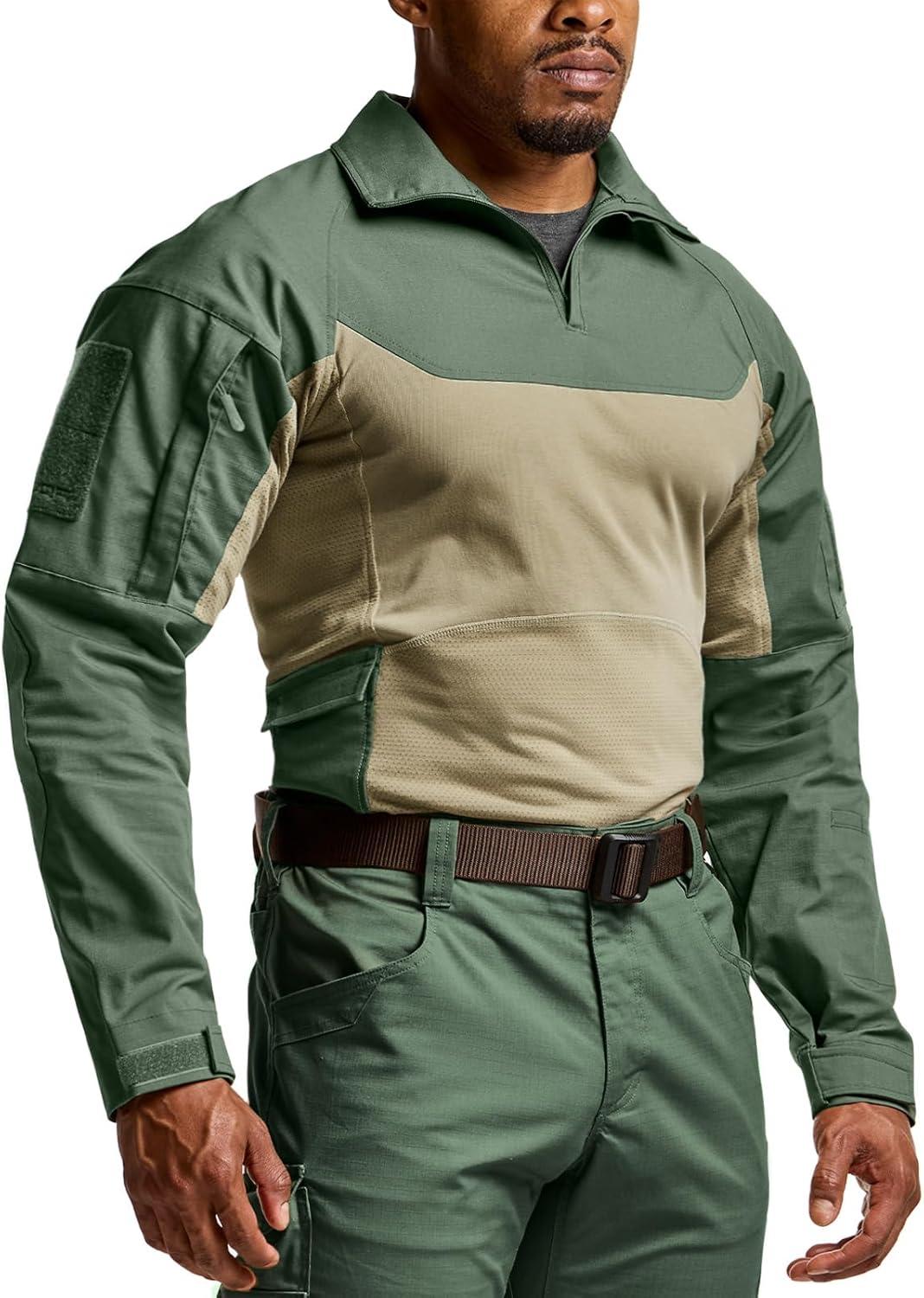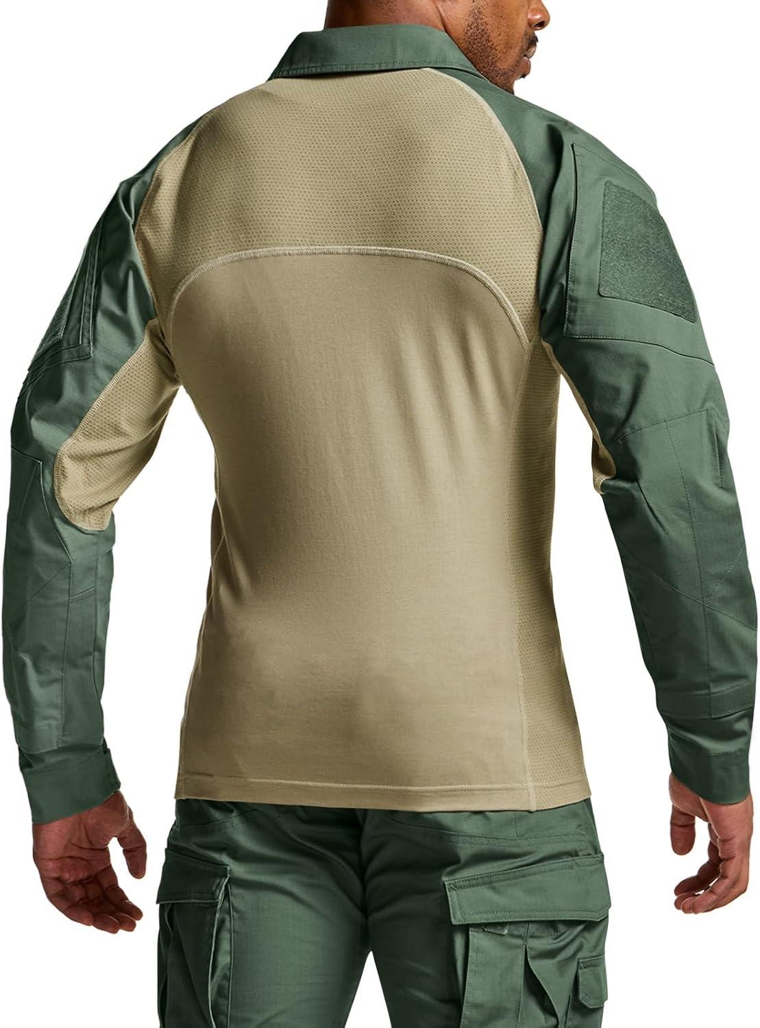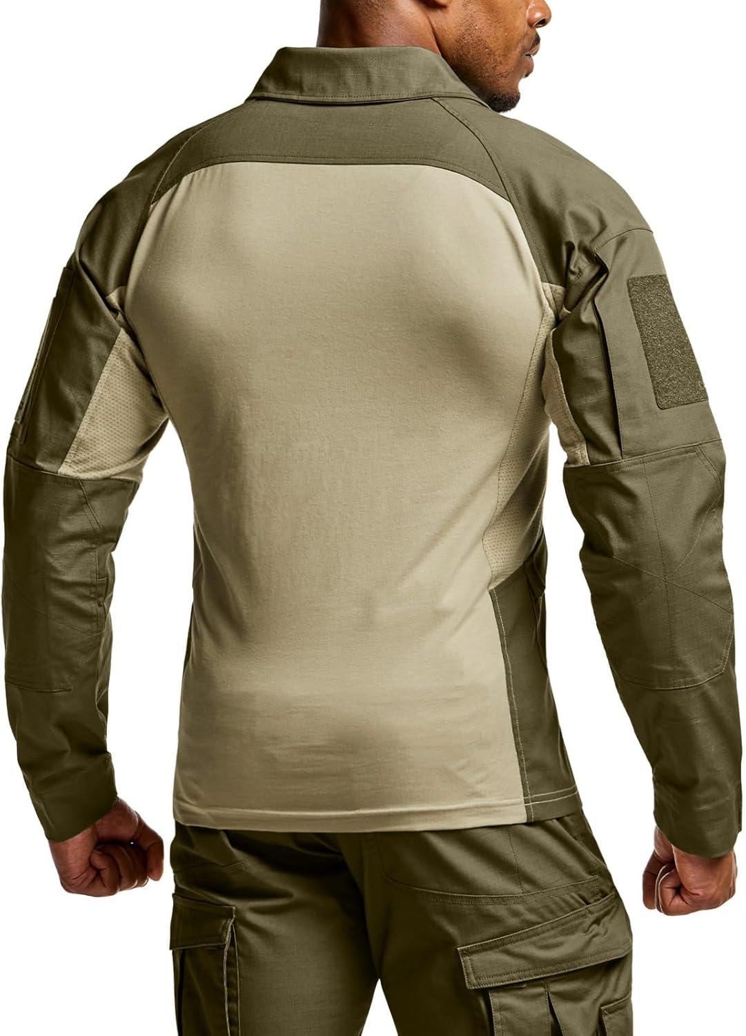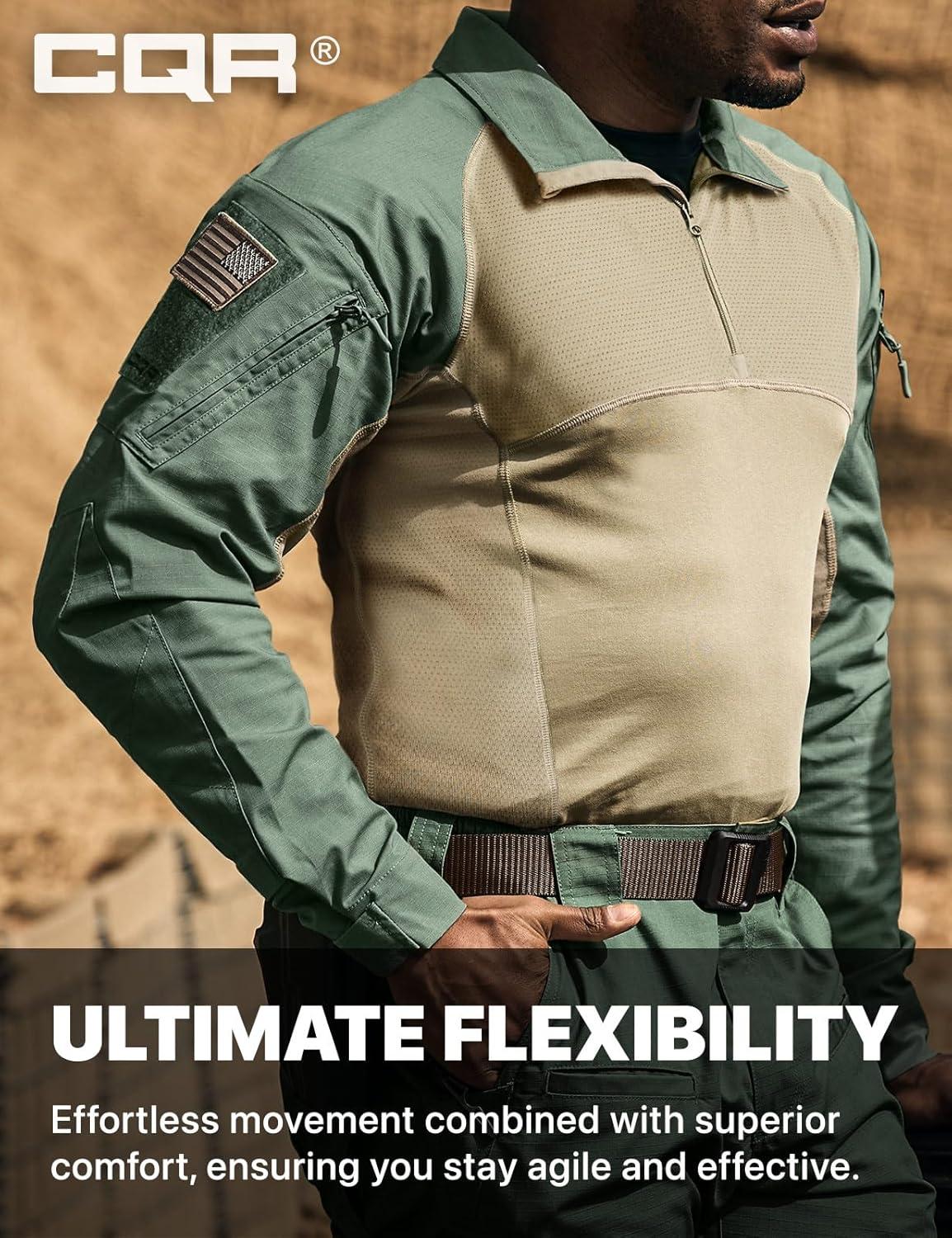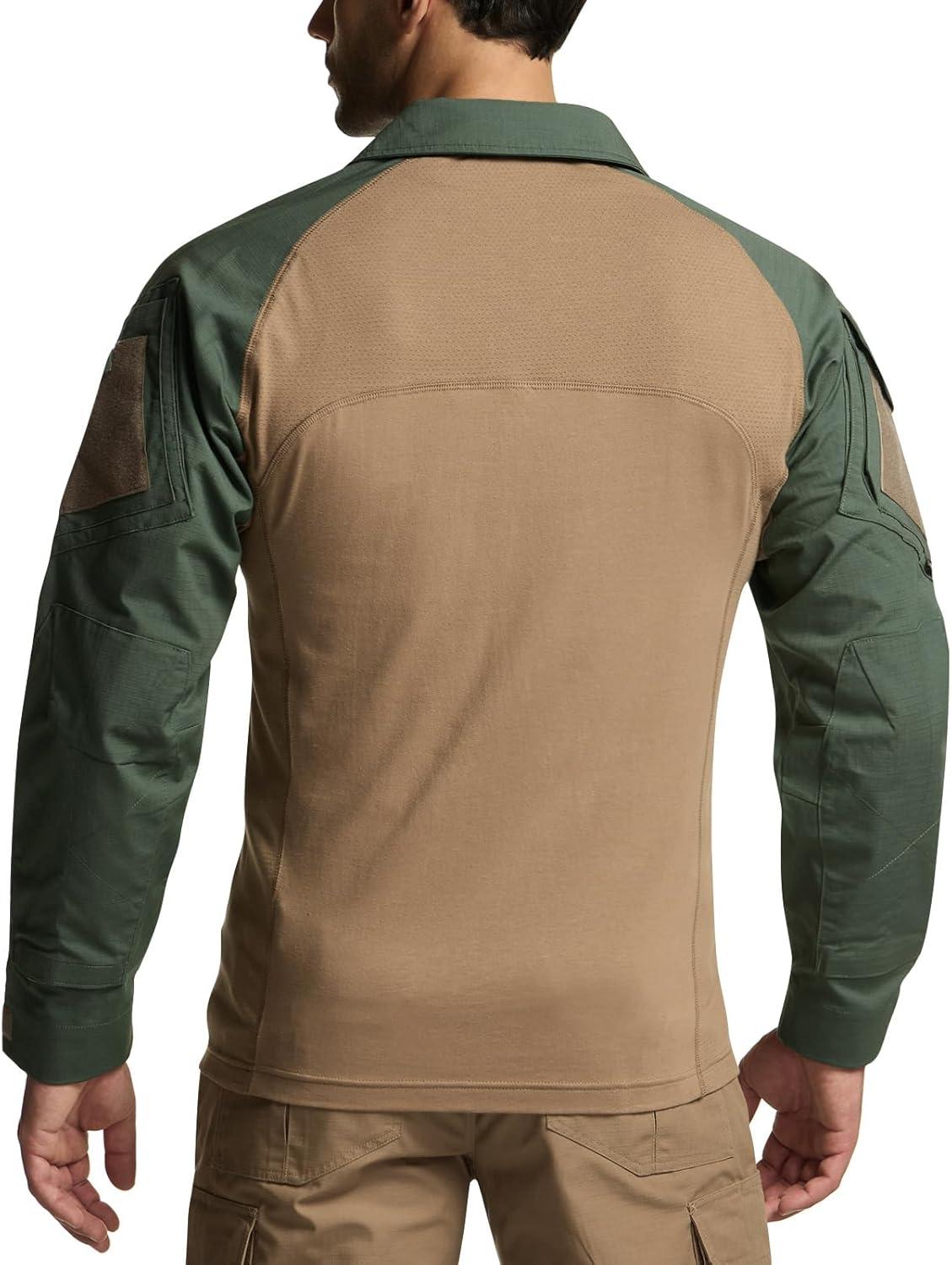 CQR Men’s Combat Shirt Tactical 1/4 Zip Long Sleeve Military BDU Shirts Camo EDC Top with Pockets(Raider Pro Soil Green)