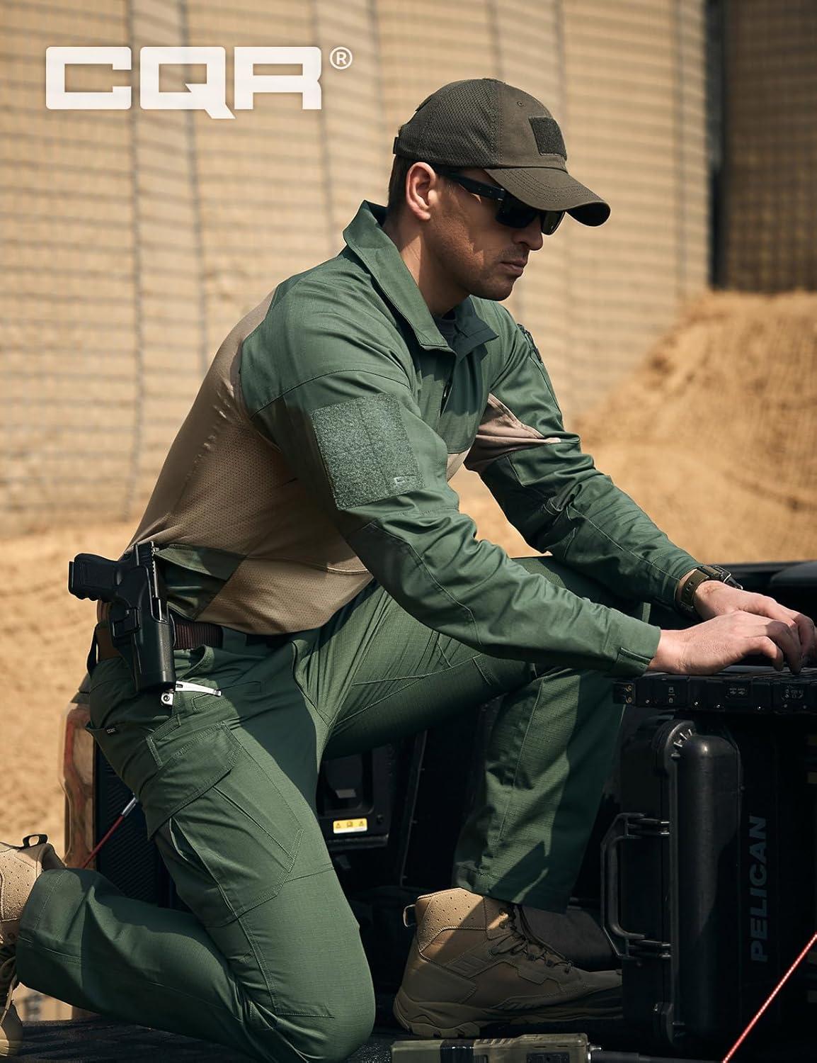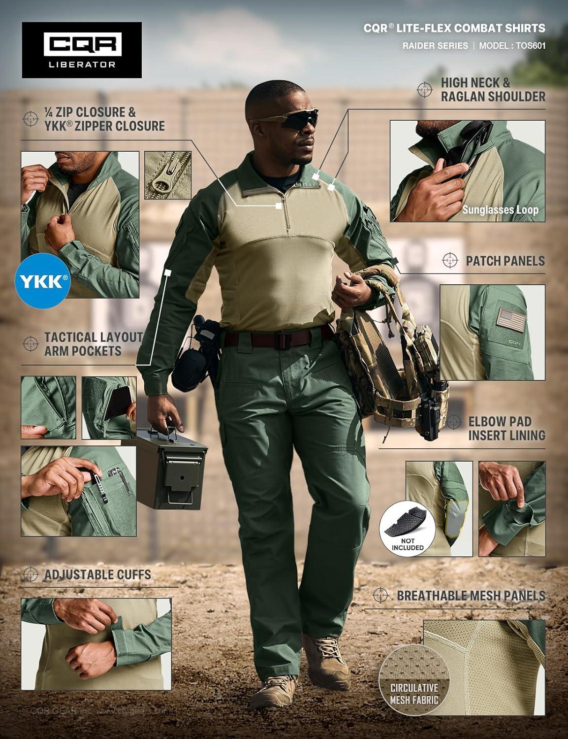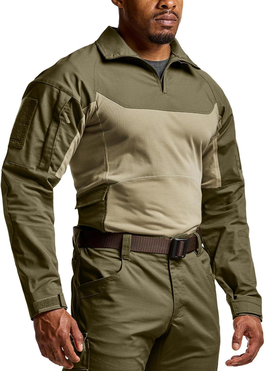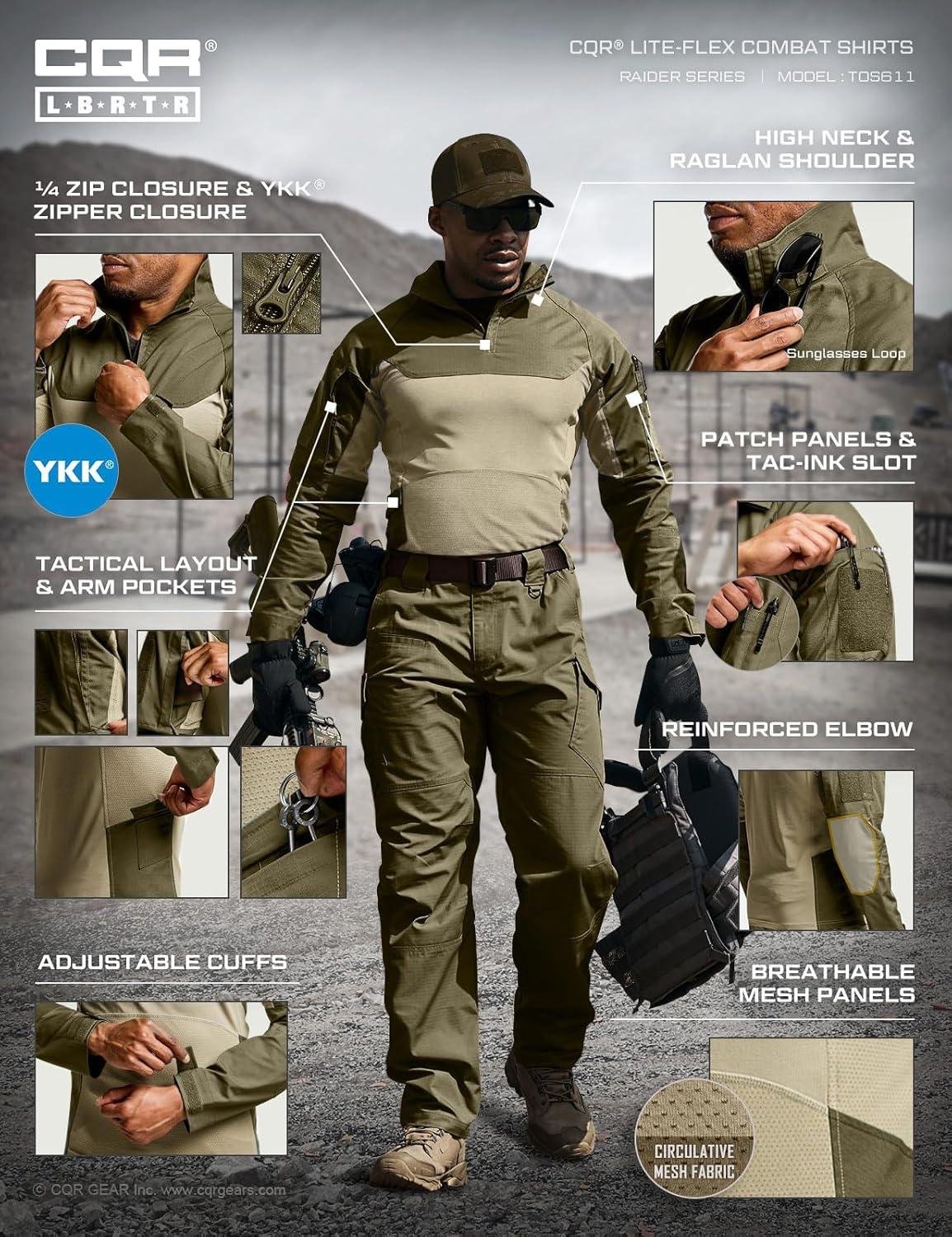 CQR Men’s Combat Shirt Tactical 1/4 Zip Long Sleeve Military BDU Shirts Camo EDC Top with Pockets(Raider Pro Soil Green)