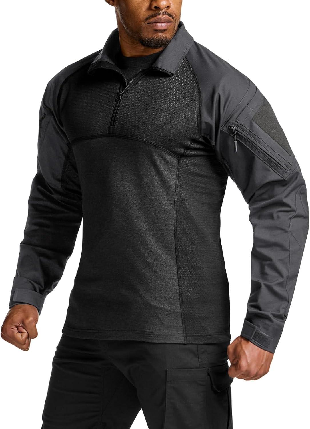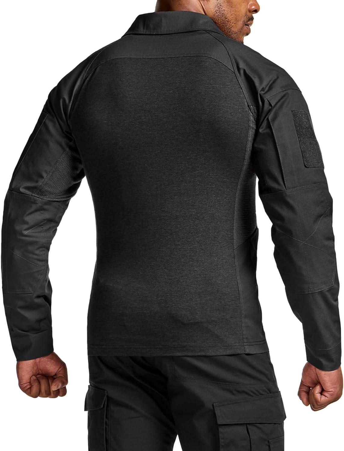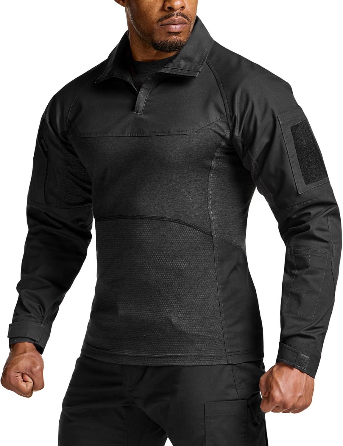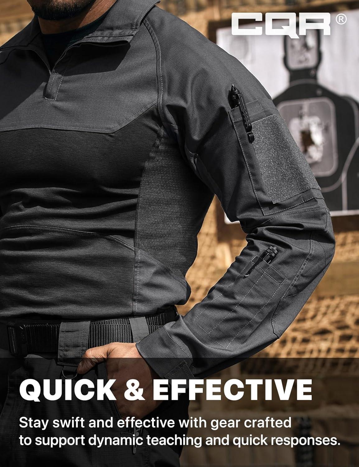 CQR Men’s Combat Shirt Tactical 1/4 Zip Long Sleeve Military BDU Shirts Camo EDC Top with Pockets(Raider Pro Black)