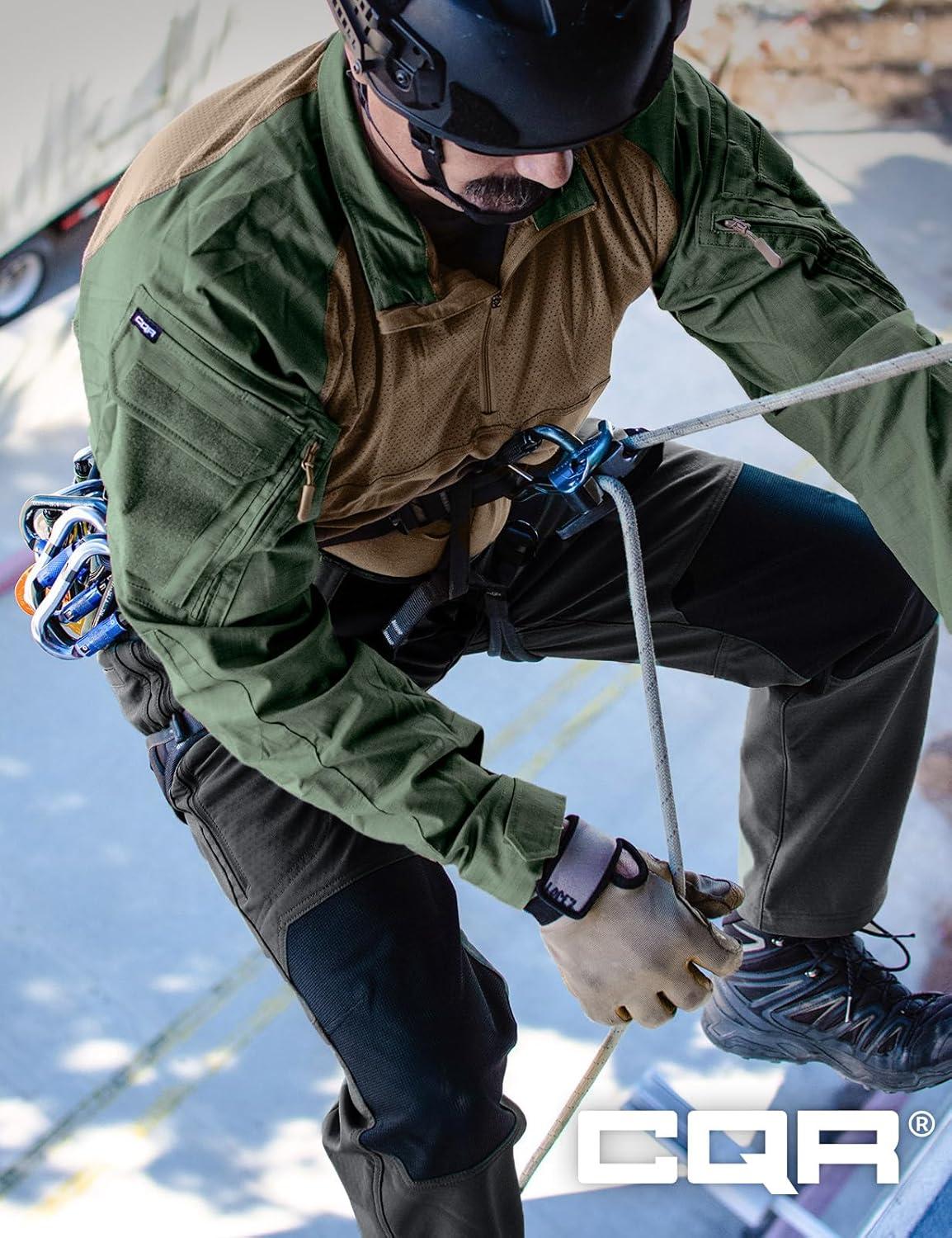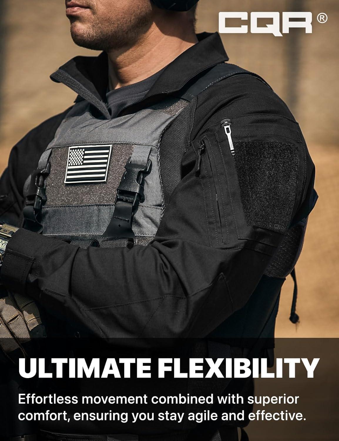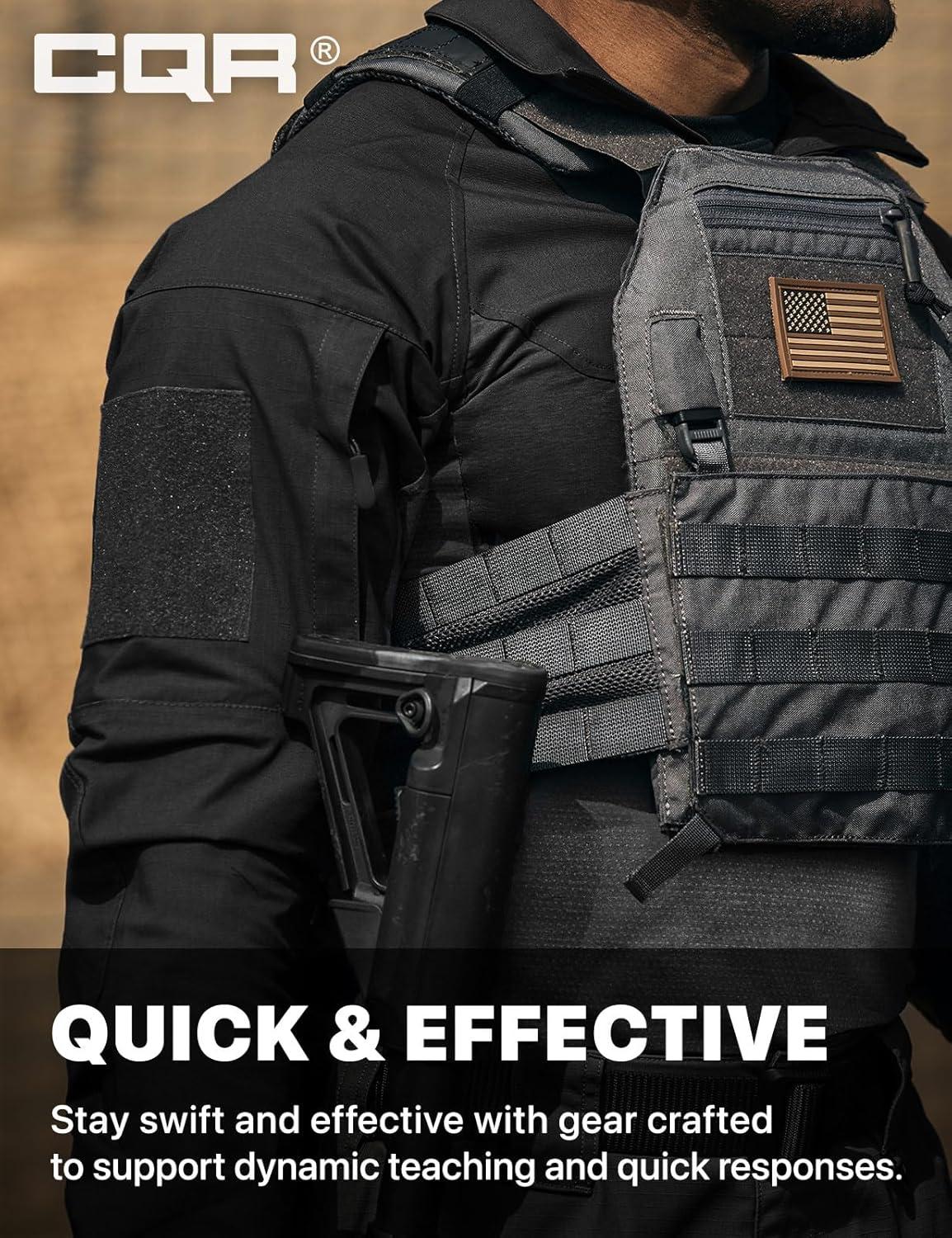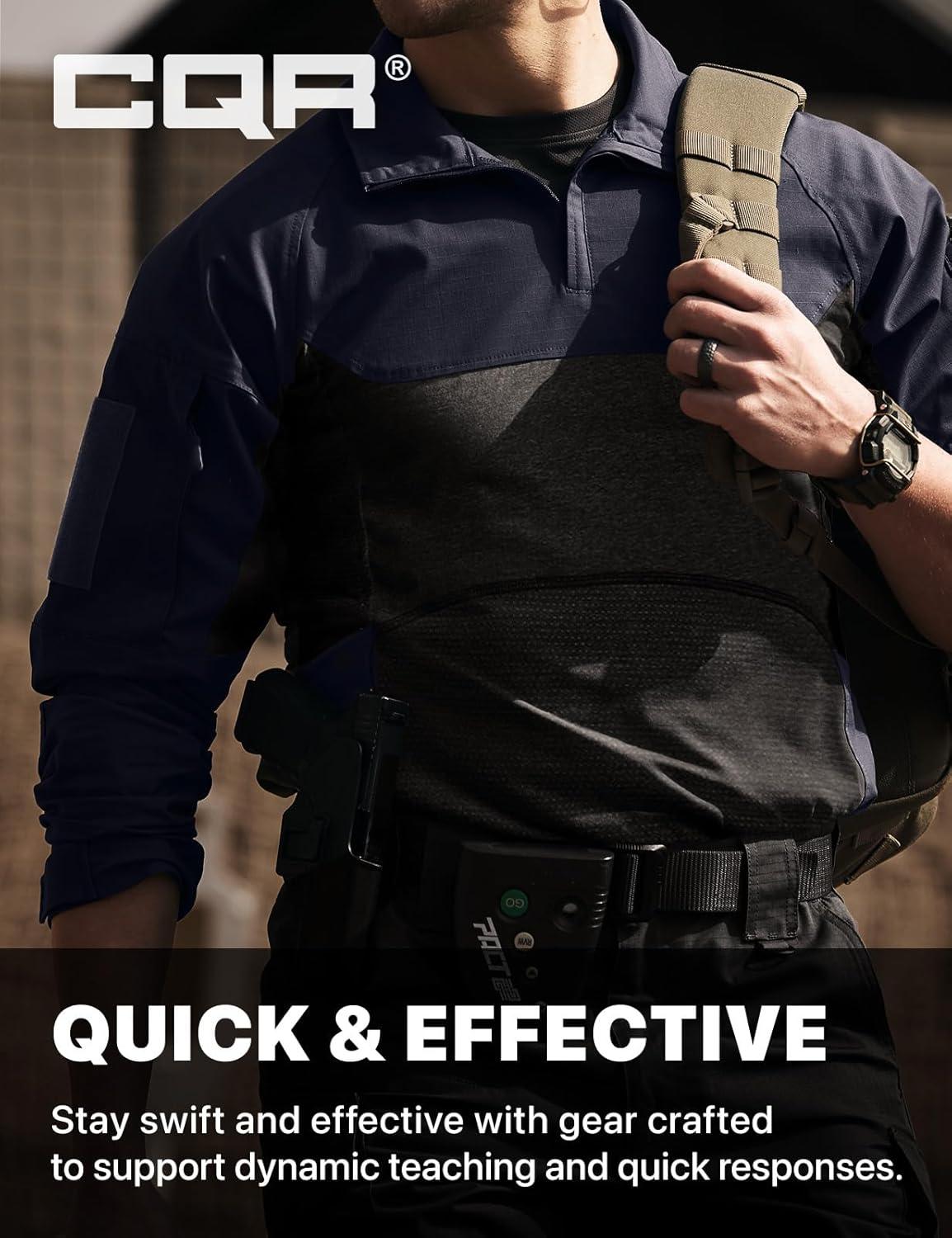 CQR Men’s Combat Shirt Tactical 1/4 Zip Long Sleeve Military BDU Shirts Camo EDC Top with Pockets(Raider Pro Black)