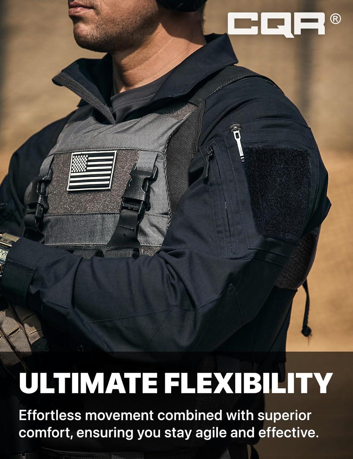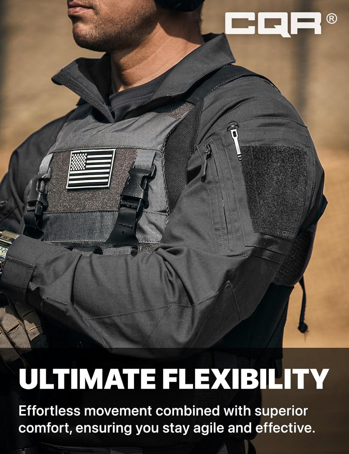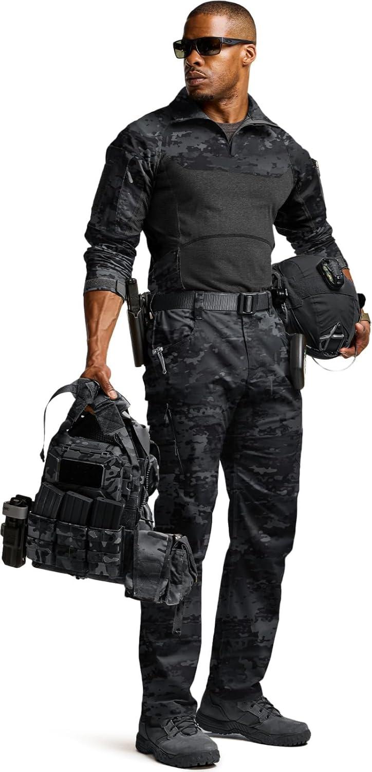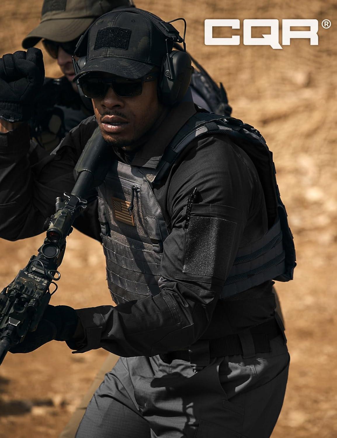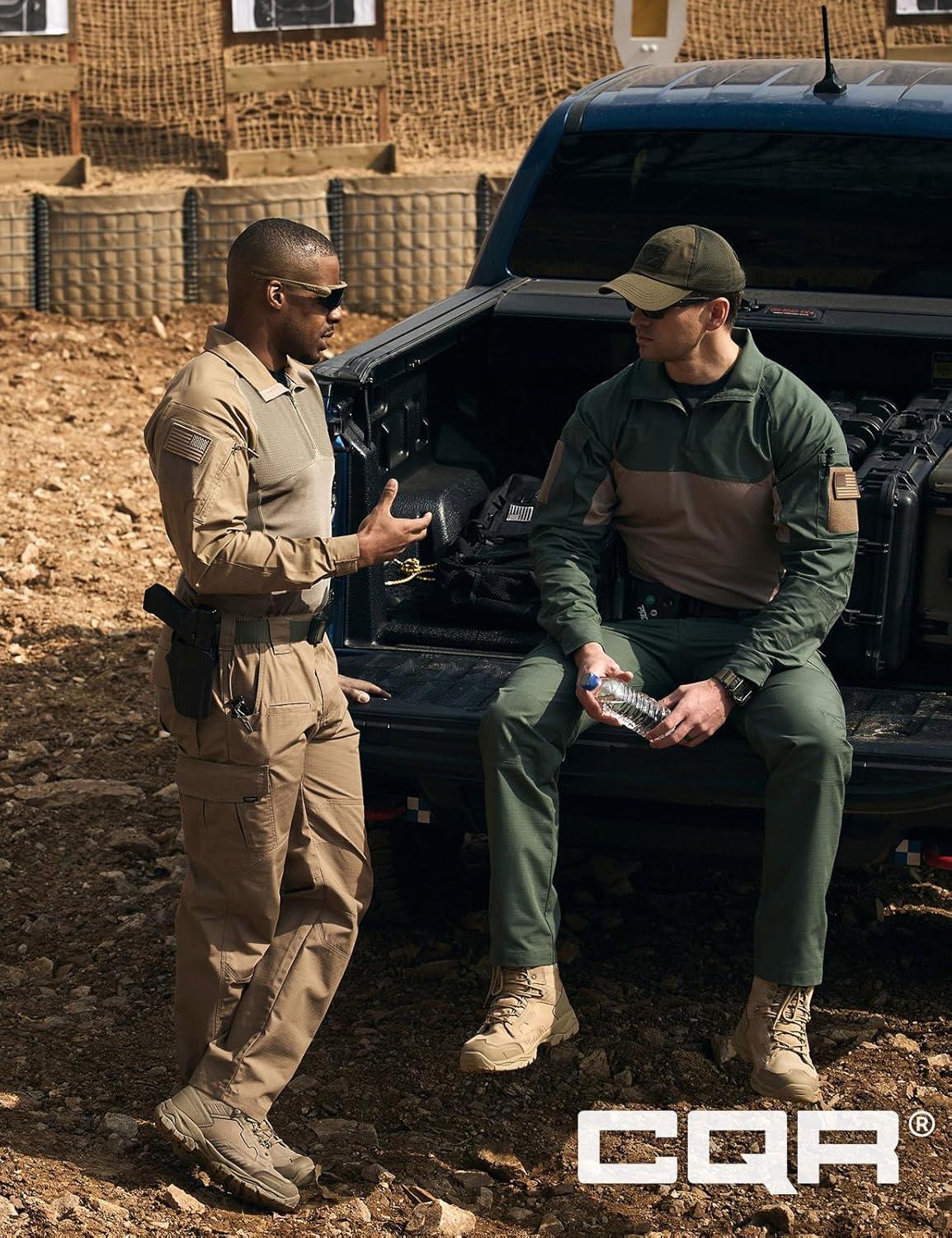 CQR Men’s Combat Shirt Tactical 1/4 Zip Long Sleeve Military BDU Shirts Camo EDC Top with Pockets(Raider Pro Black)