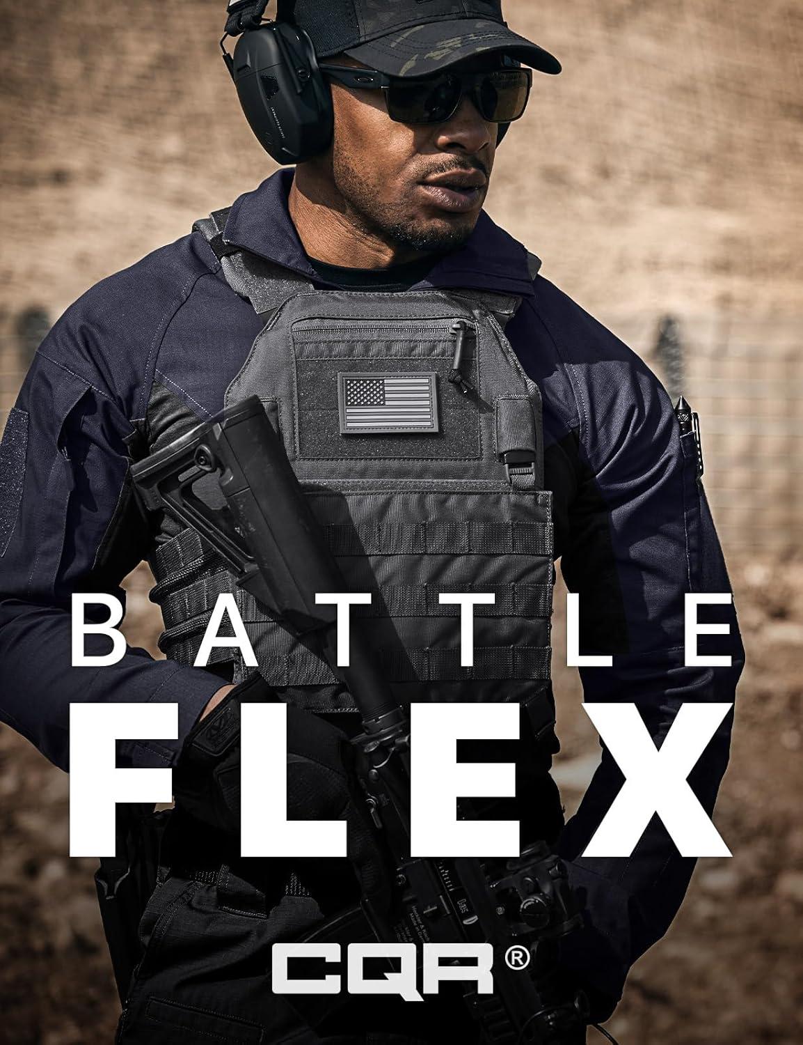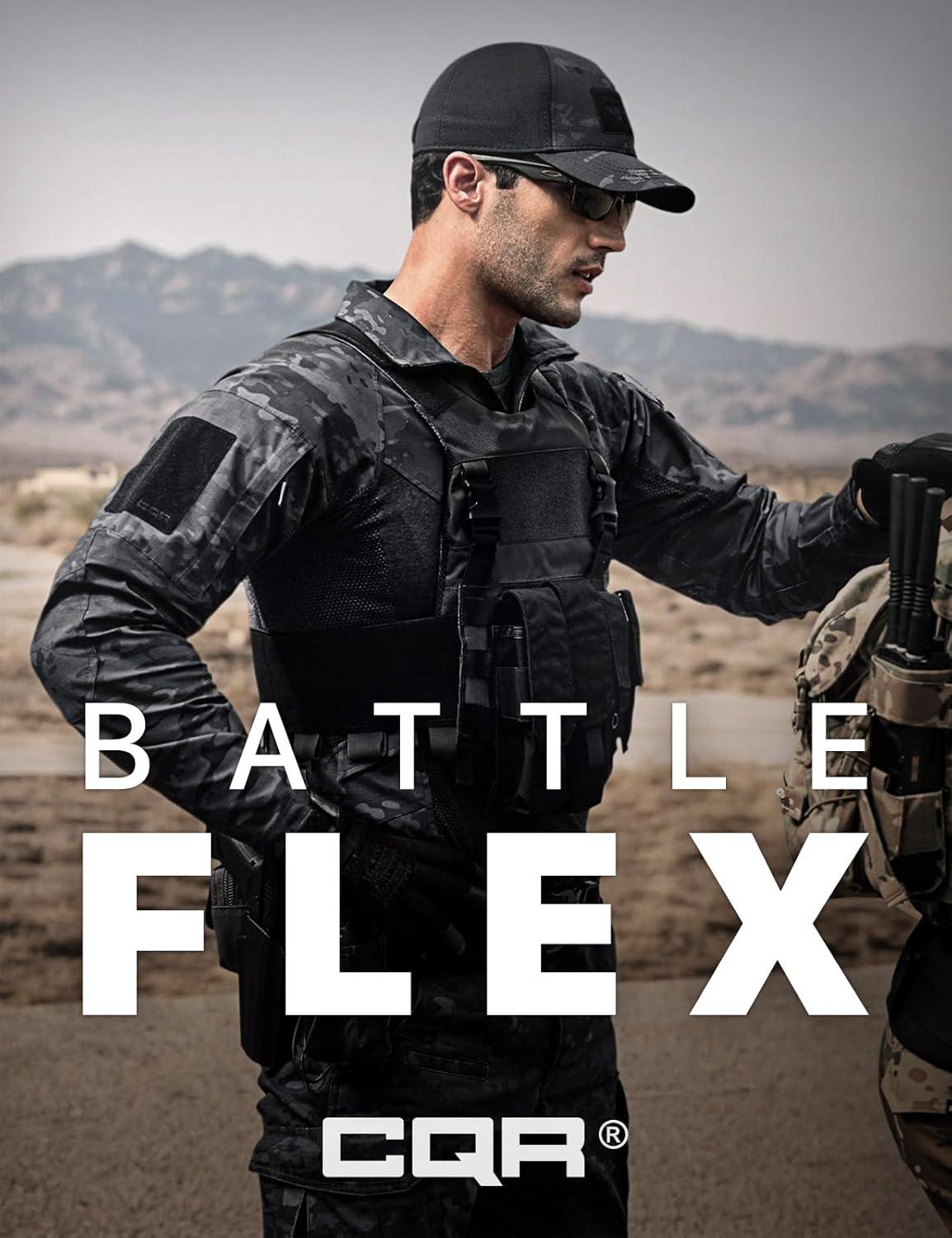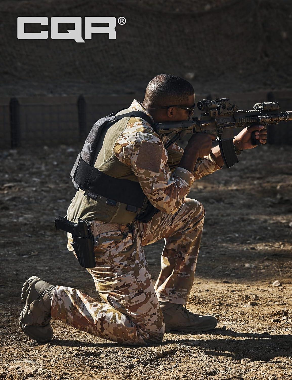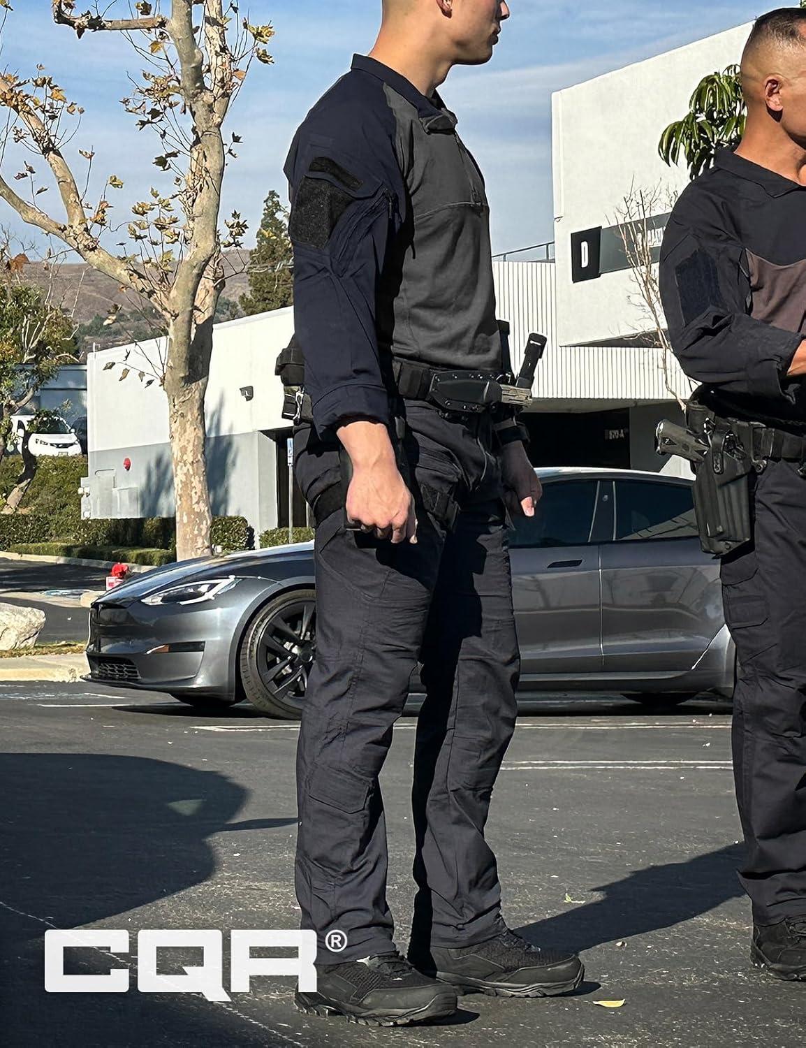 CQR Men’s Combat Shirt Tactical 1/4 Zip Long Sleeve Military BDU Shirts Camo EDC Top with Pockets(Raider Pro Black)