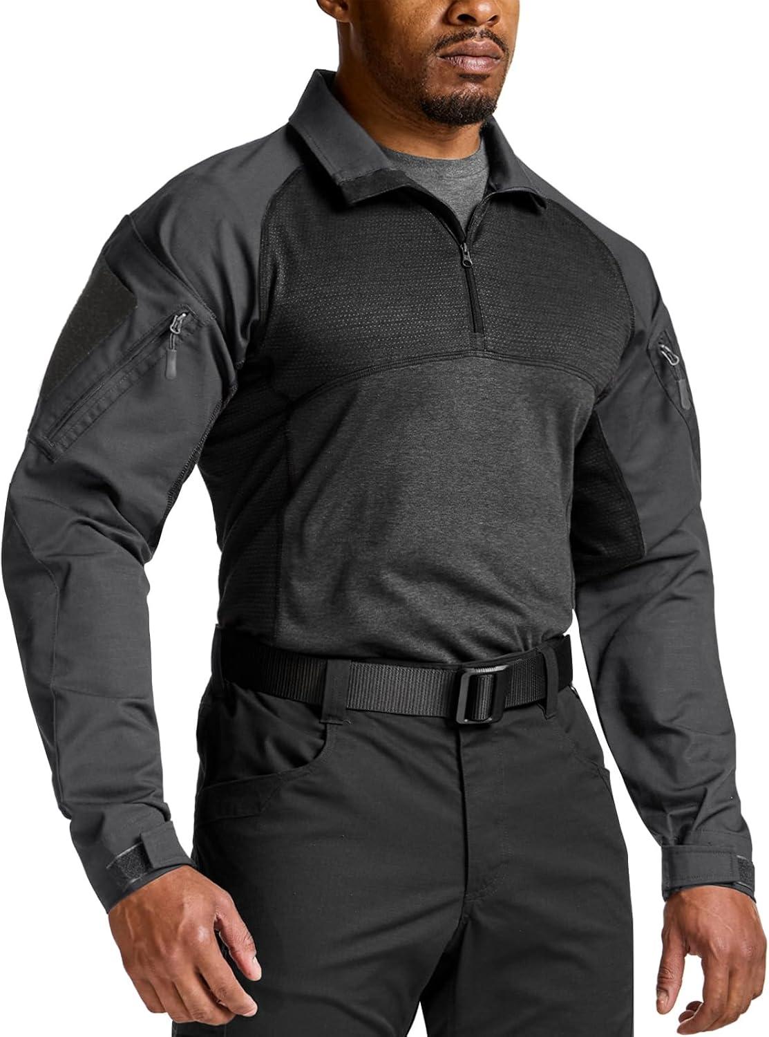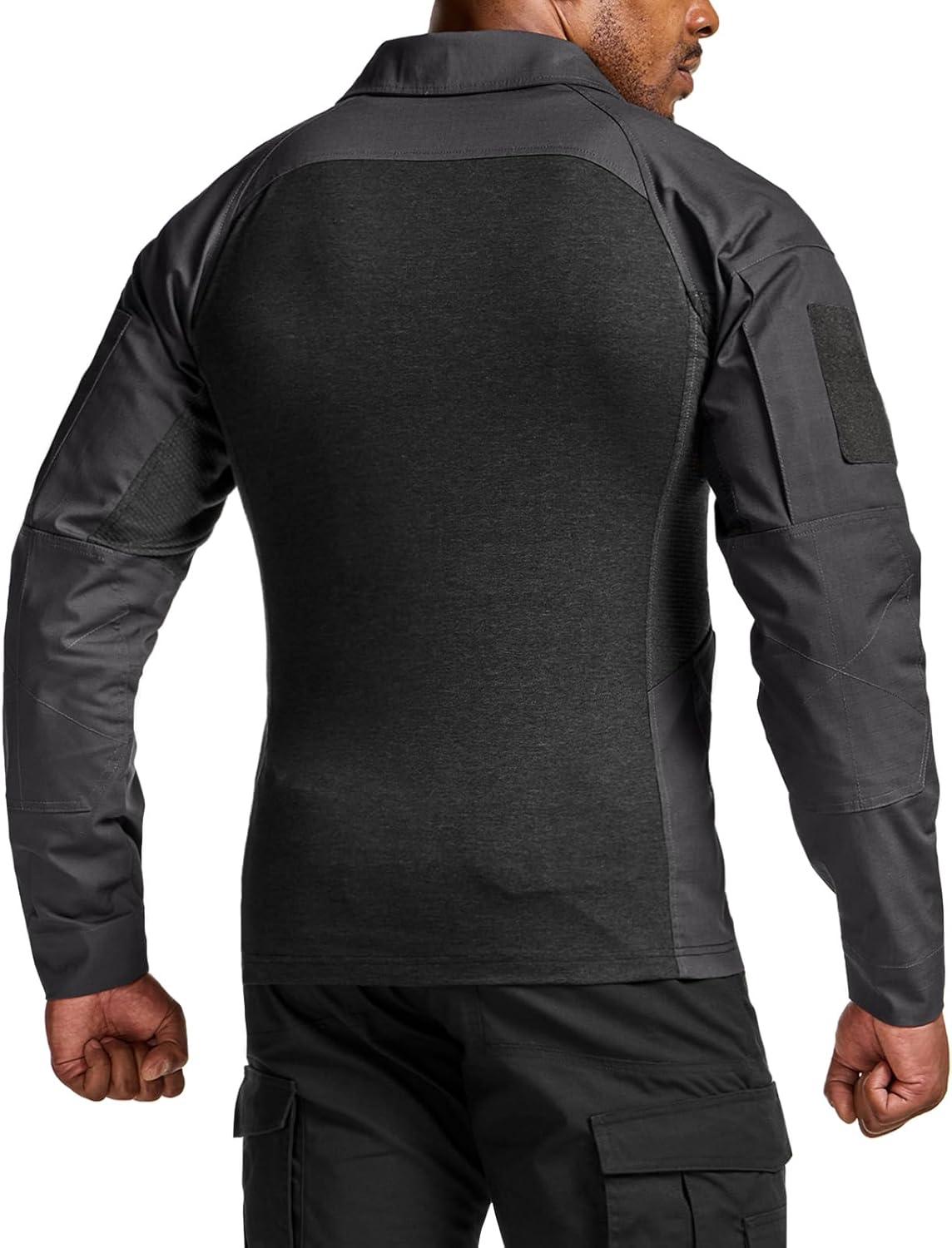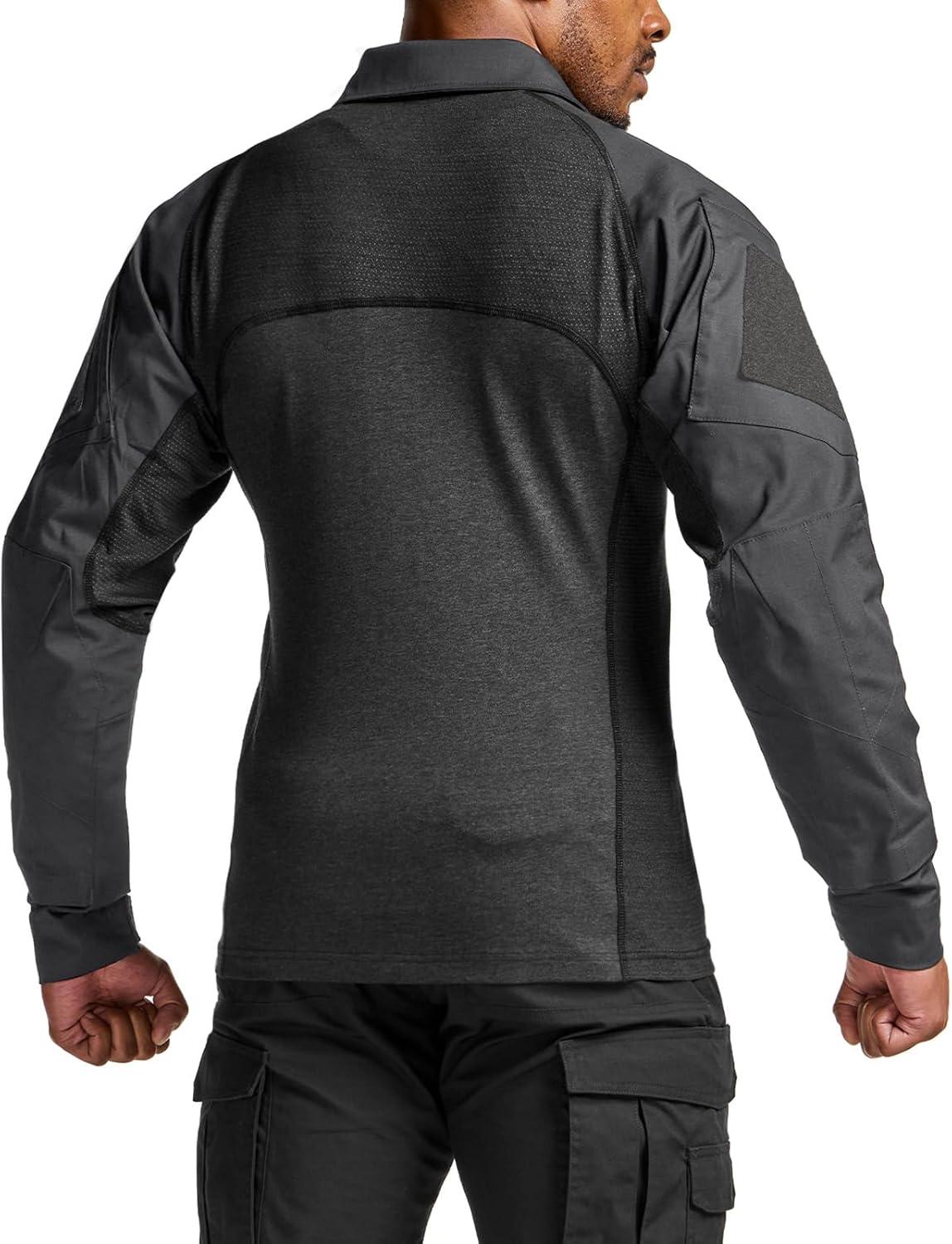 CQR Men’s Combat Shirt Tactical 1/4 Zip Long Sleeve Military BDU Shirts Camo EDC Top with Pockets(Raider Charcoal)