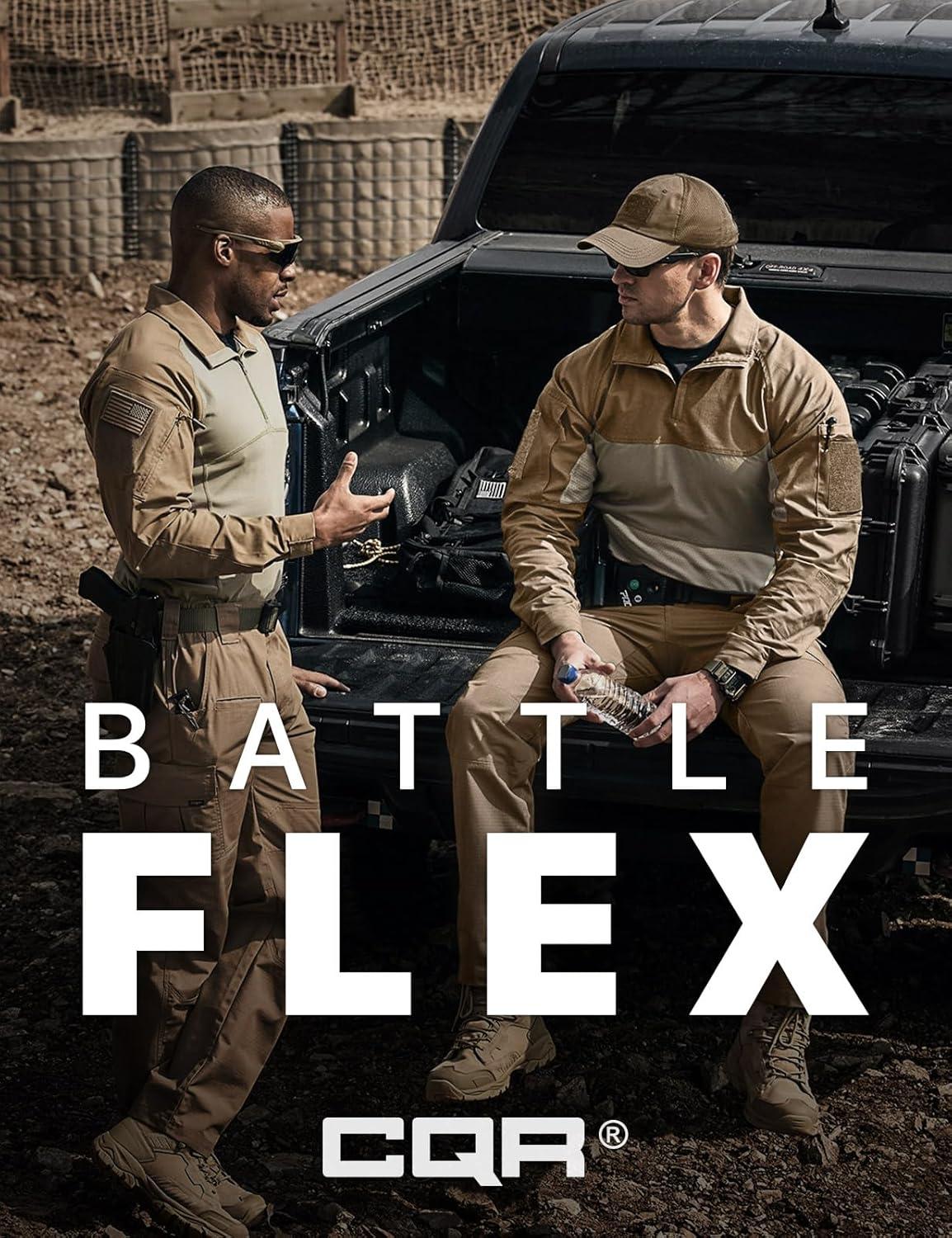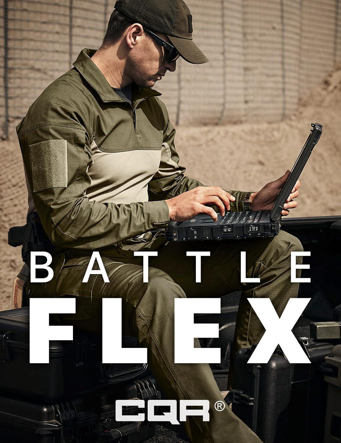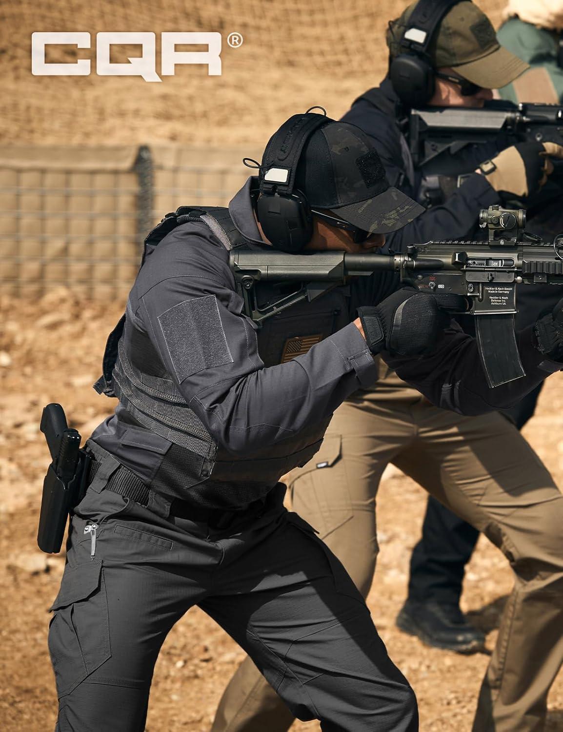 CQR Men’s Combat Shirt Tactical 1/4 Zip Long Sleeve Military BDU Shirts Camo EDC Top with Pockets(Raider Charcoal)