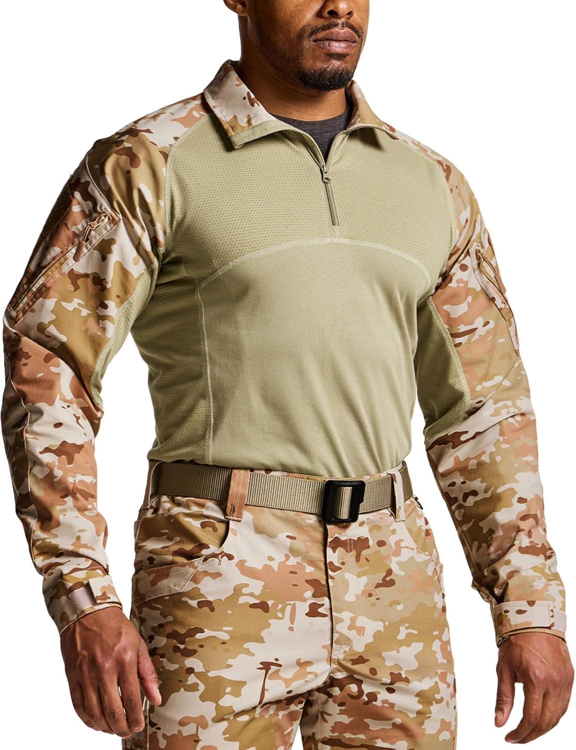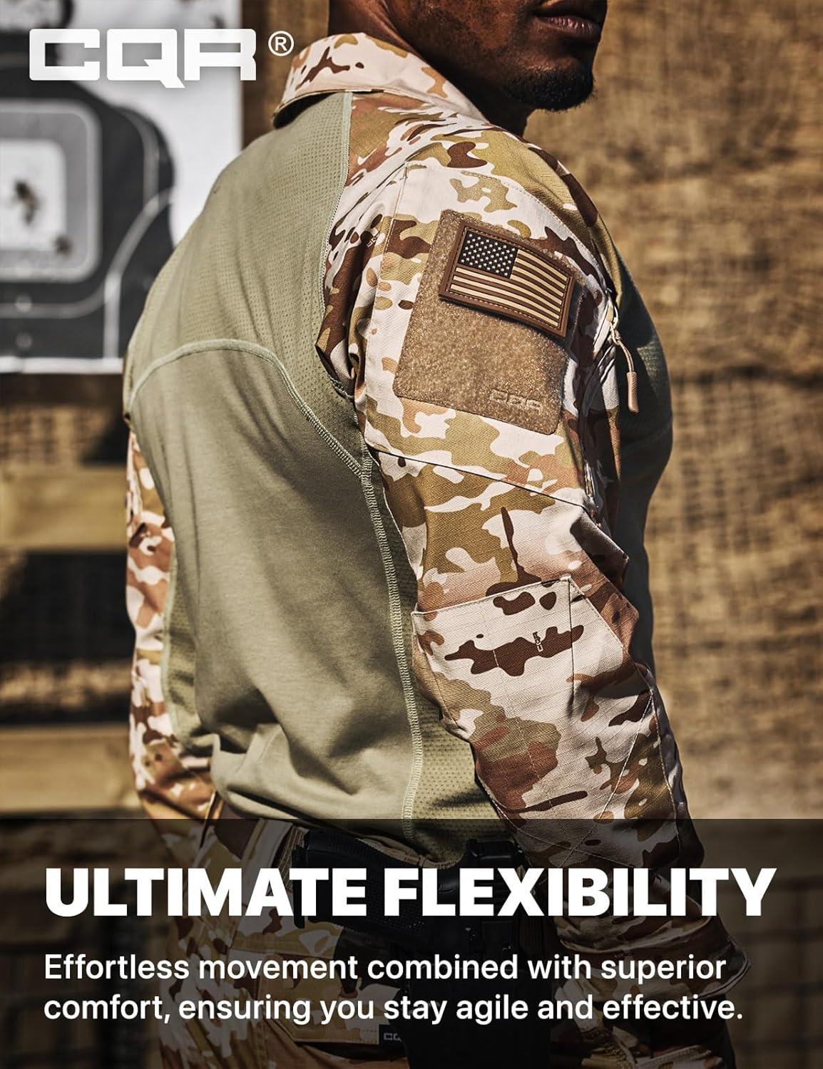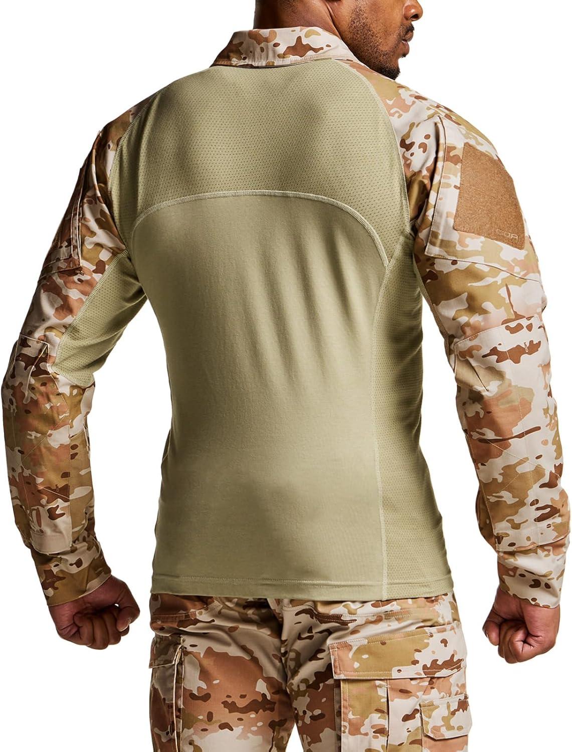 CQR Men’s Combat Shirt Tactical 1/4 Zip Long Sleeve Military BDU Shirts Camo EDC Top with Pockets(Raider Dune Camo)