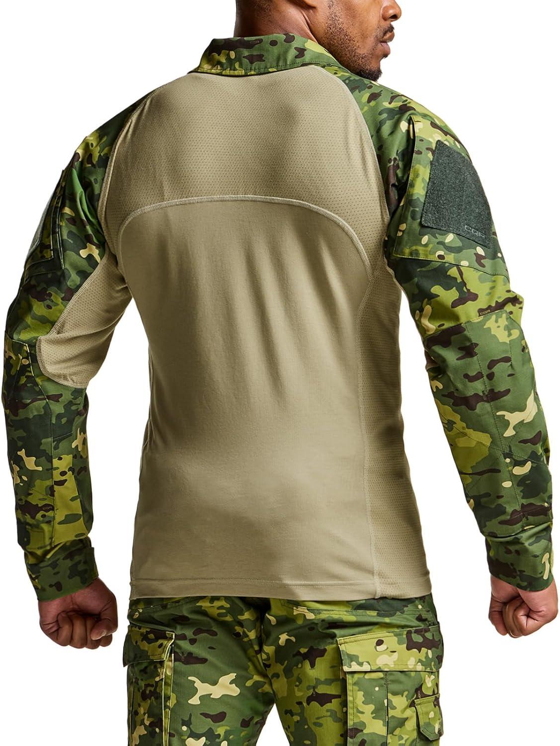 CQR Men’s Combat Shirt Tactical 1/4 Zip Long Sleeve Military BDU Shirts Camo EDC Top with Pockets(Military Print Shirts Hunting Camo)
