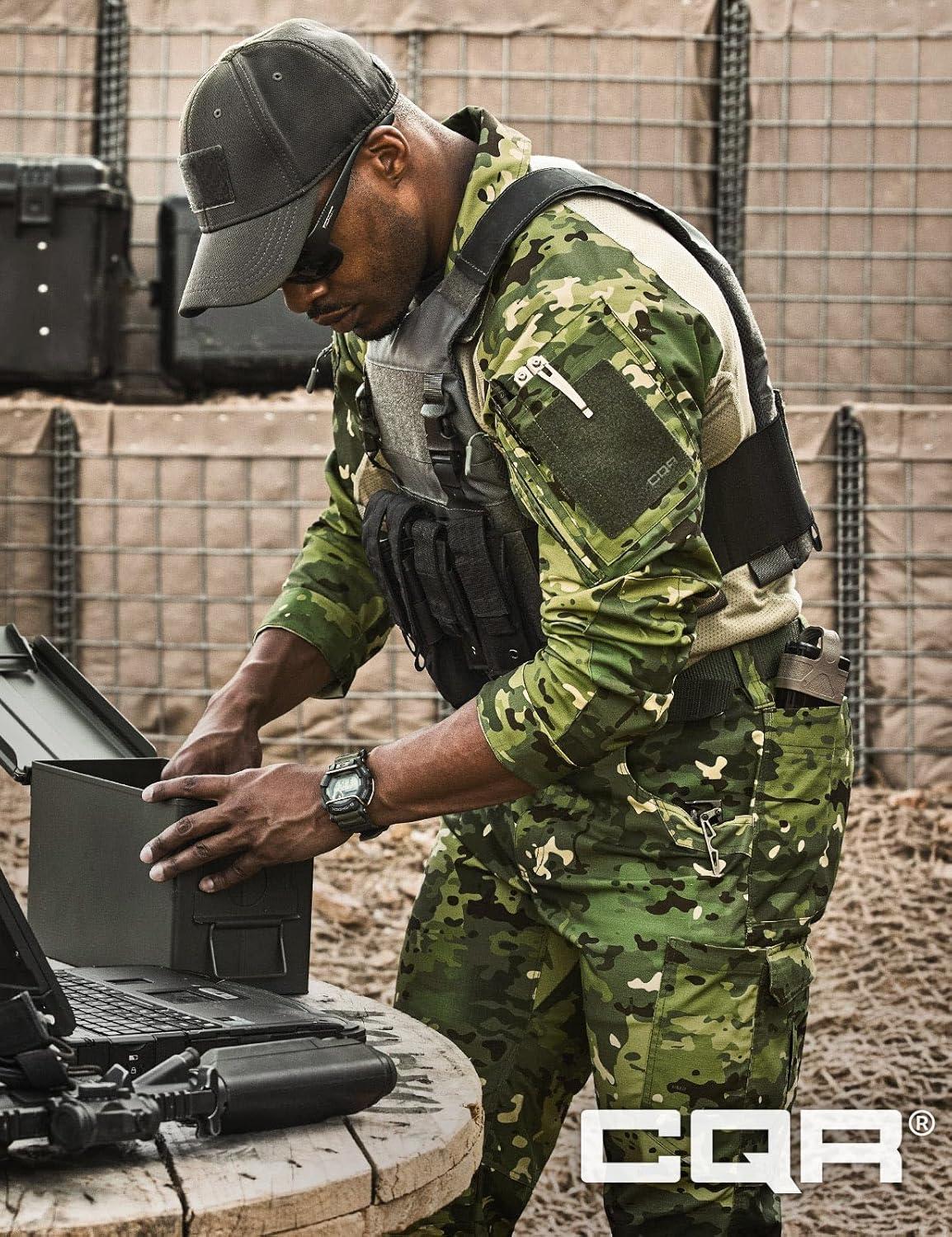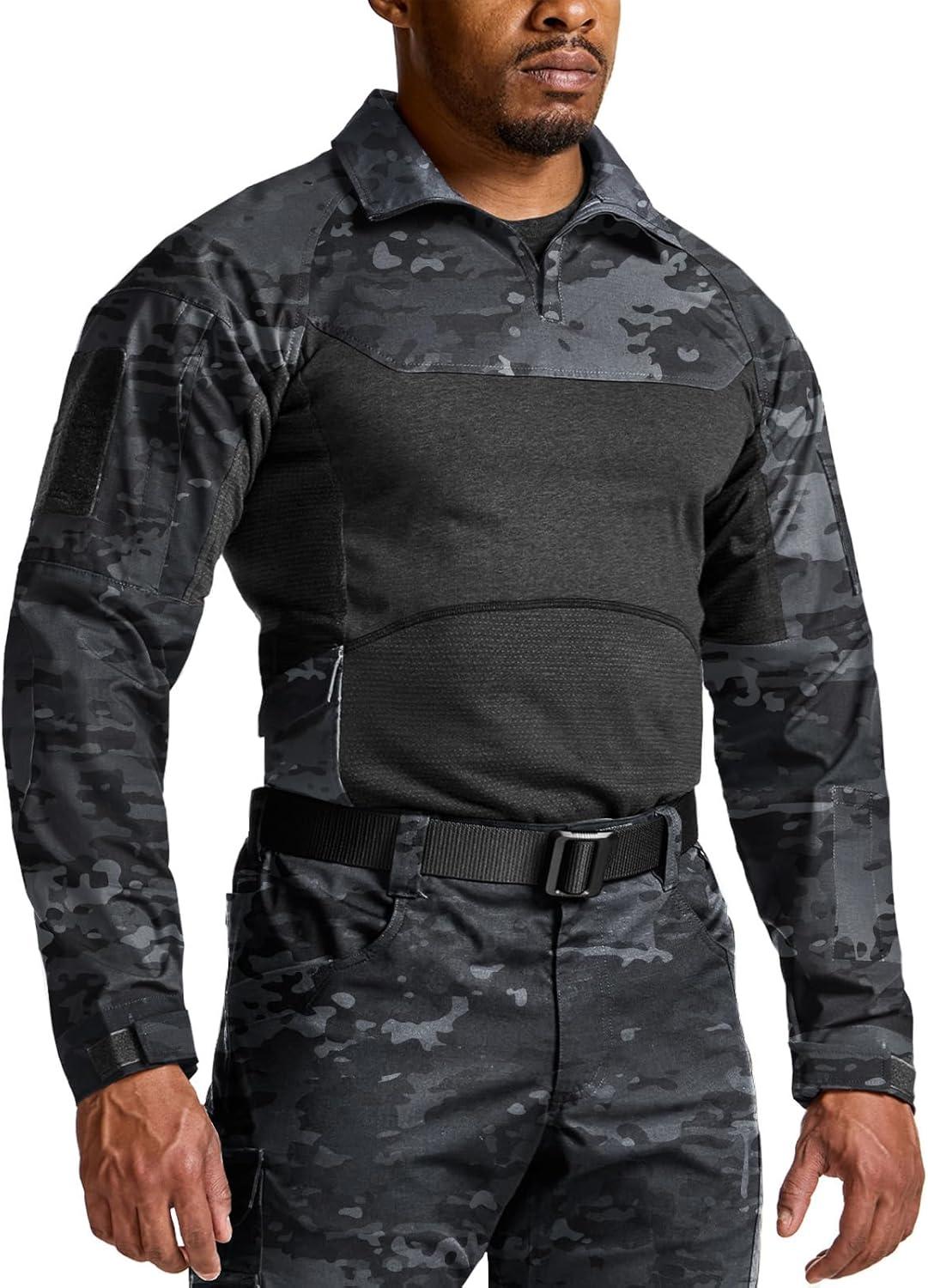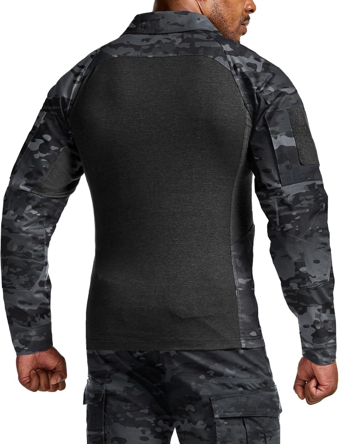 CQR Men’s Combat Shirt Tactical 1/4 Zip Long Sleeve Military BDU Shirts Camo EDC Top with Pockets(Raider Pro Utility Camo Black)