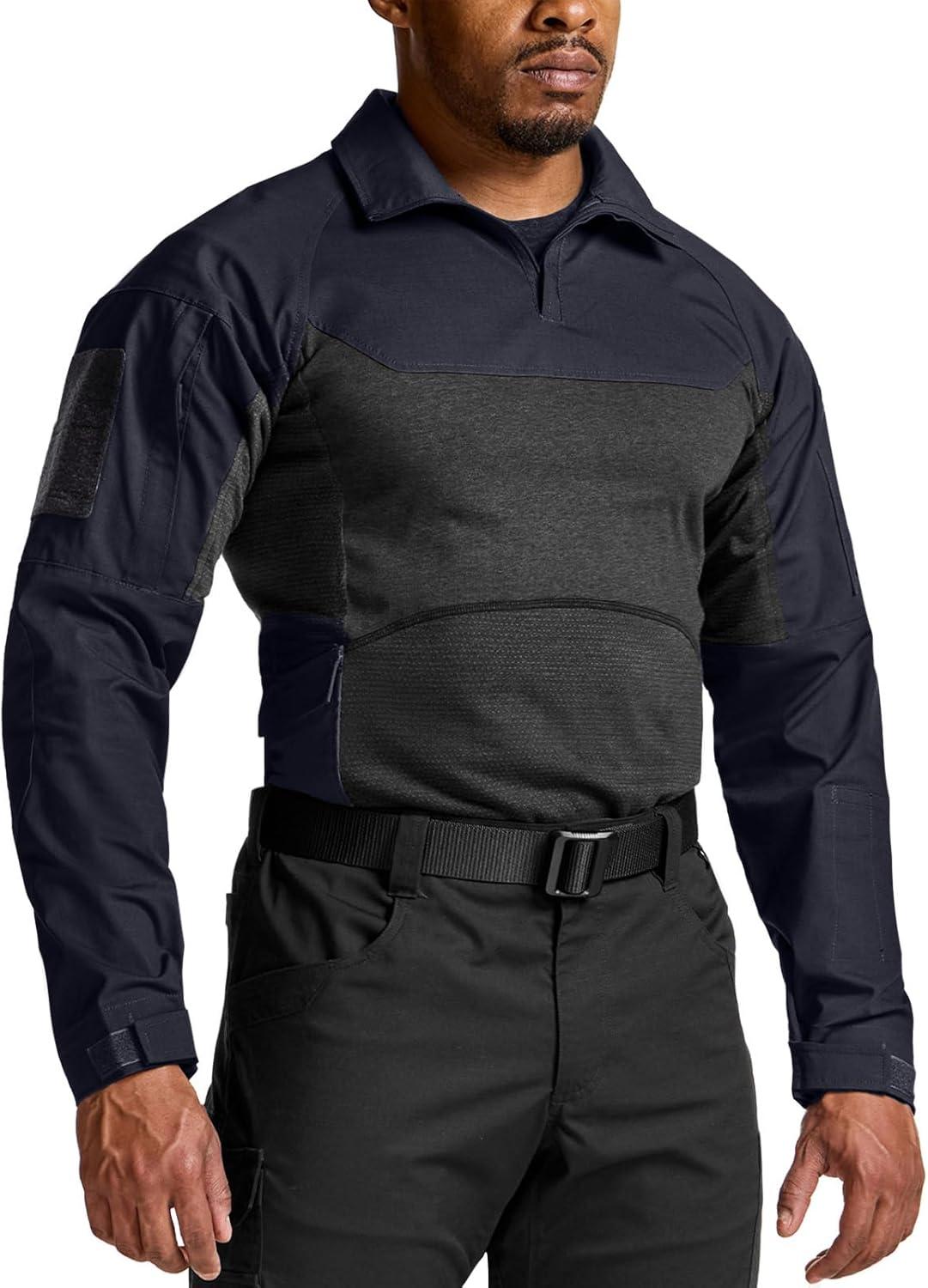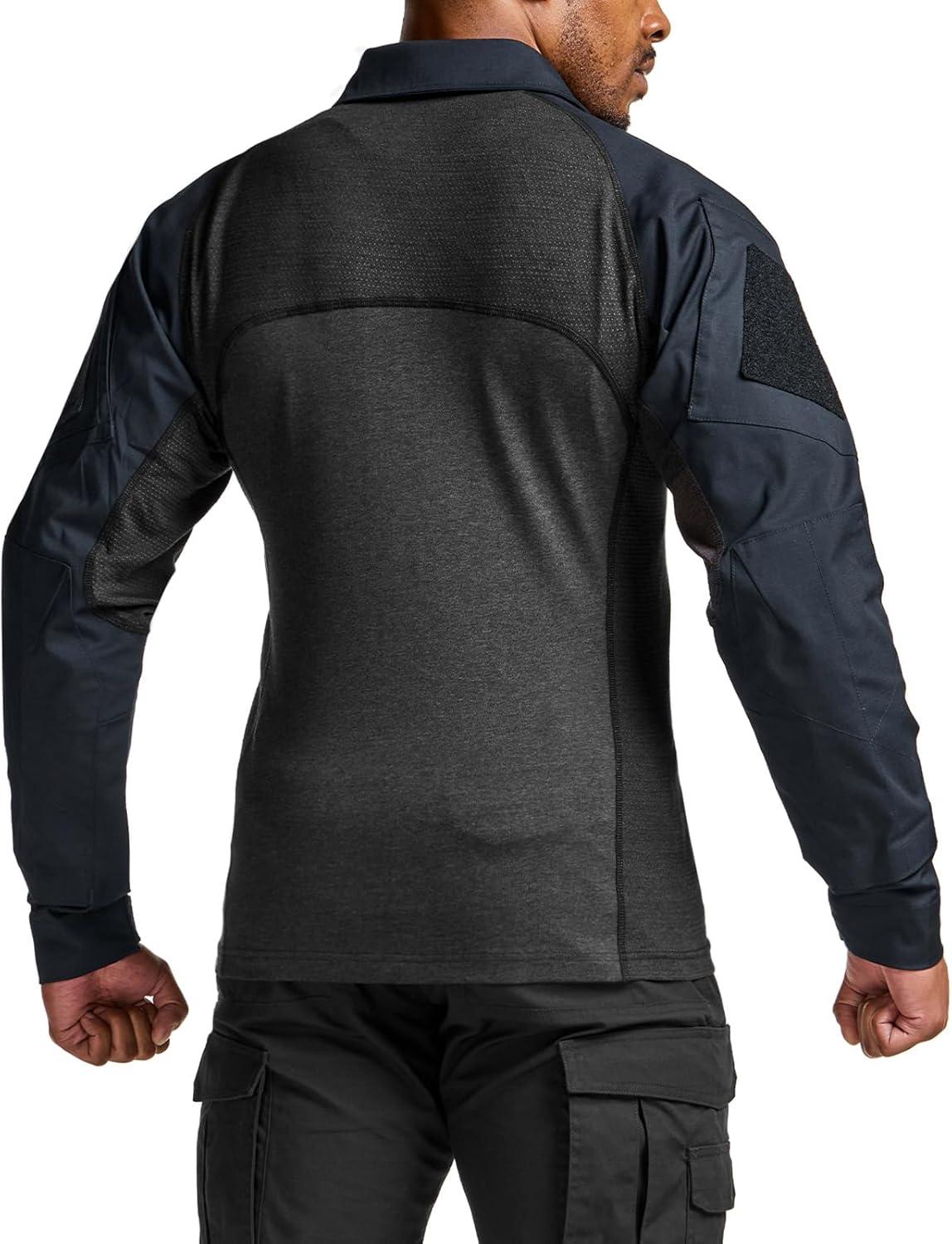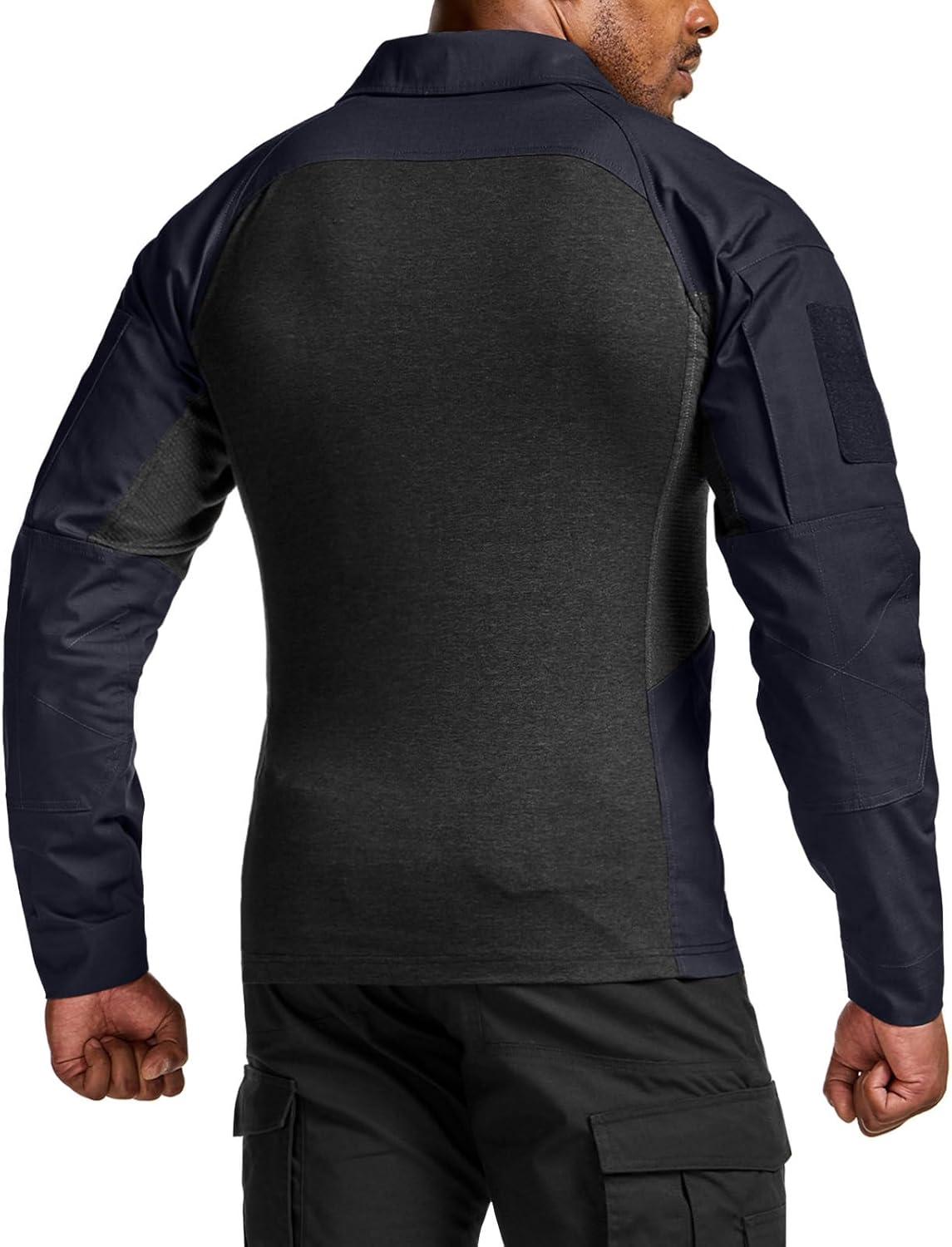 CQR Men’s Combat Shirt Tactical 1/4 Zip Long Sleeve Military BDU Shirts Camo EDC Top with Pockets(Raider Operator Navy)