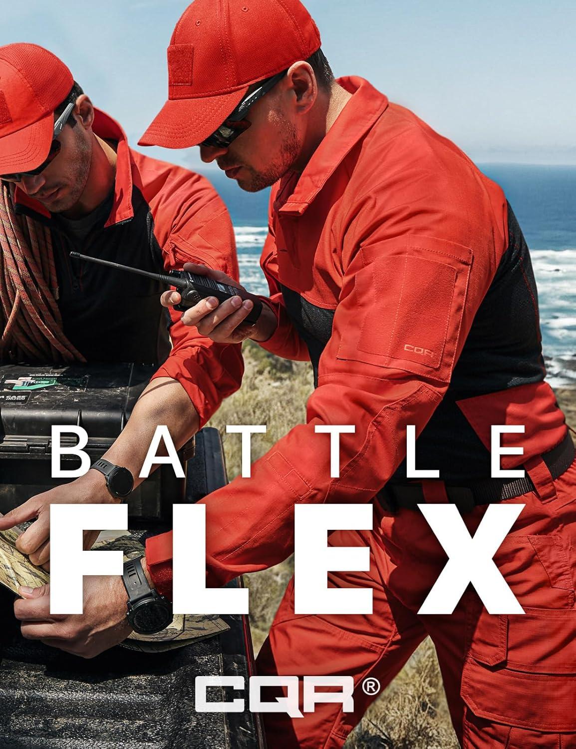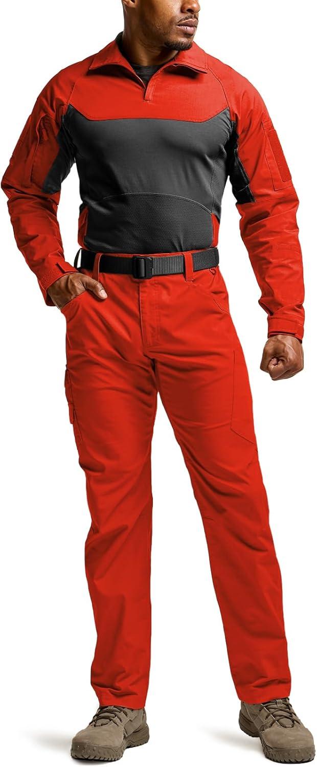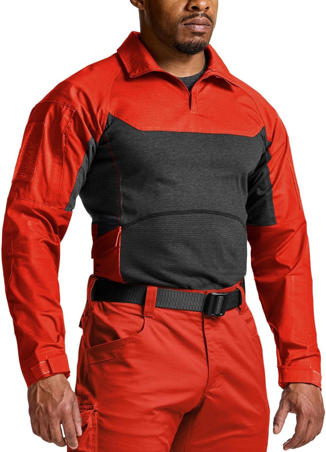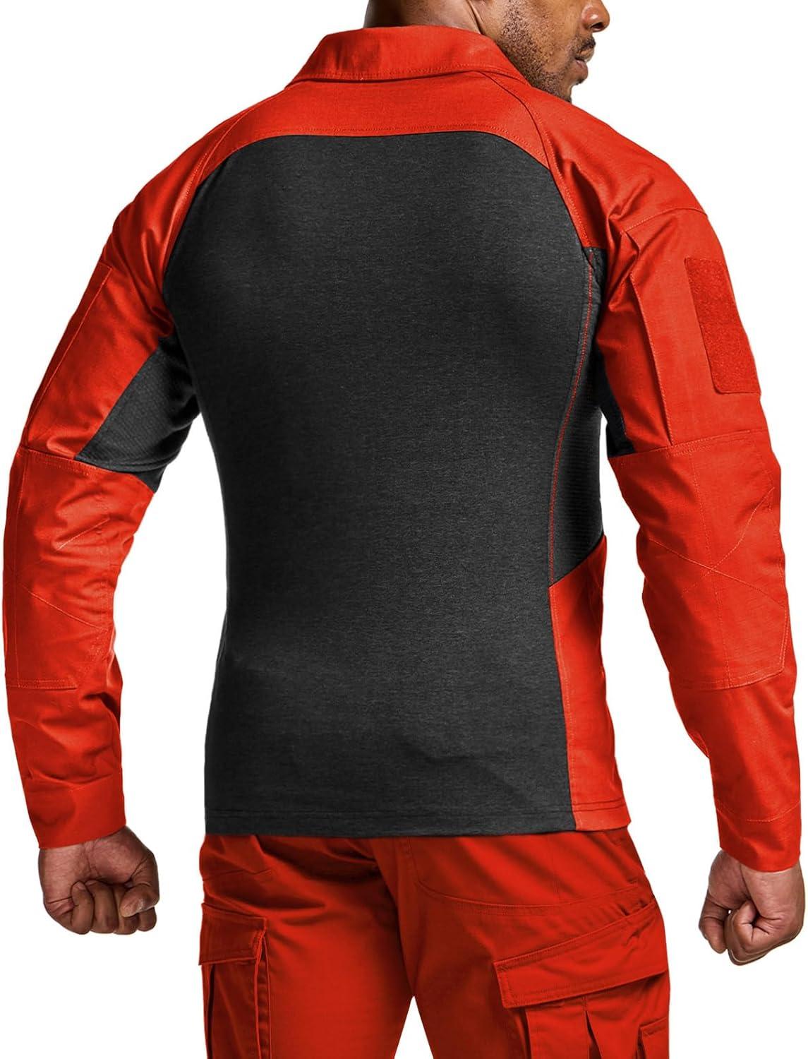 CQR Men’s Combat Shirt Tactical 1/4 Zip Long Sleeve Military BDU Shirts Camo EDC Top with Pockets(Raider Pro Rescue Orange)