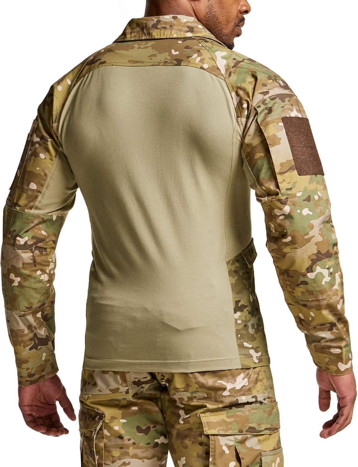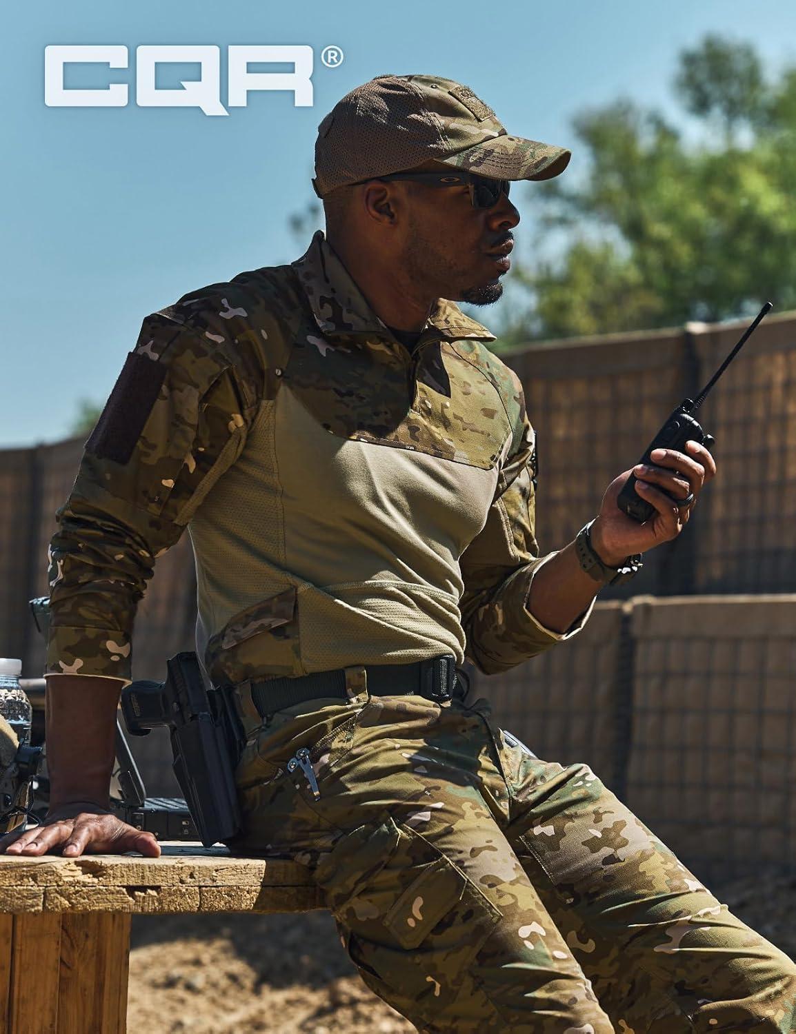 CQR Men’s Combat Shirt Tactical 1/4 Zip Long Sleeve Military BDU Shirts Camo EDC Top with Pockets(Raider Pro Utility Camo)