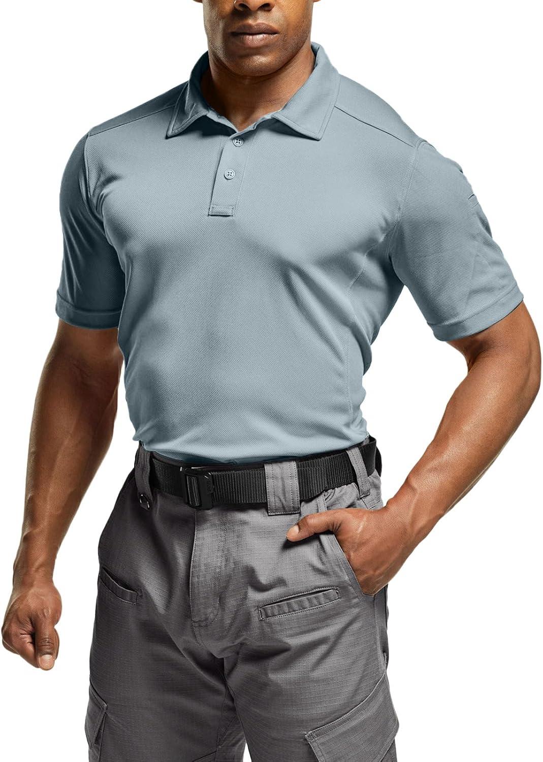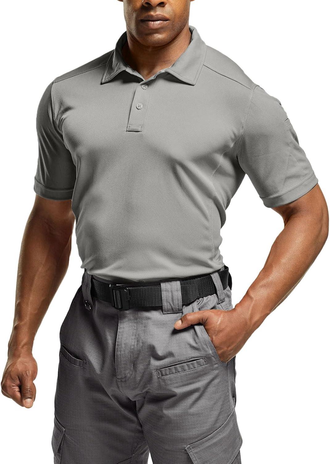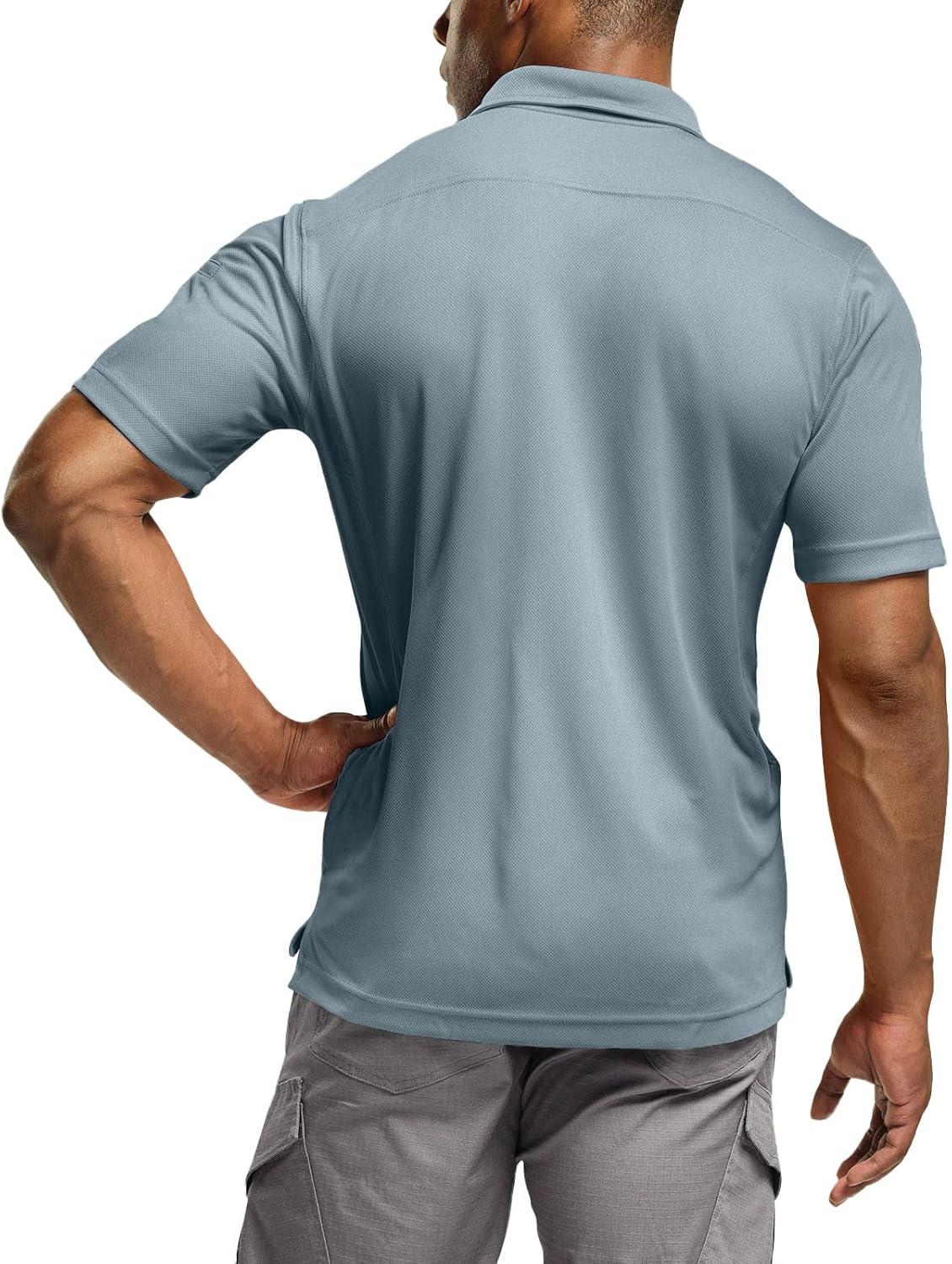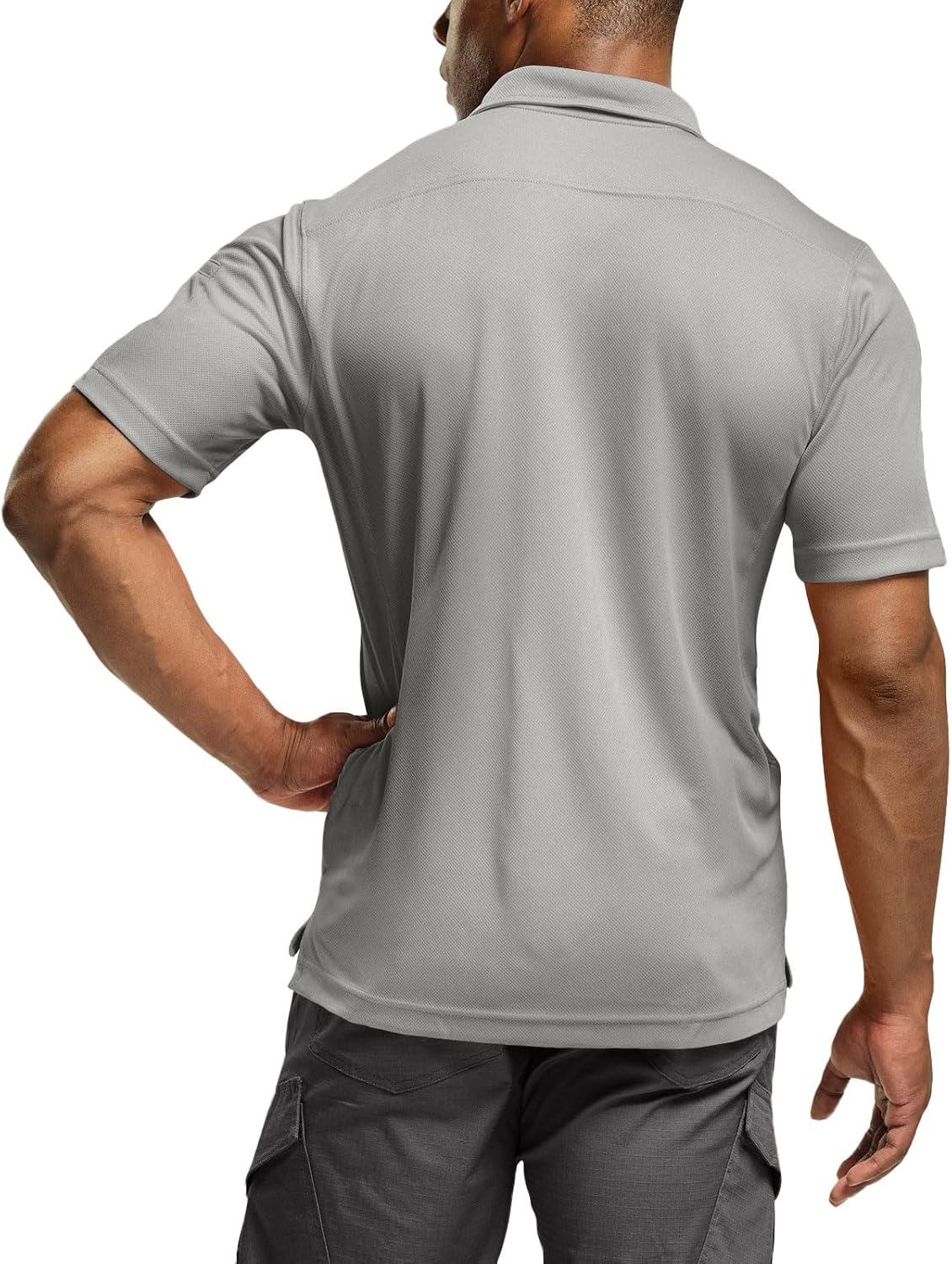 CQR Men’s Polo Shirts, Tactical Short Sleeve Golf Performance Shirts, Lightweight Dry Fit UPF 50+ Pique(Commander Light Grey)