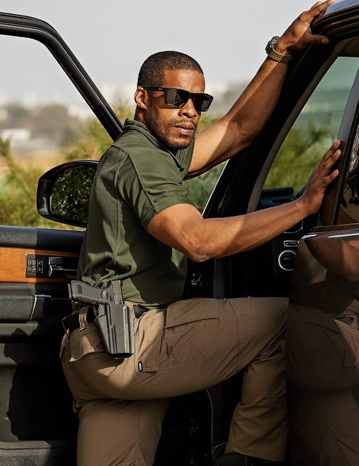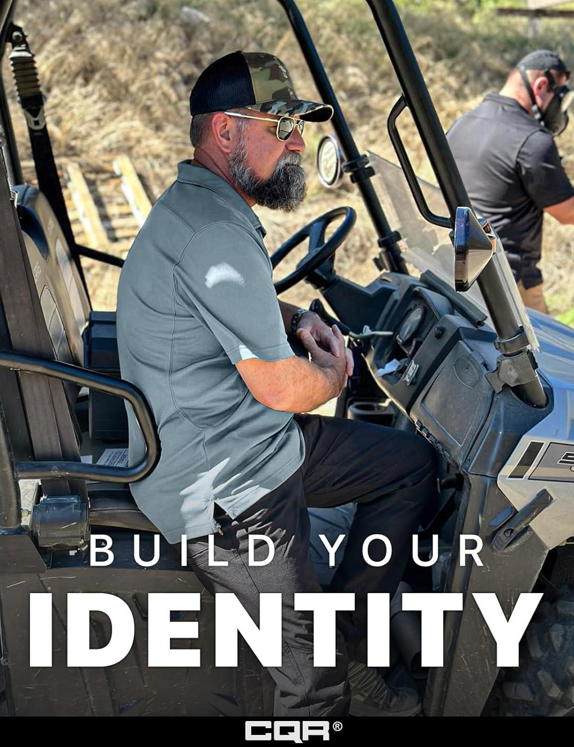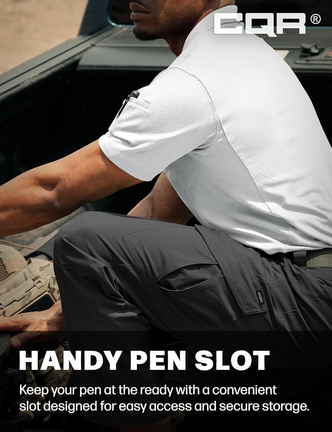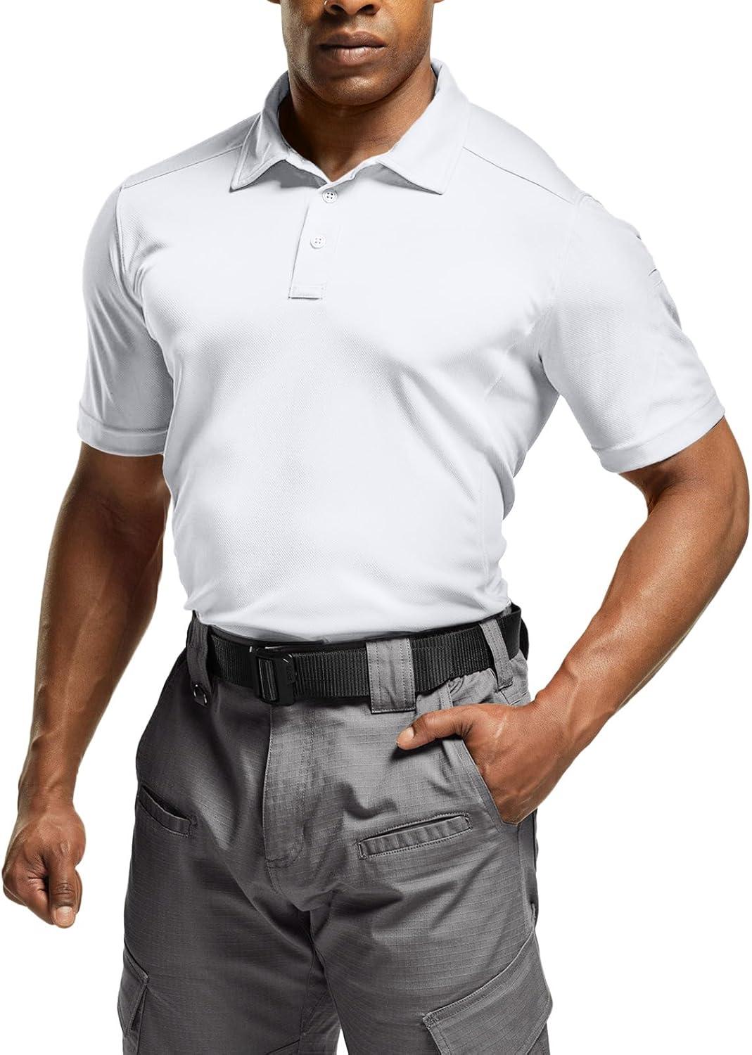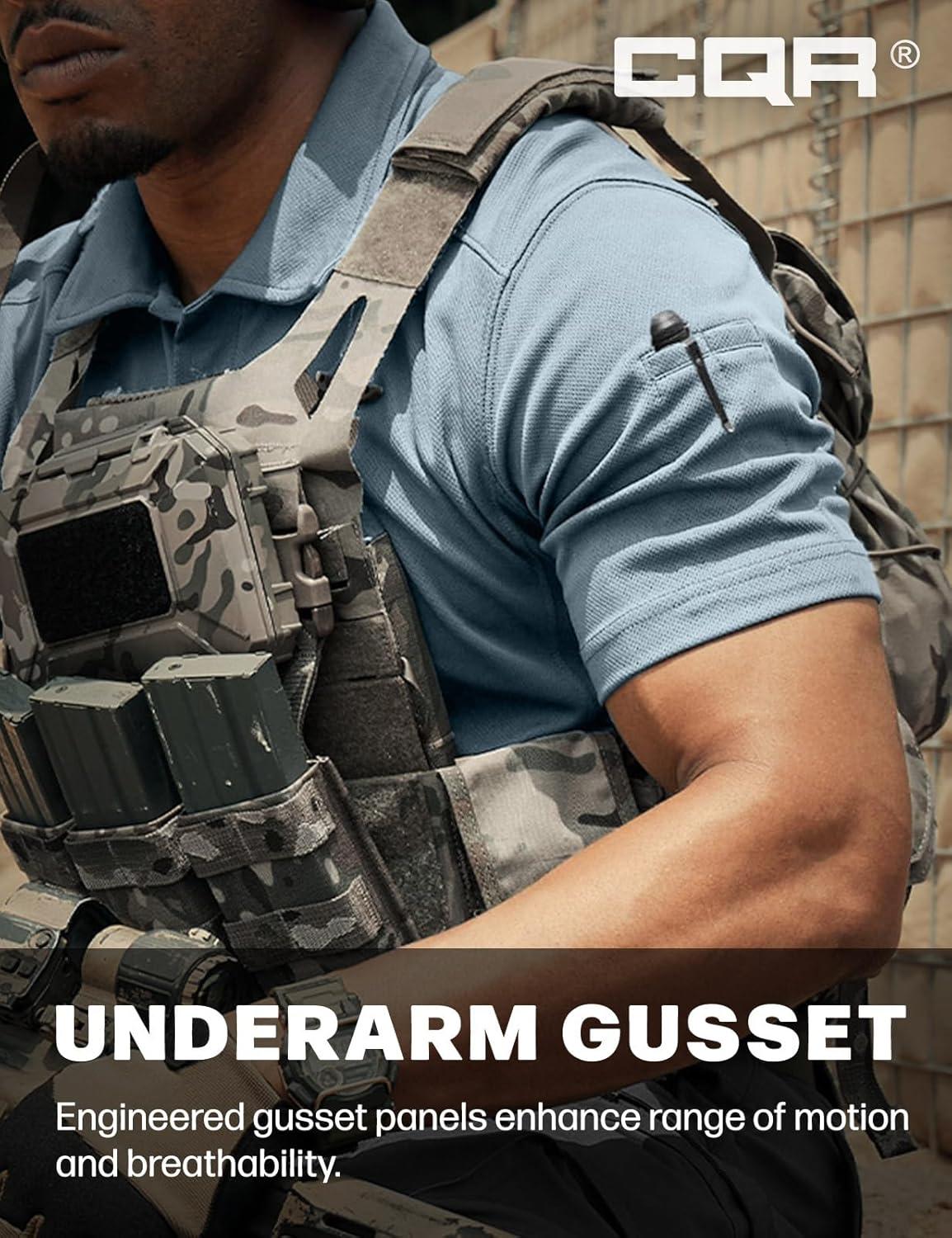 CQR Men’s Polo Shirts, Tactical Short Sleeve Golf Performance Shirts, Lightweight Dry Fit UPF 50+ Pique(Commander Light Grey)