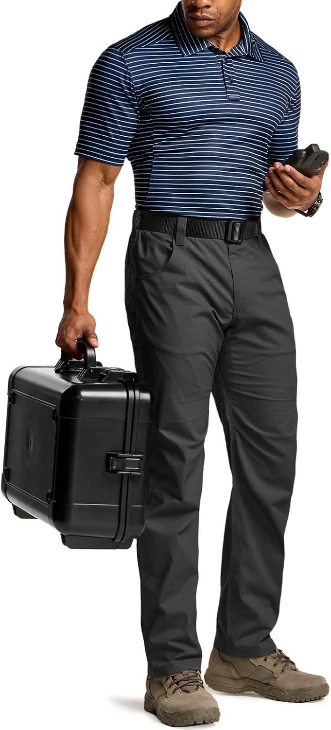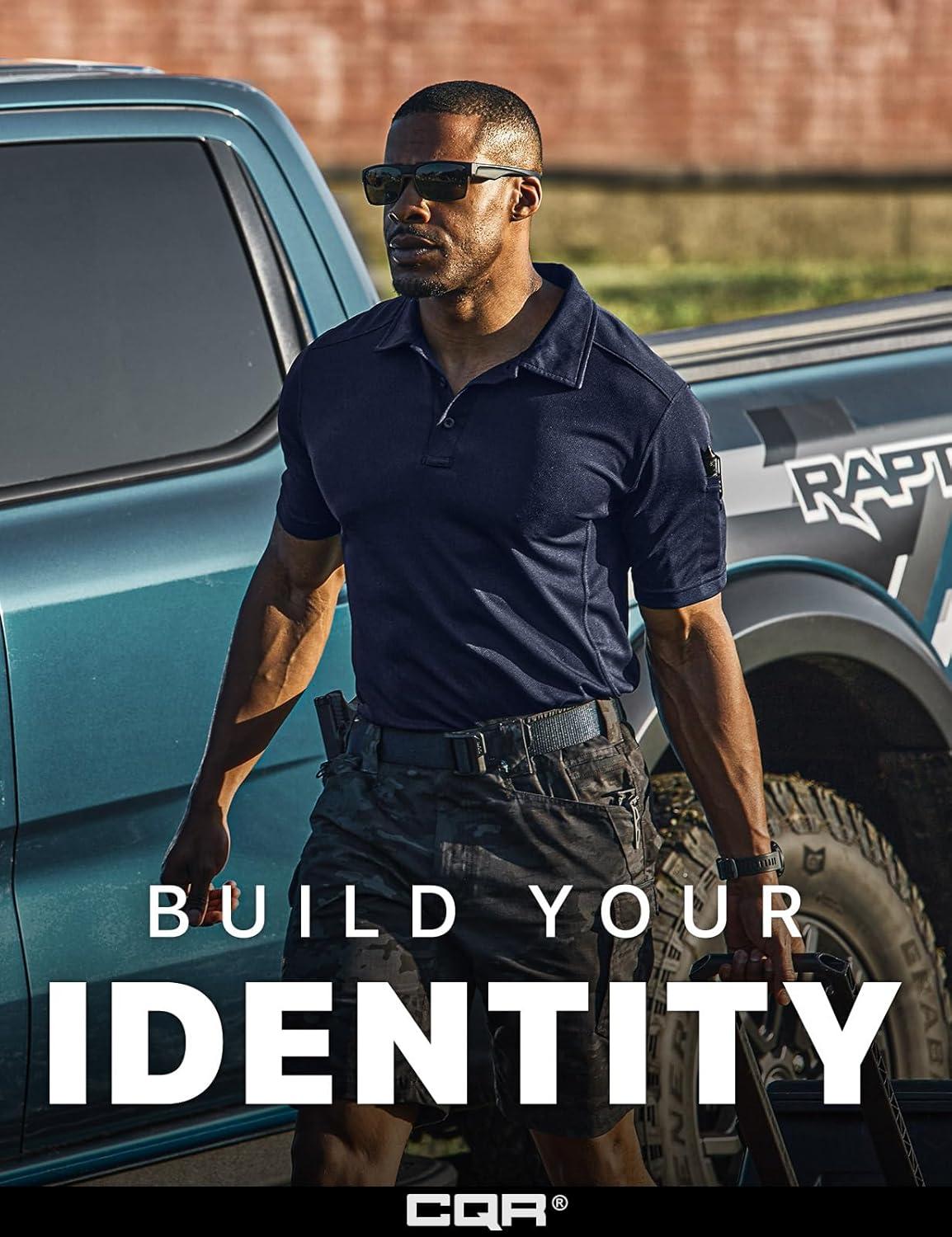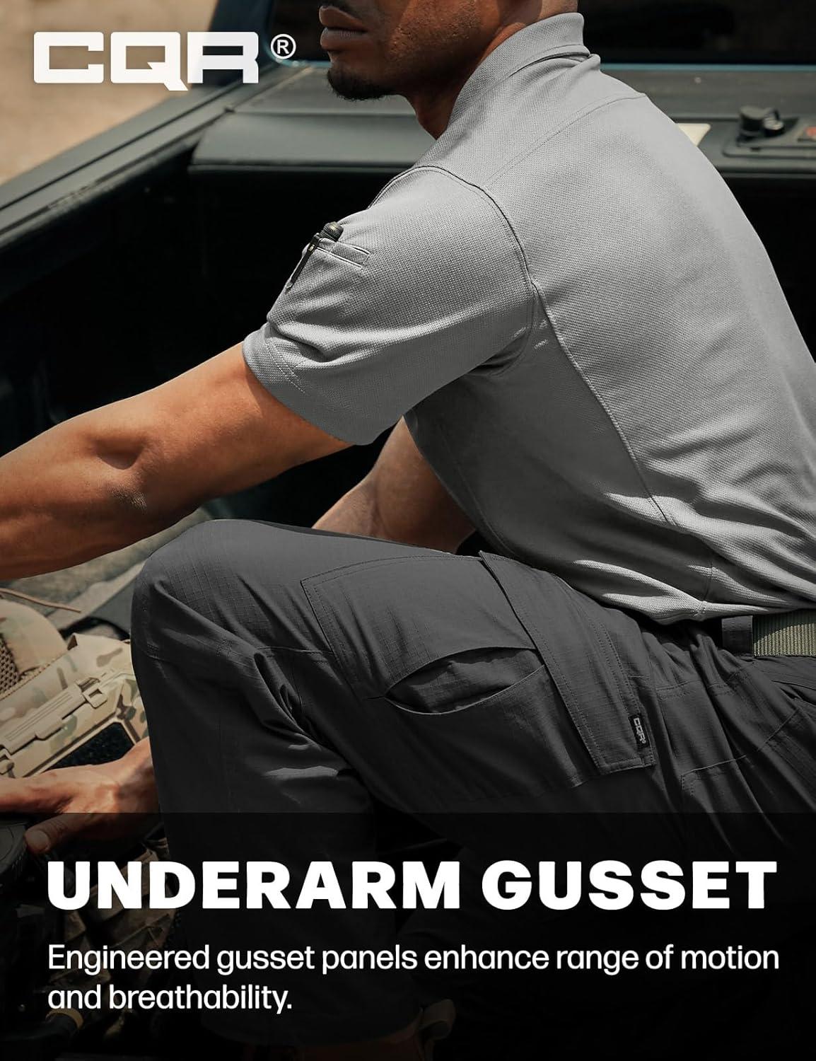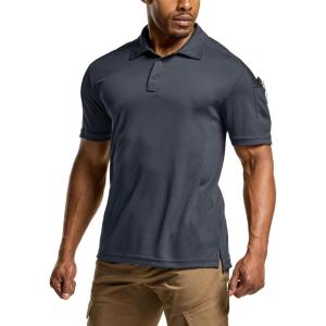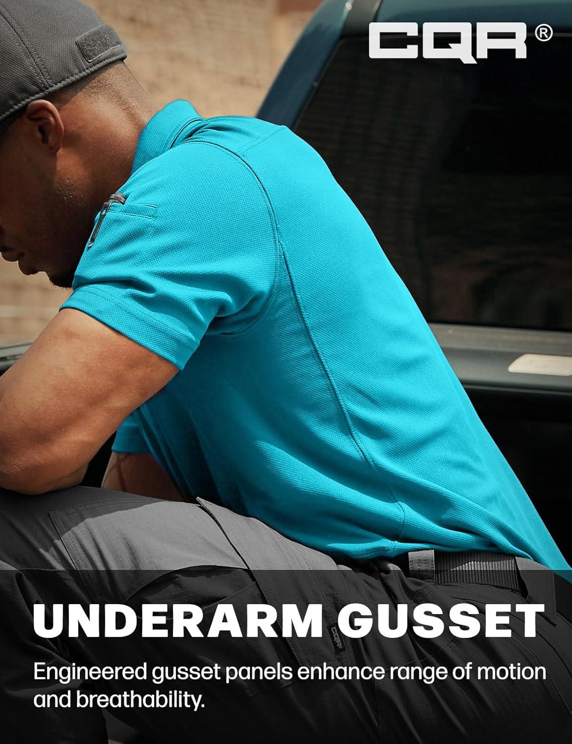 CQR Men’s Polo Shirts, Tactical Short Sleeve Golf Performance Shirts, Lightweight Dry Fit UPF 50+ Pique(Commander Charcoal)
