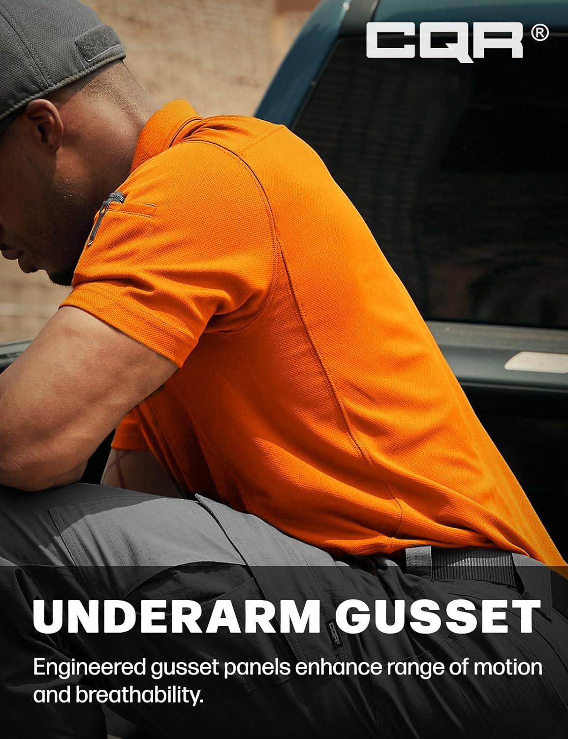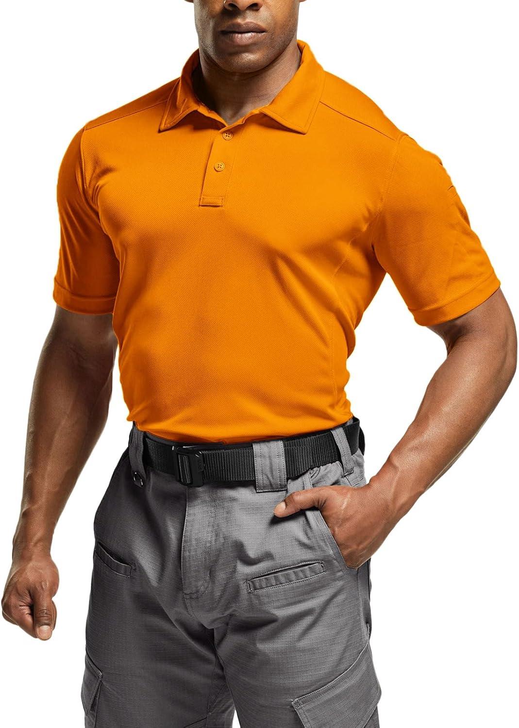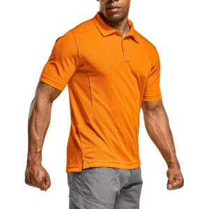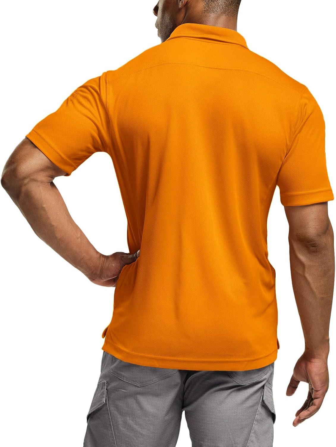 CQR Men’s Polo Shirts, Tactical Short Sleeve Golf Performance Shirts, Lightweight Dry Fit UPF 50+ Pique(Frost Essential Orange)