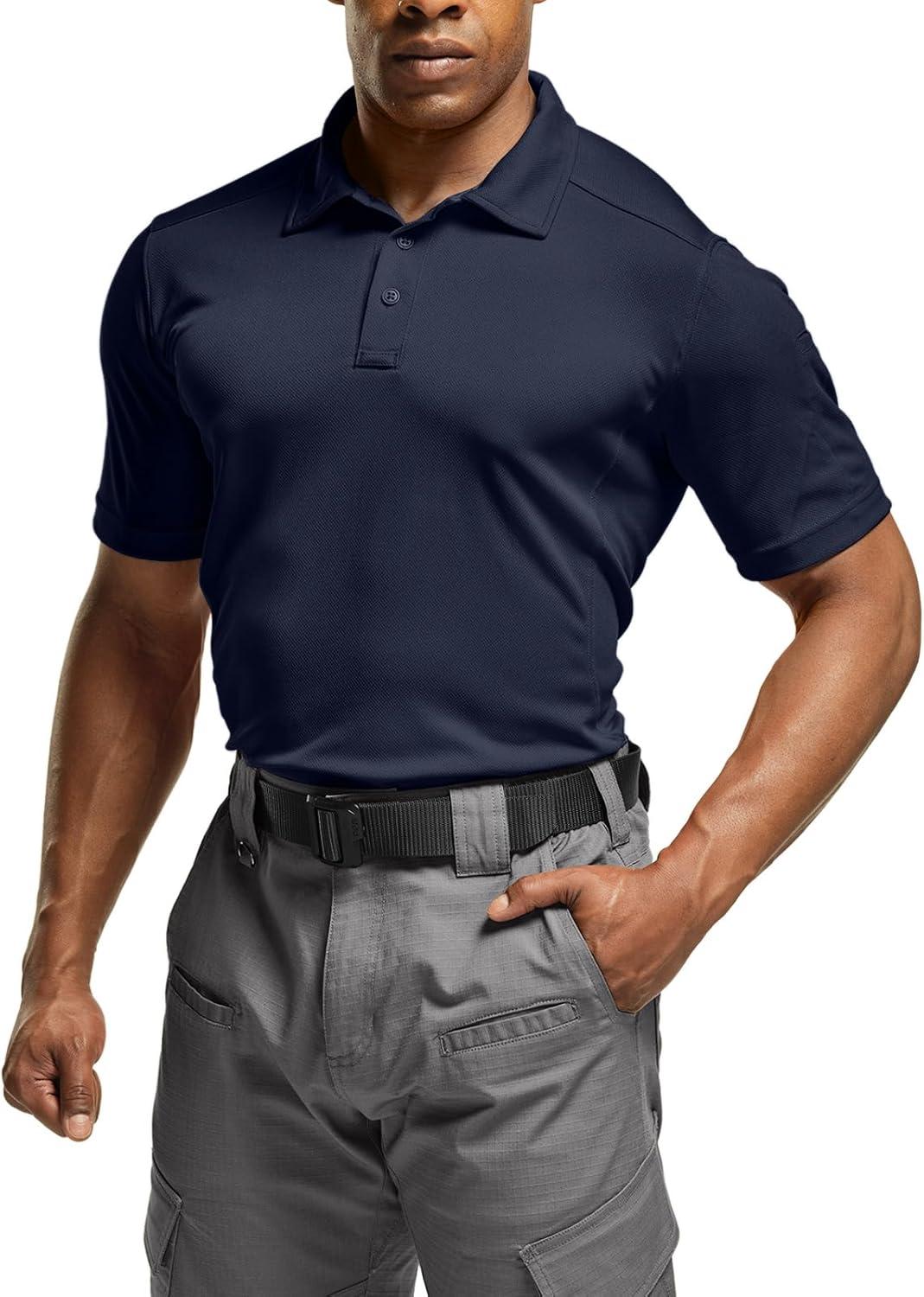 CQR Men’s Polo Shirts, Tactical Short Sleeve Golf Performance Shirts, Lightweight Dry Fit UPF 50+ Pique(Commander Police Navy)
