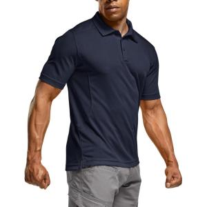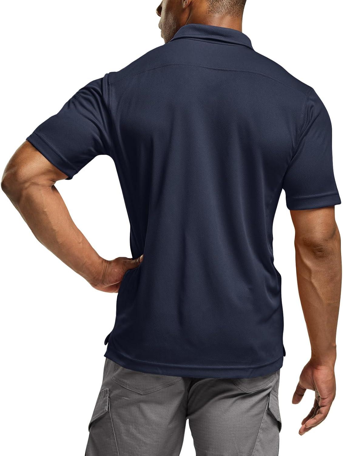 CQR Men’s Polo Shirts, Tactical Short Sleeve Golf Performance Shirts, Lightweight Dry Fit UPF 50+ Pique(Frost Basic Navy)