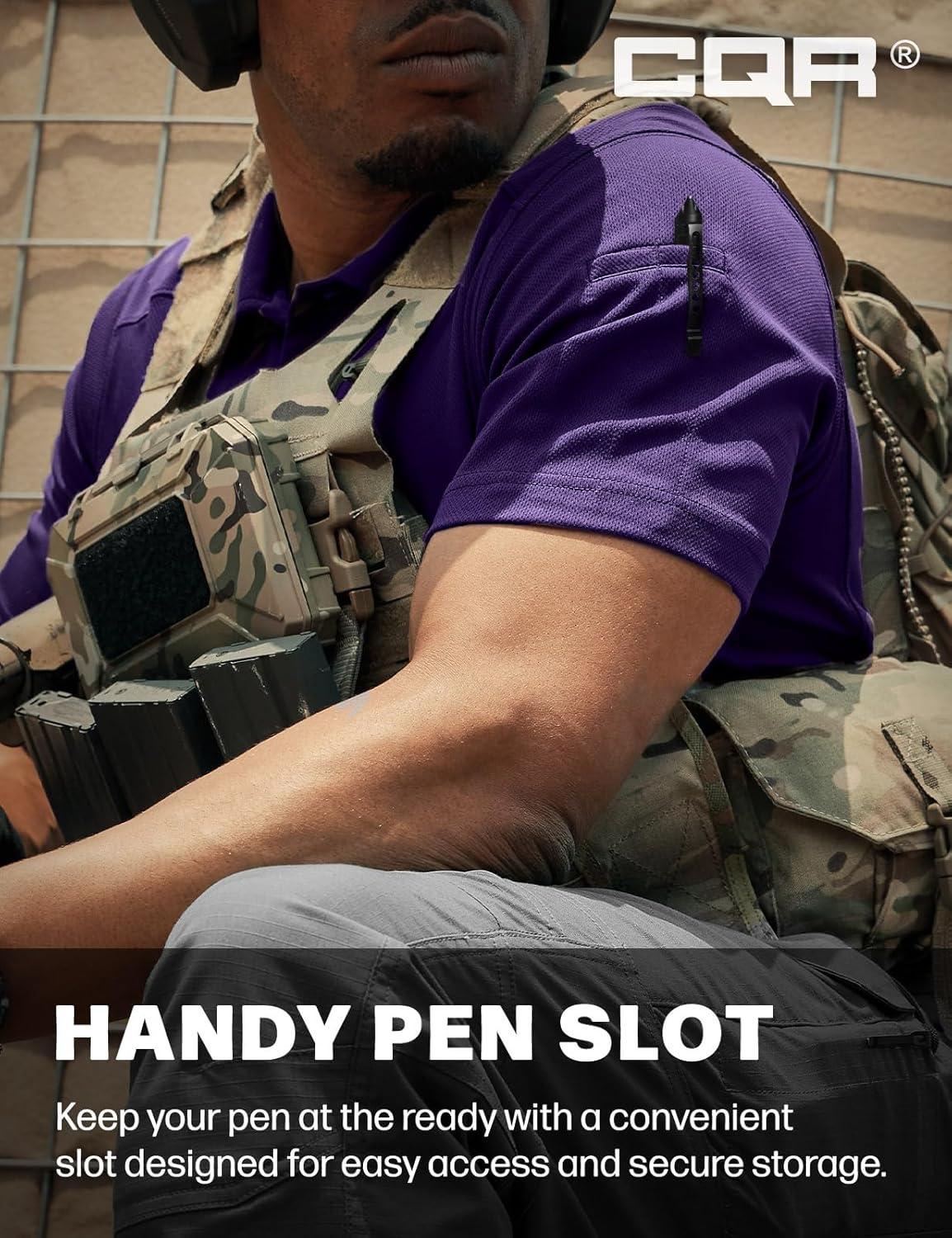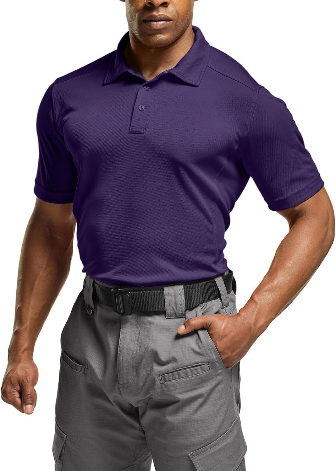 CQR Men’s Polo Shirts, Tactical Short Sleeve Golf Performance Shirts, Lightweight Dry Fit UPF 50+ Pique(Frost Essential Purple)