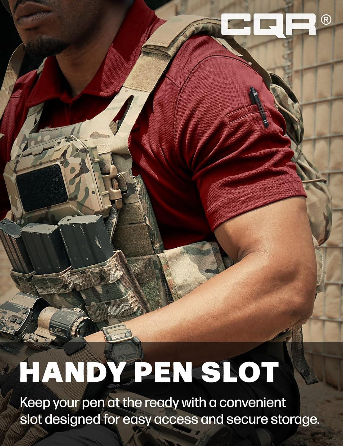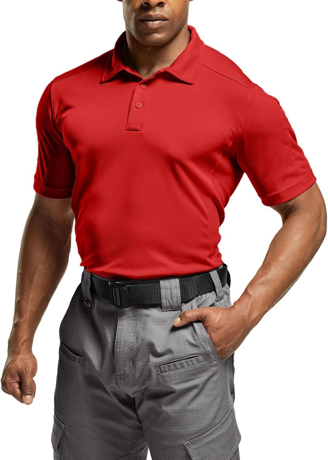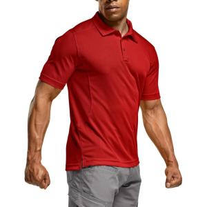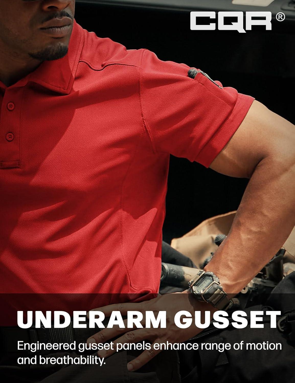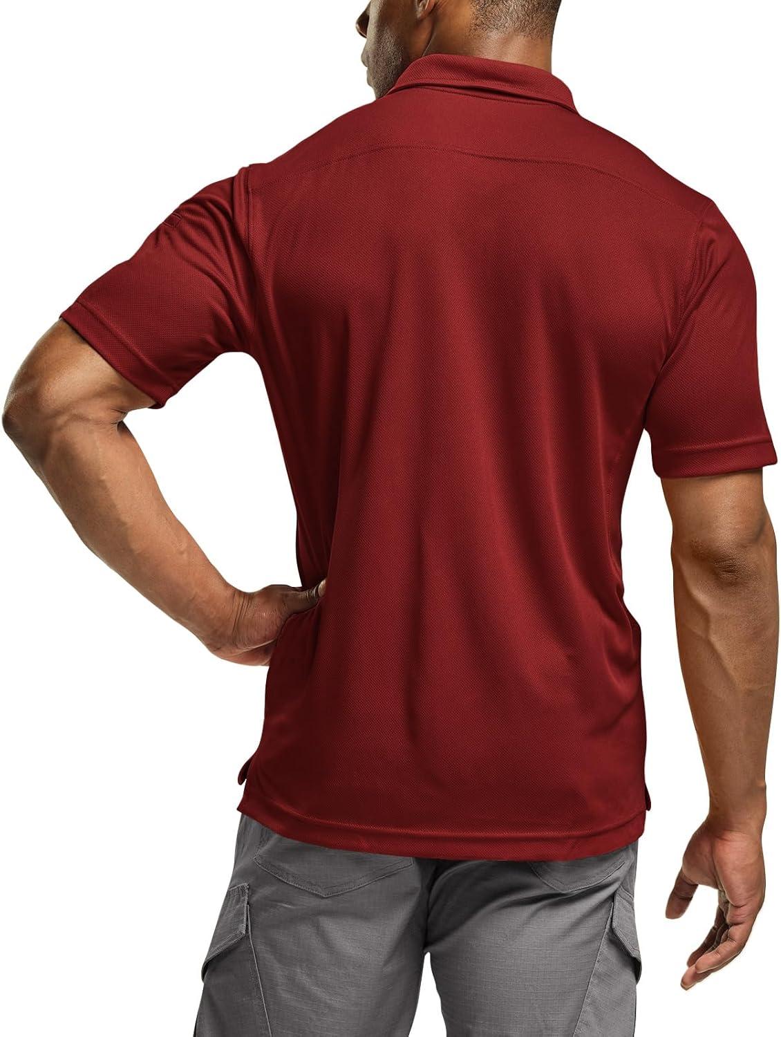 CQR Men’s Polo Shirts, Tactical Short Sleeve Golf Performance Shirts, Lightweight Dry Fit UPF 50+ Pique(Frost Essential Red)