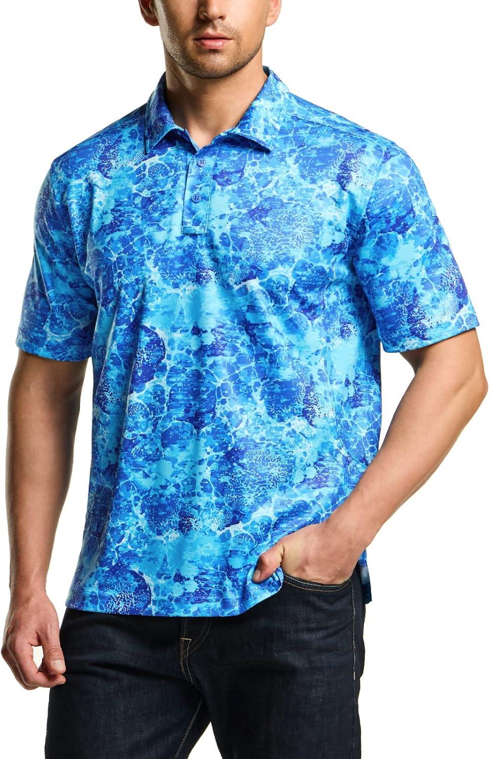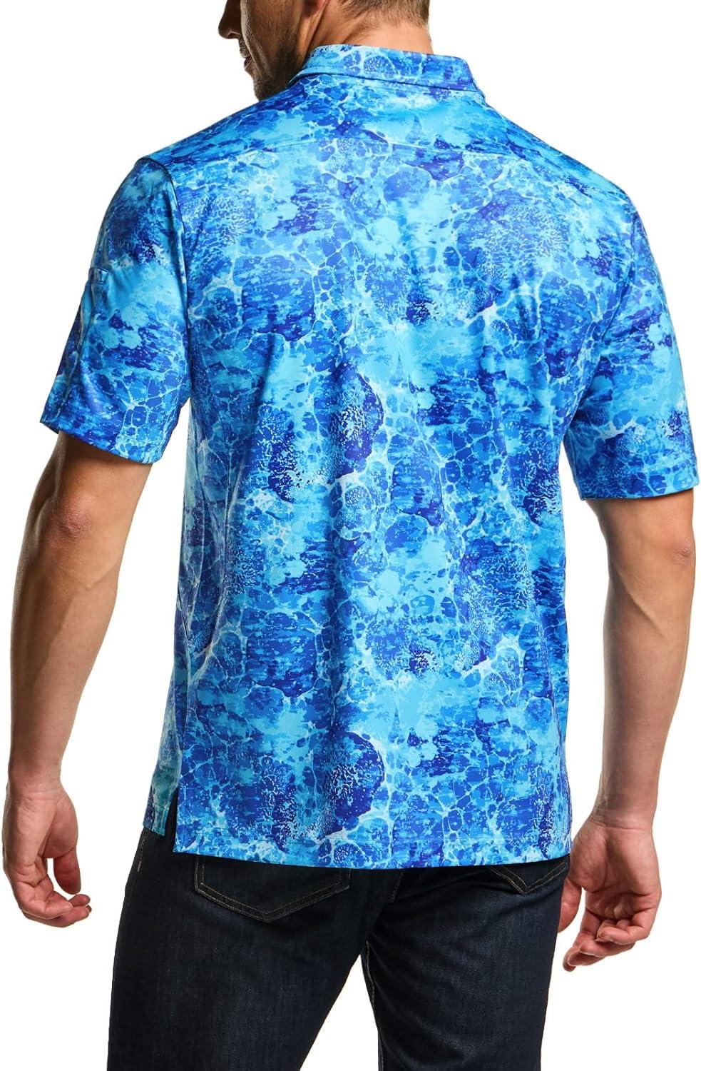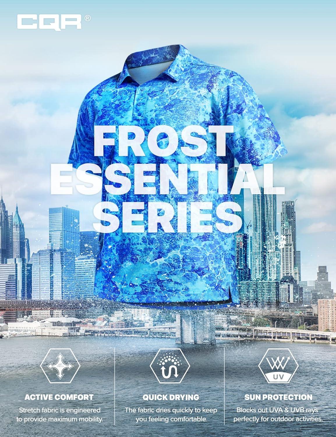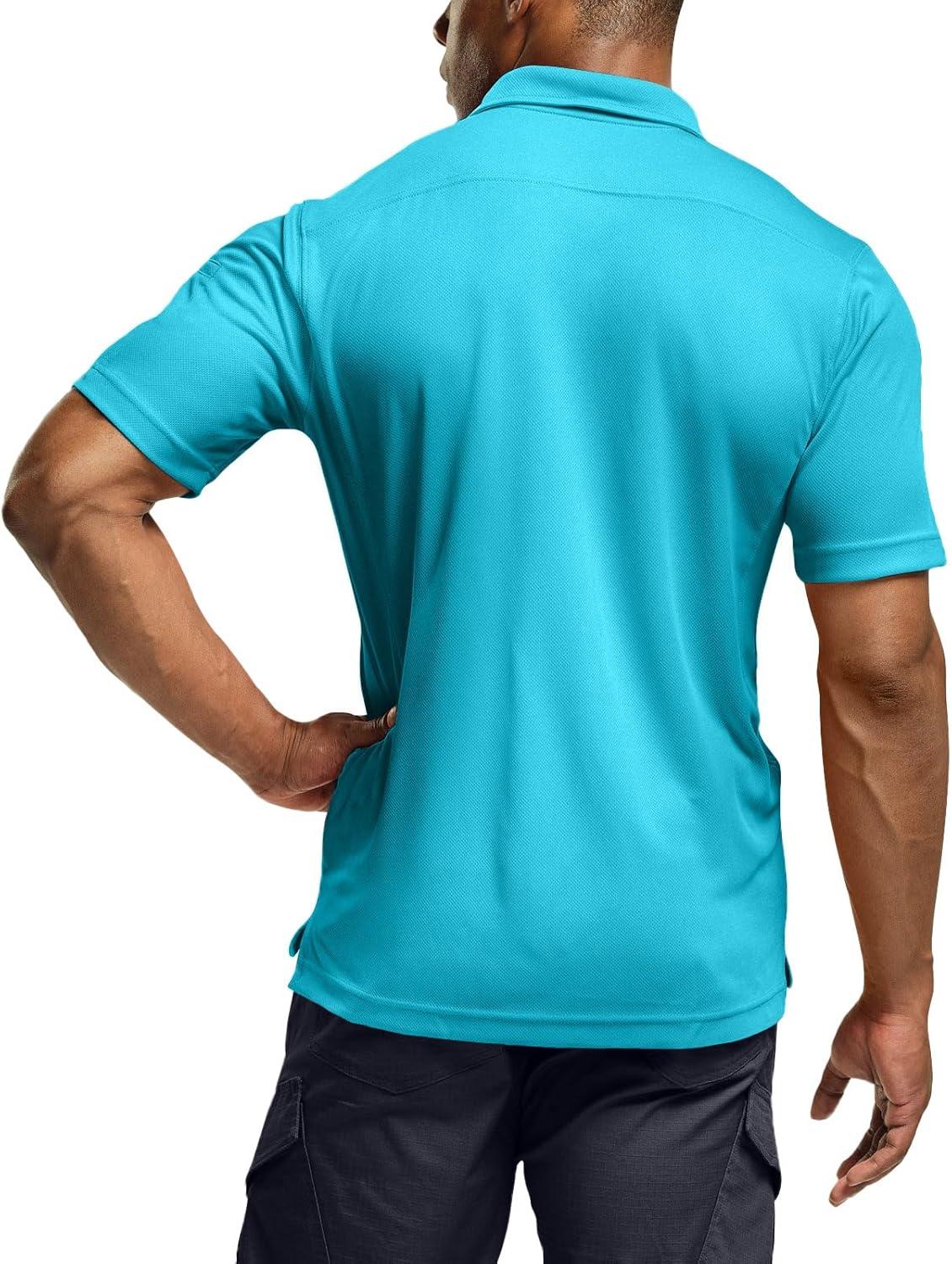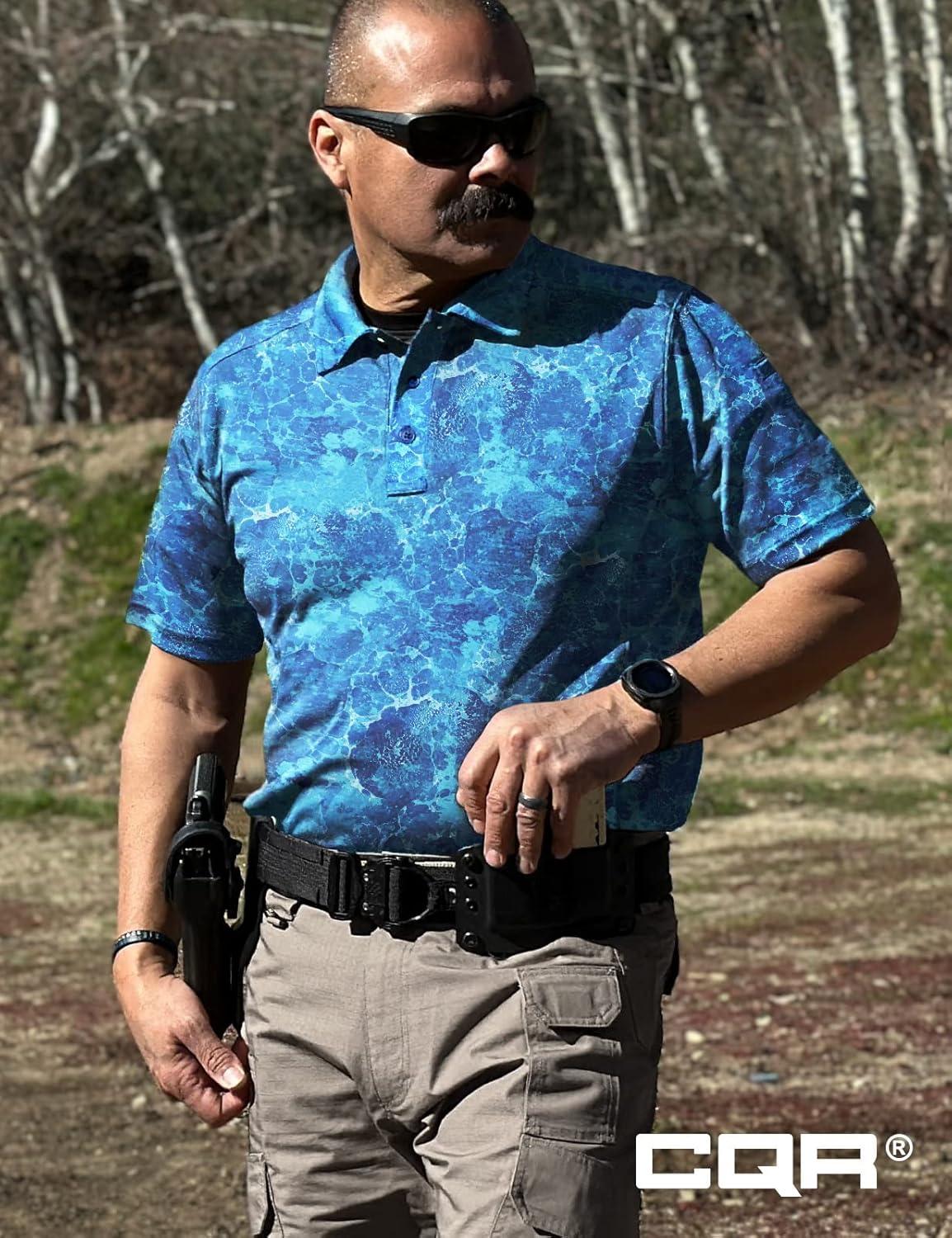 CQR Men’s Polo Shirts, Tactical Short Sleeve Golf Performance Shirts, Lightweight Dry Fit UPF 50+ Pique(Frost Essential Reef)