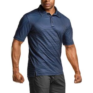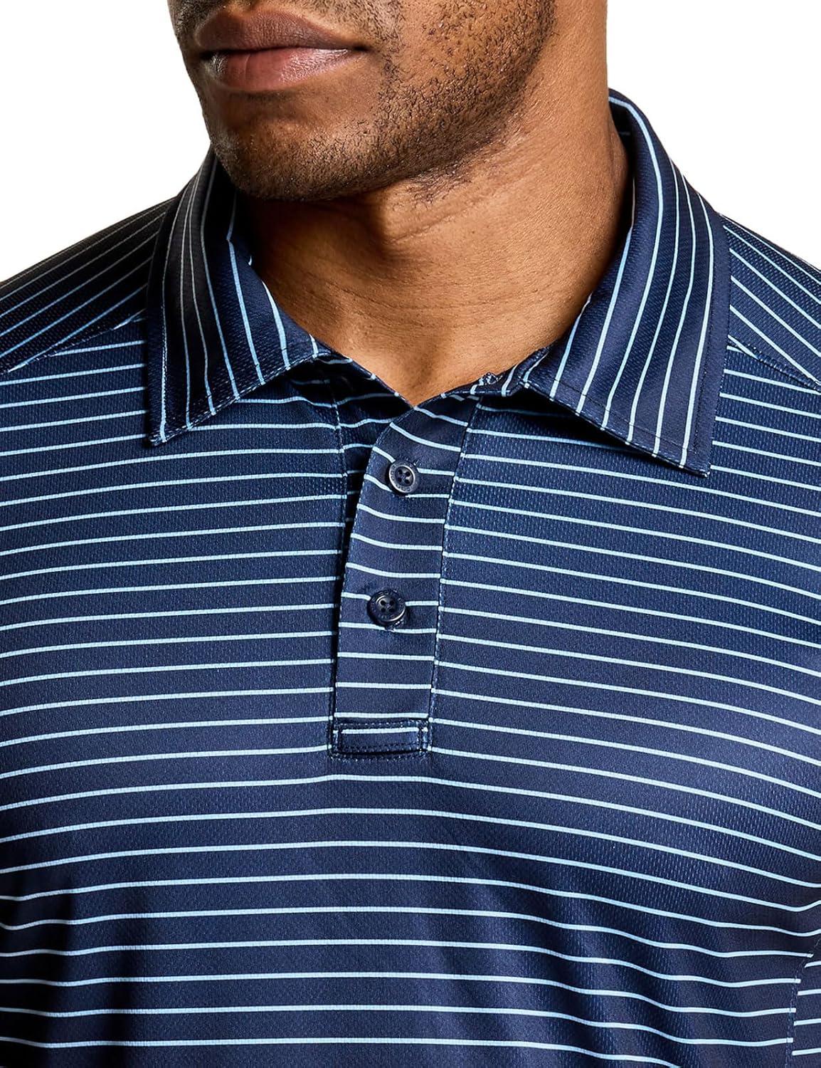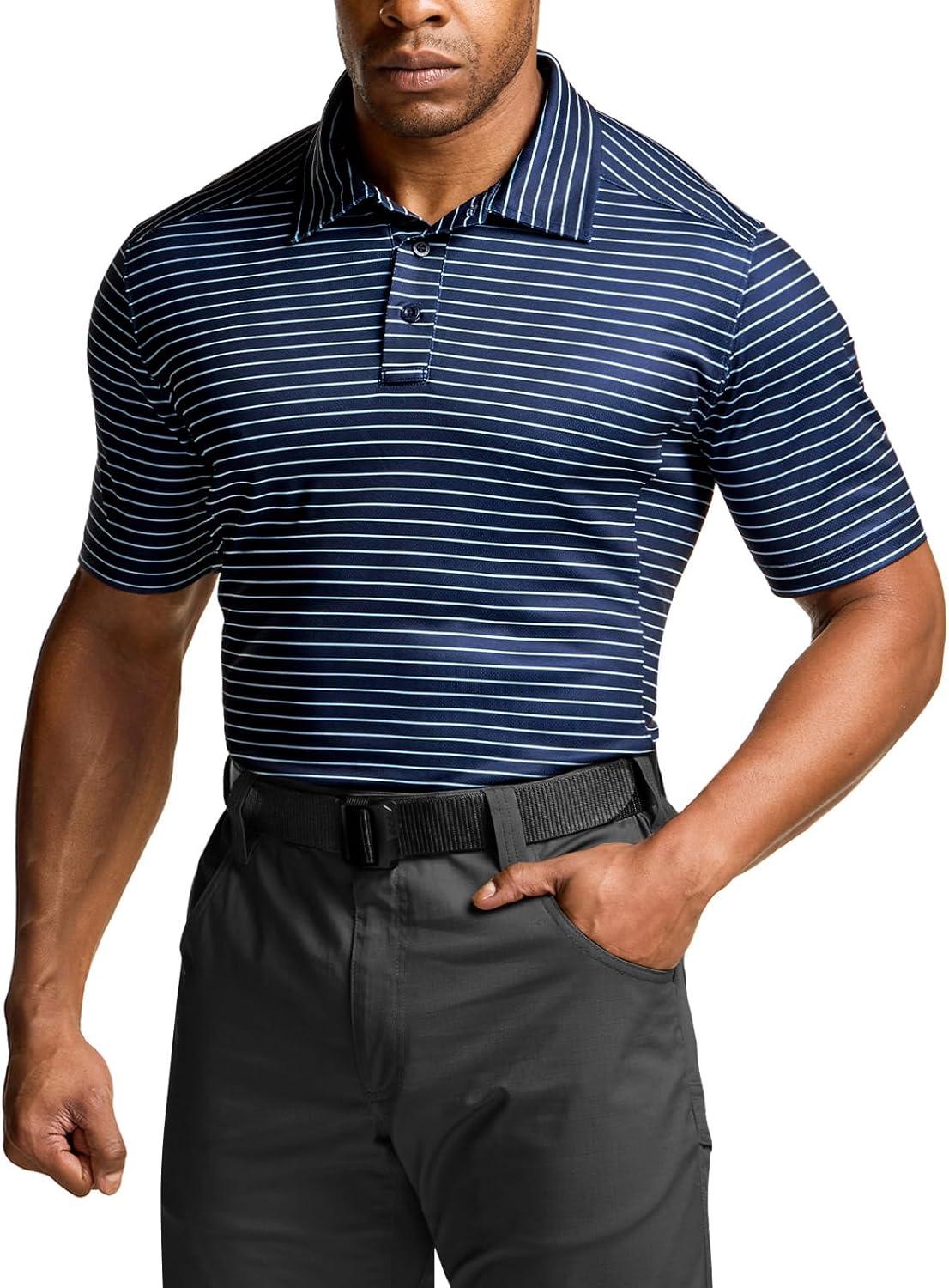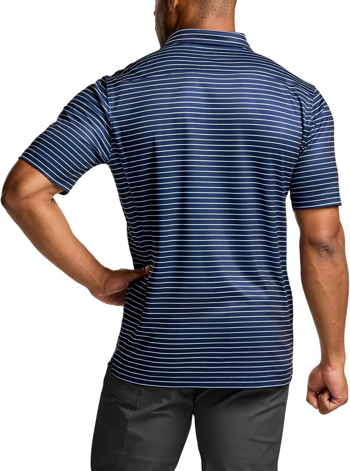 CQR Men’s Polo Shirts, Tactical Short Sleeve Golf Performance Shirts, Lightweight Dry Fit UPF 50+ Pique(Frost Essential Stripe Navy)